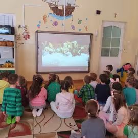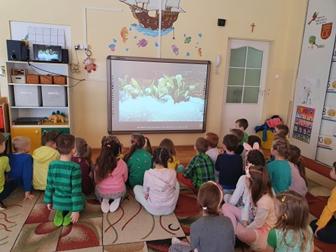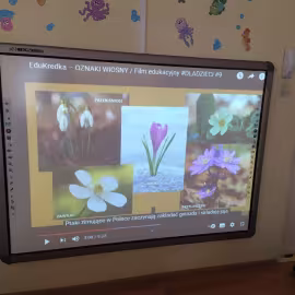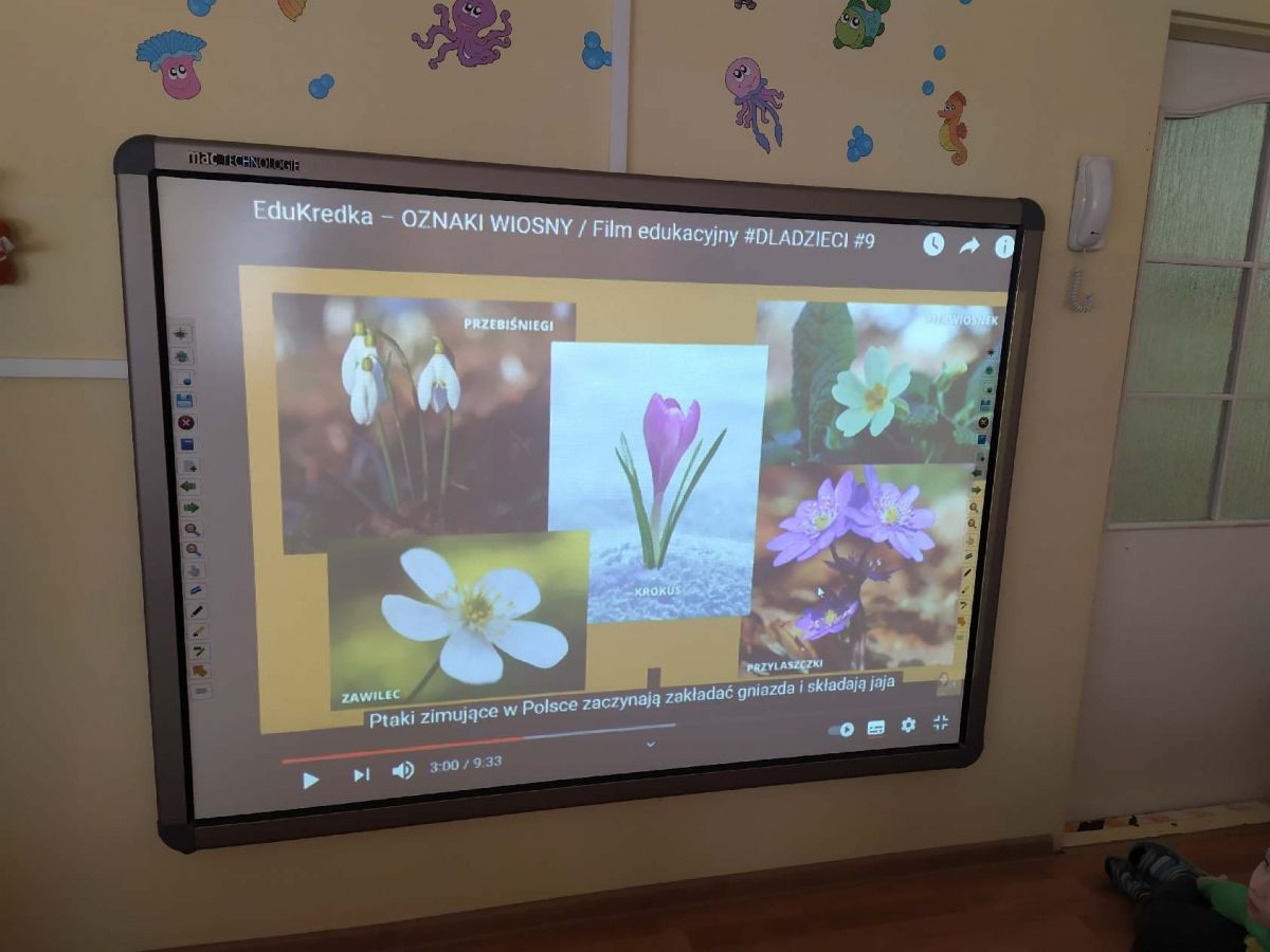 Dzień w przedszkolu rozpoczęliśmy od obejrzenia filmów edukacyjnych o wiosennych zwiastunach.