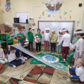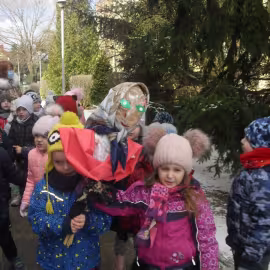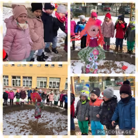 Wiosna w tym roku przywitała dzieci śniegiem, więc przedszkolaki z naszego przedszkola przygotowały Marzannę, by na dobre pożegnać zimę.