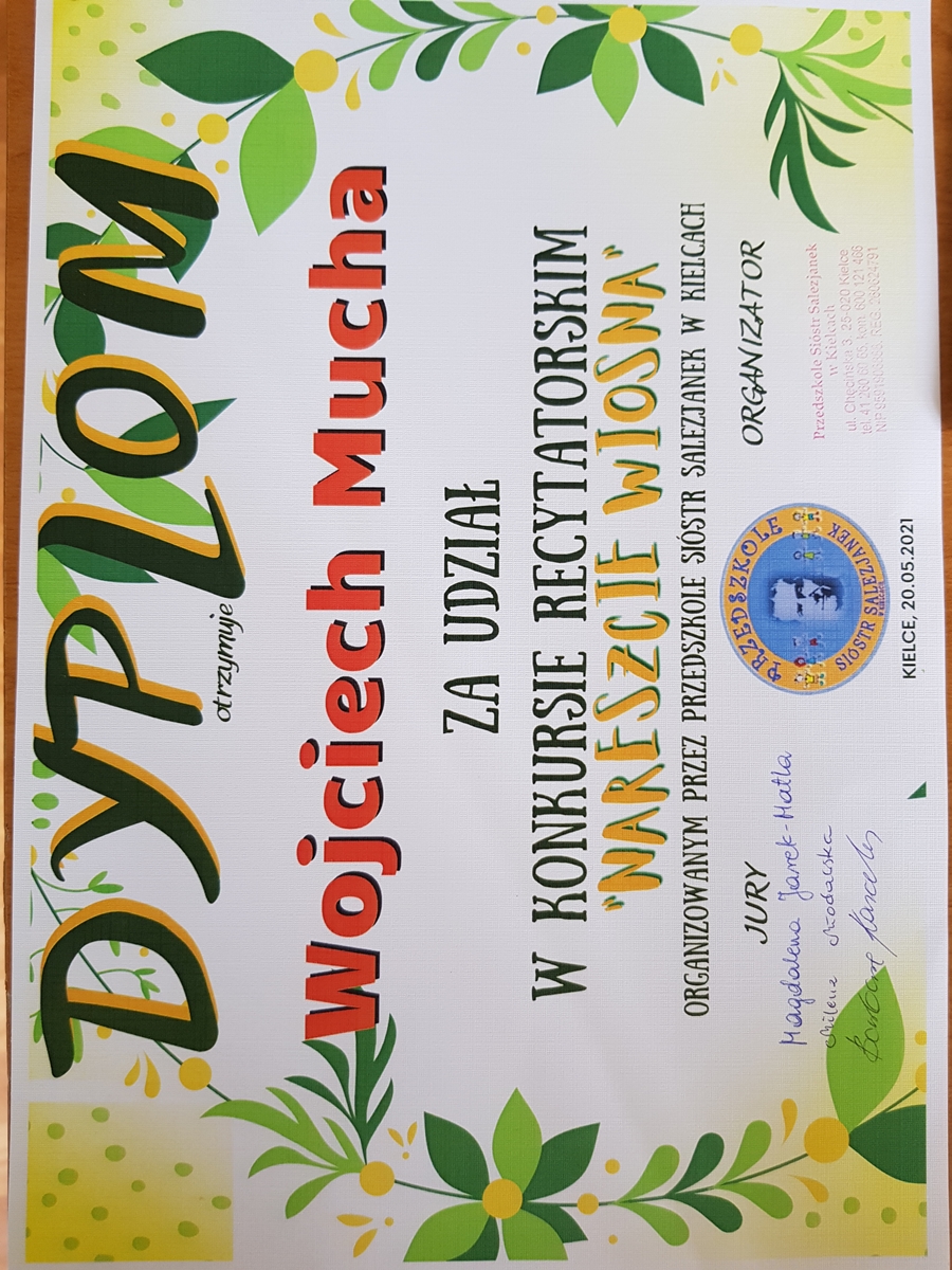 Mieliśmy także sukcesy w innych poza przedszkolnych konkursach indywidualne Wojtuś M.