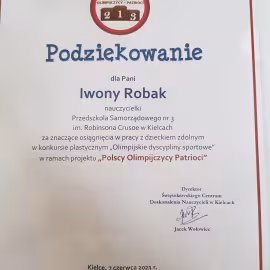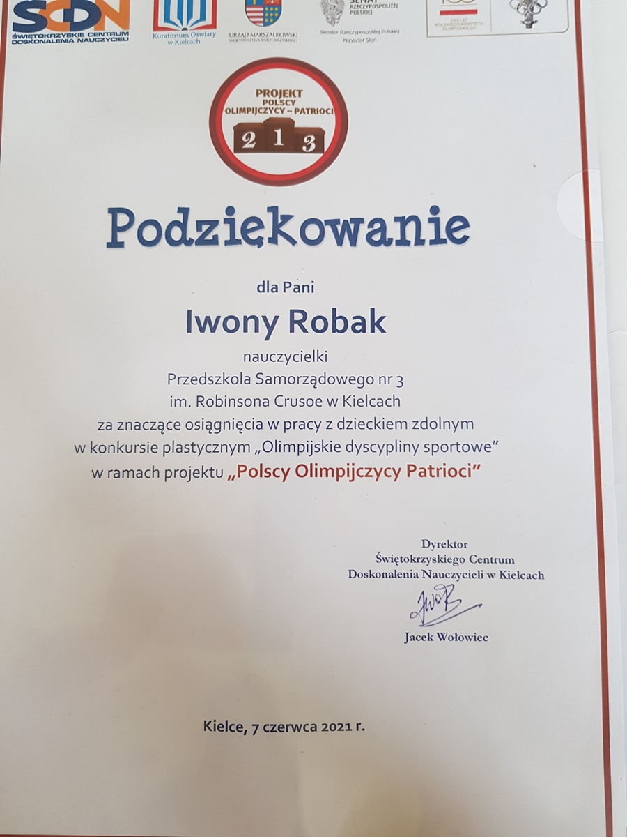 W związku z rocznicą 100-lecia powstania Polskiego Komitetu Olimpijskiego Świętokrzyskie Centrum Doskonalenia Nauczycieli w Kielcach we współpracy z Biurem Edukacji Narodowej Delegatury Instytutu Pamięci Narodowej w Kielcach zaprosiło dzieci do udziału w projekcie Polscy Olimpijczycy−Patrioci.
