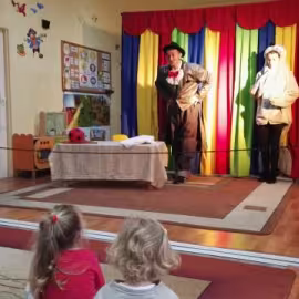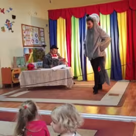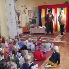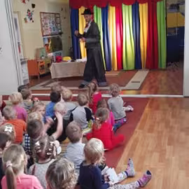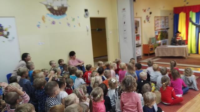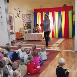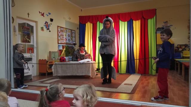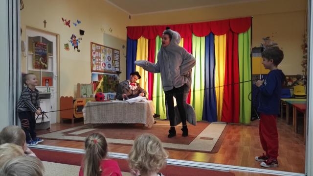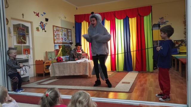 26 listopada nasze przedszkolaki obejrzały spektakl pt.: "PRZYGODY FOCZKI AKROBATKI" w wykonianiu aktorów agencji artystycznej "Patigo". Jest to pełna humoru opowieść o małej foczce, której wydawało się, że wszystko potrafi i może z powodzeniem występować w cyrku. Oprócz miłej i radosnej atmosfery widowisko miało też elementy edukacyjne. Nasze przedszkolaki dowiedziały się, że jeżeli chcemy osiągać sukcesy to musimy być wytrwali i pilnie się uczyć.