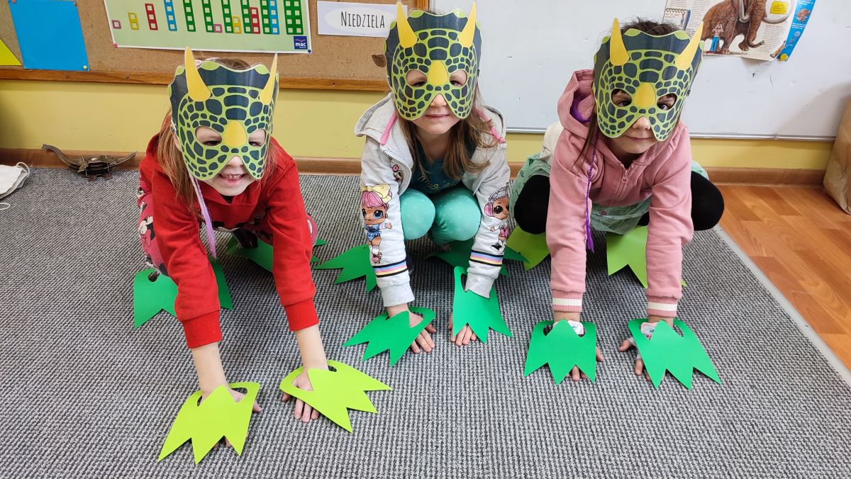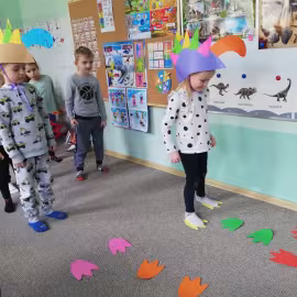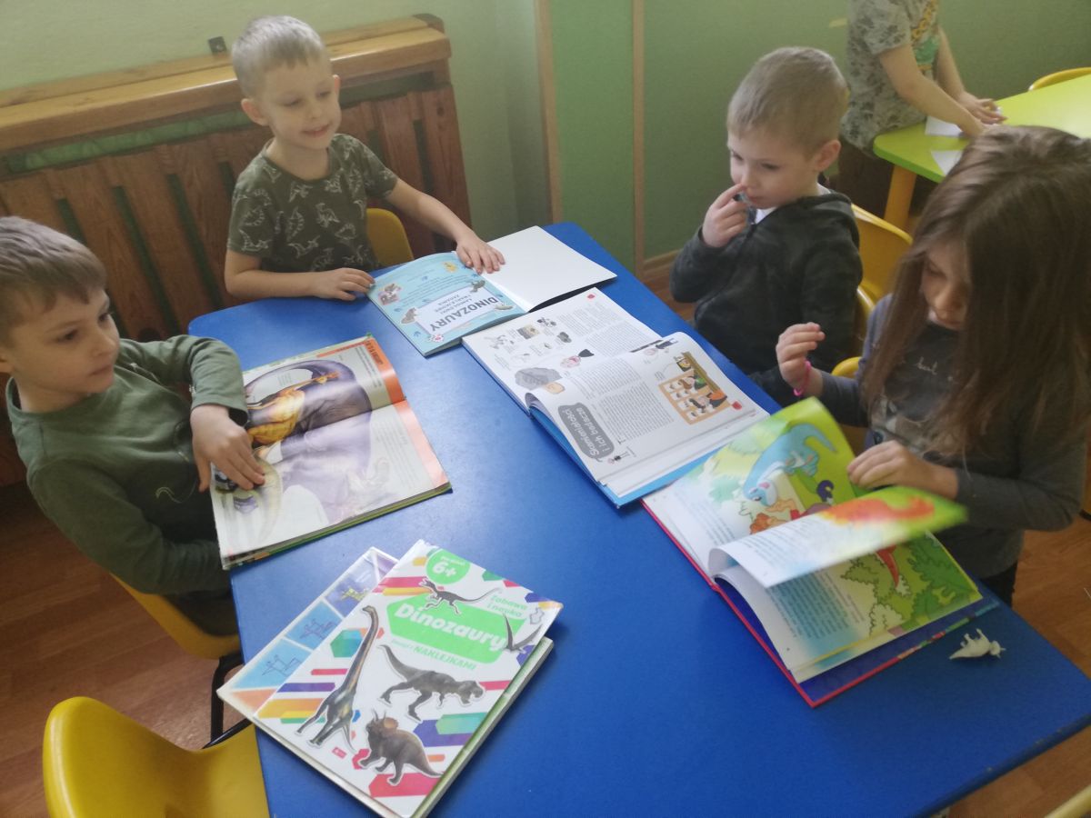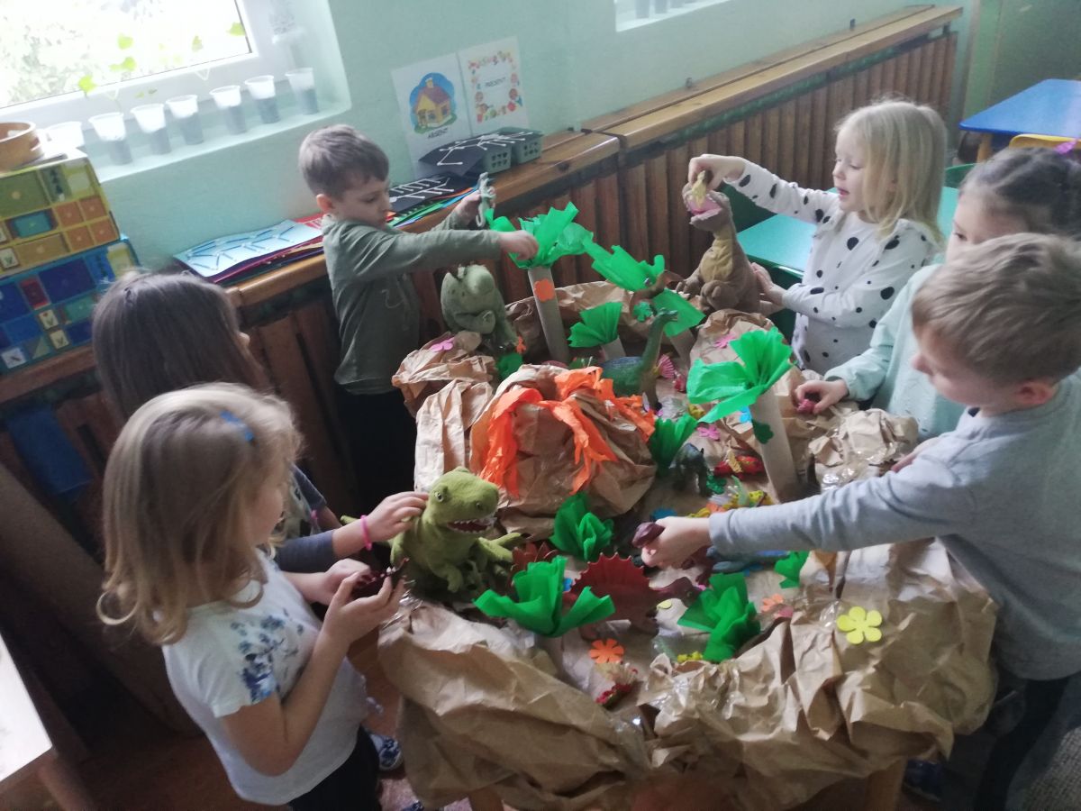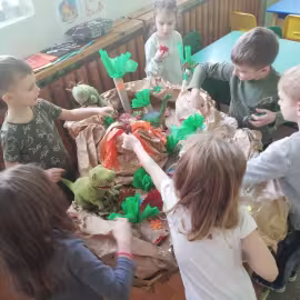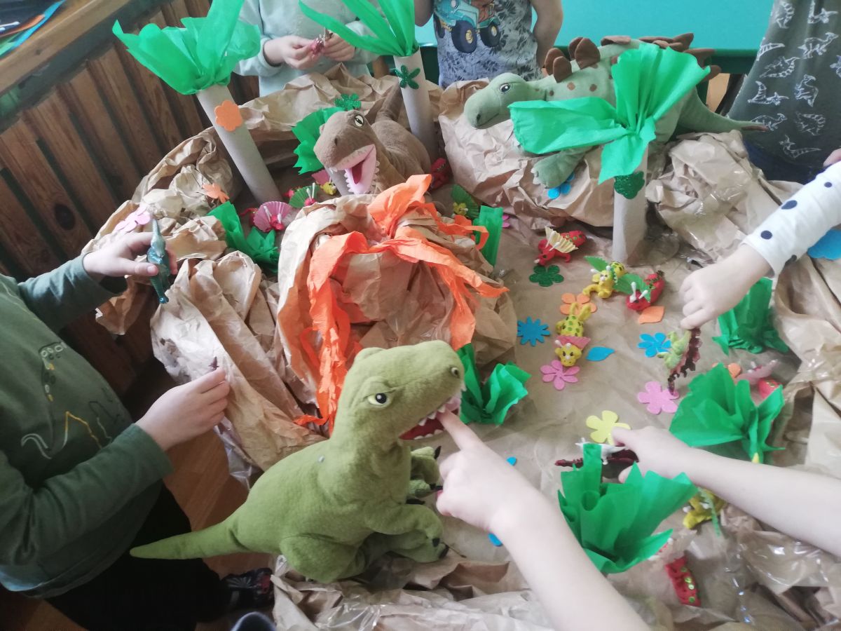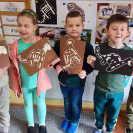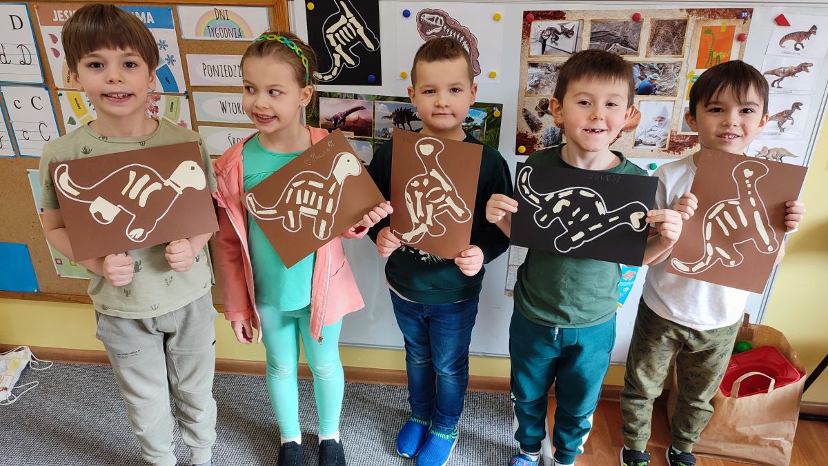Opublikowano: 07.03.2022 Dzień Dinozaura w przedszkolu był okazją do ciekawych zabaw i eksperymentów. W grupach powstały piękne prace plastyczne.