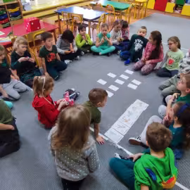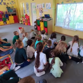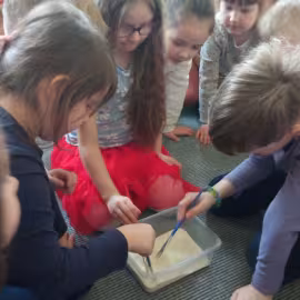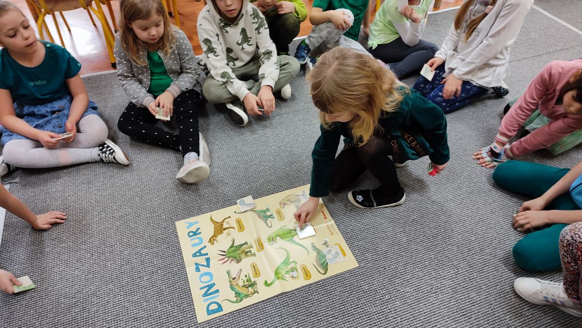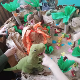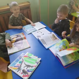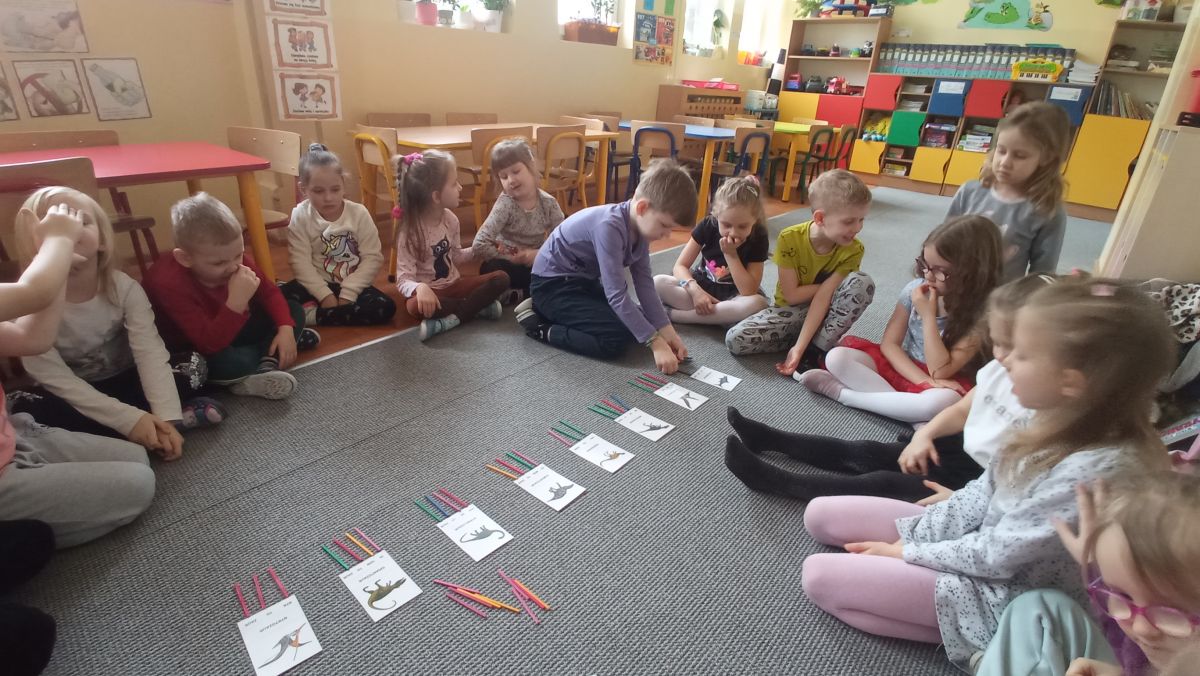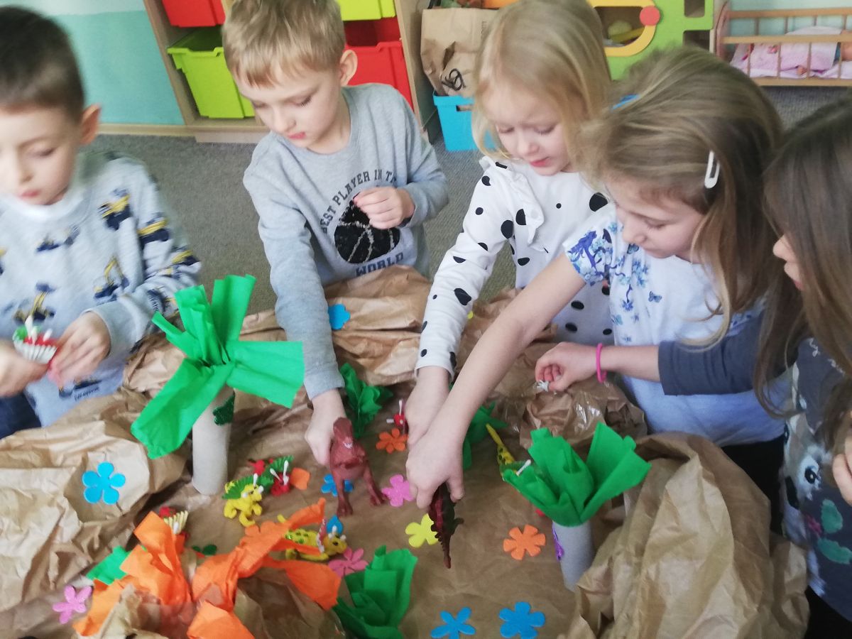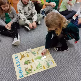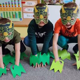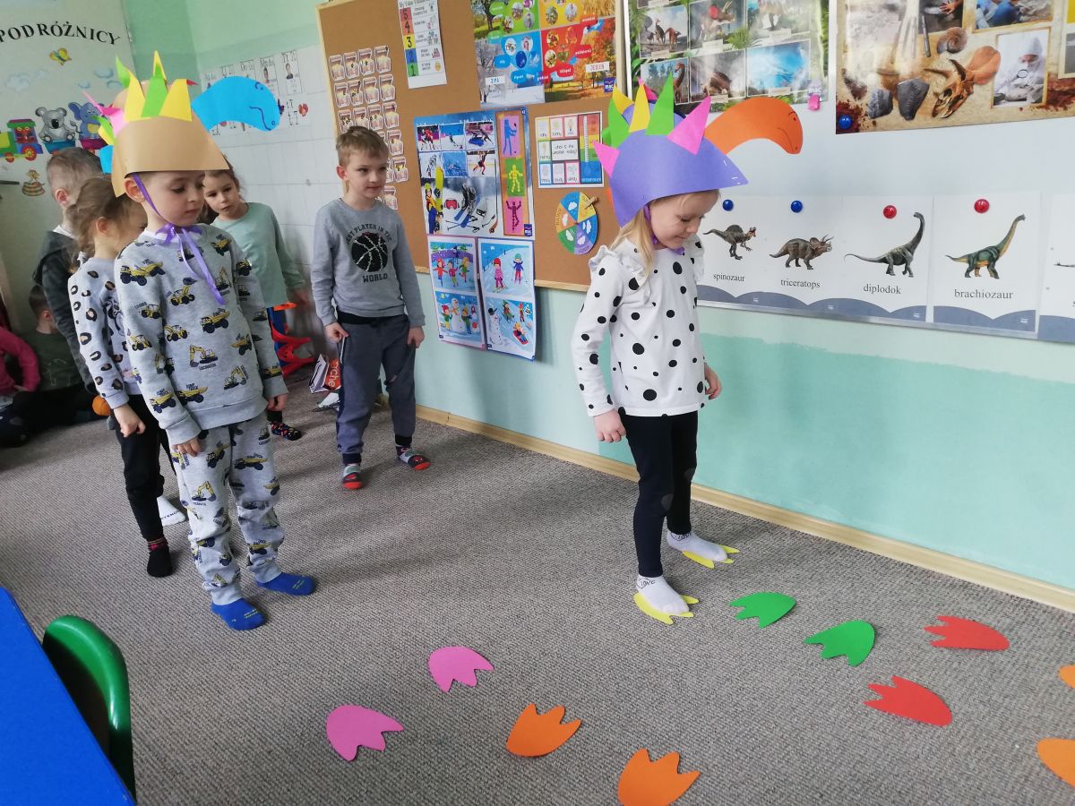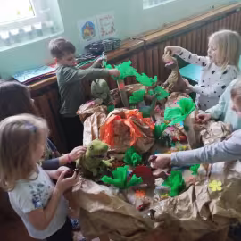 Opublikowano: 07.03.2022 Dzień Dinozaura w przedszkolu był okazją do ciekawych zabaw i eksperymentów. W grupach powstały piękne prace plastyczne.