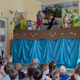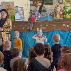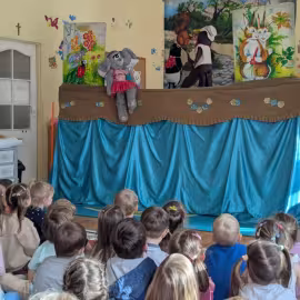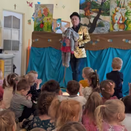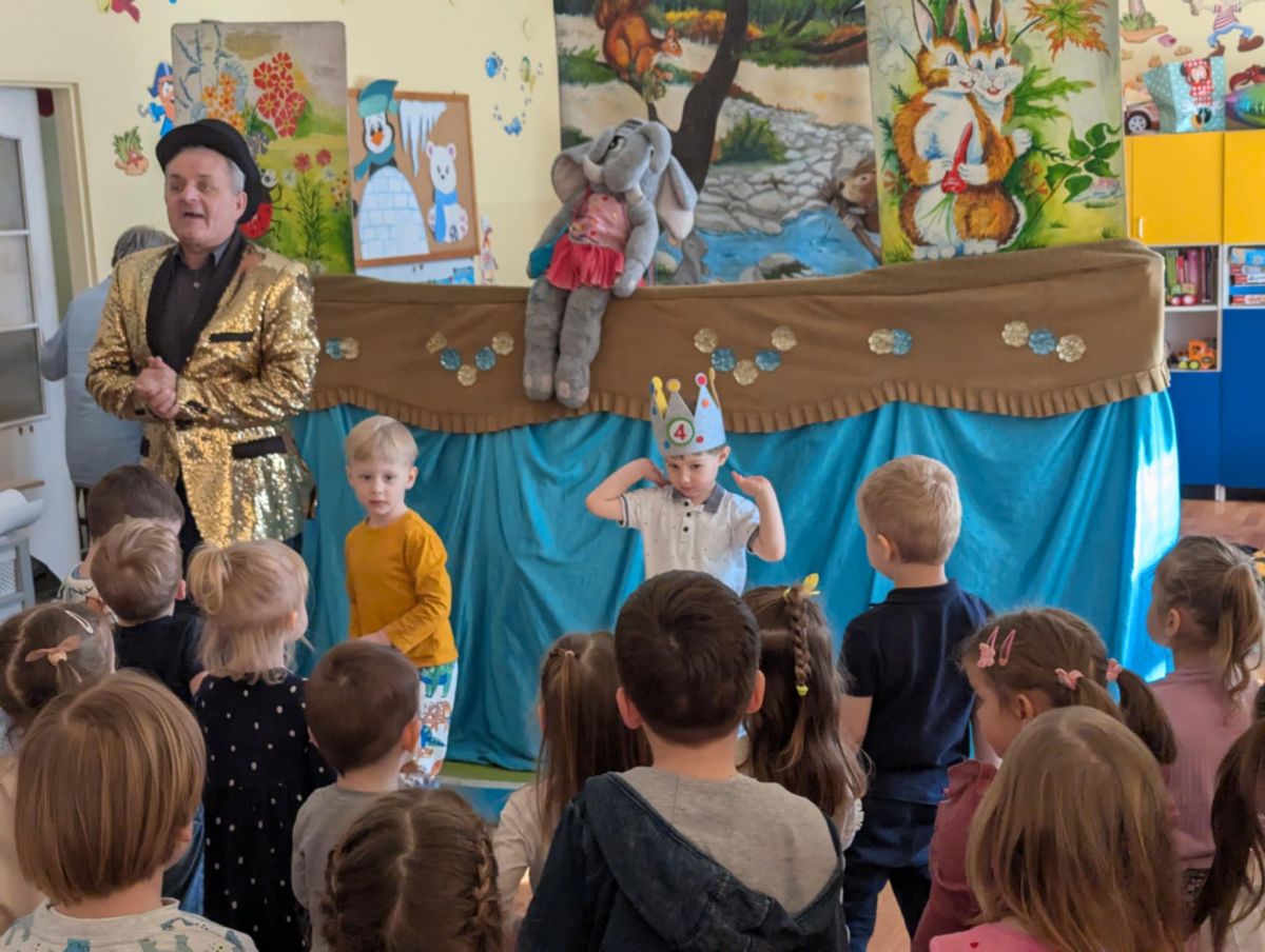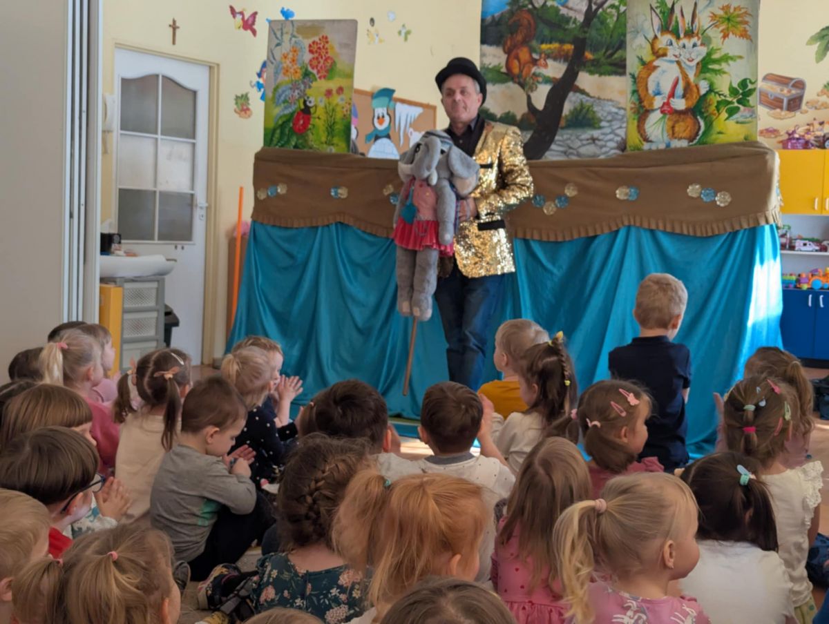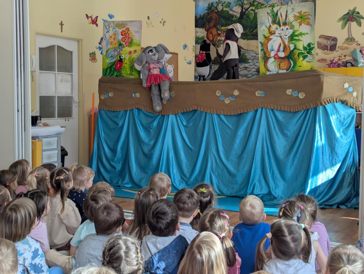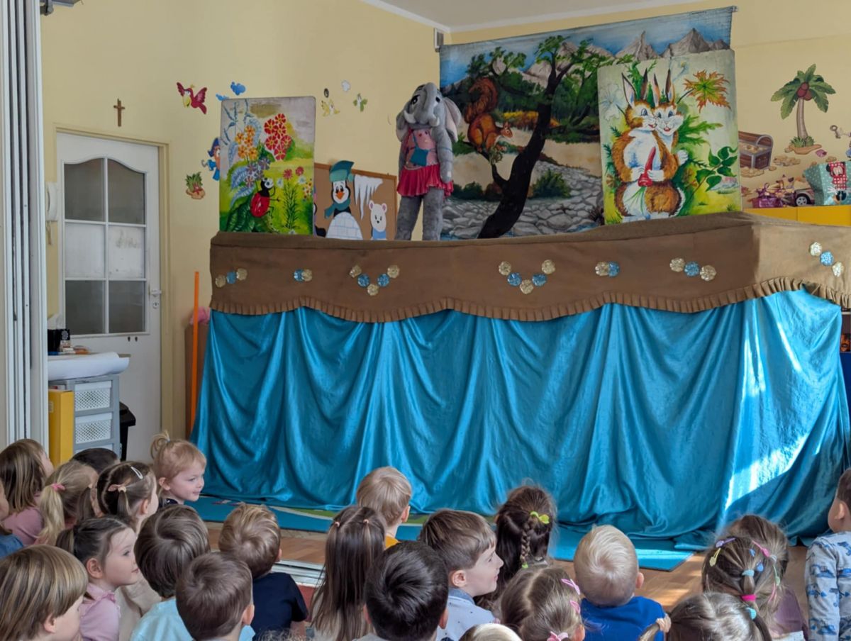 7 marca dzieci obejrzały spektakl kukiełkowy, pt. „Kruszynka”, opowiadający o cyrkowej słonicy.