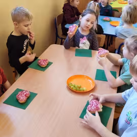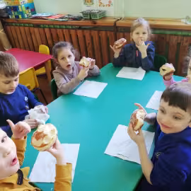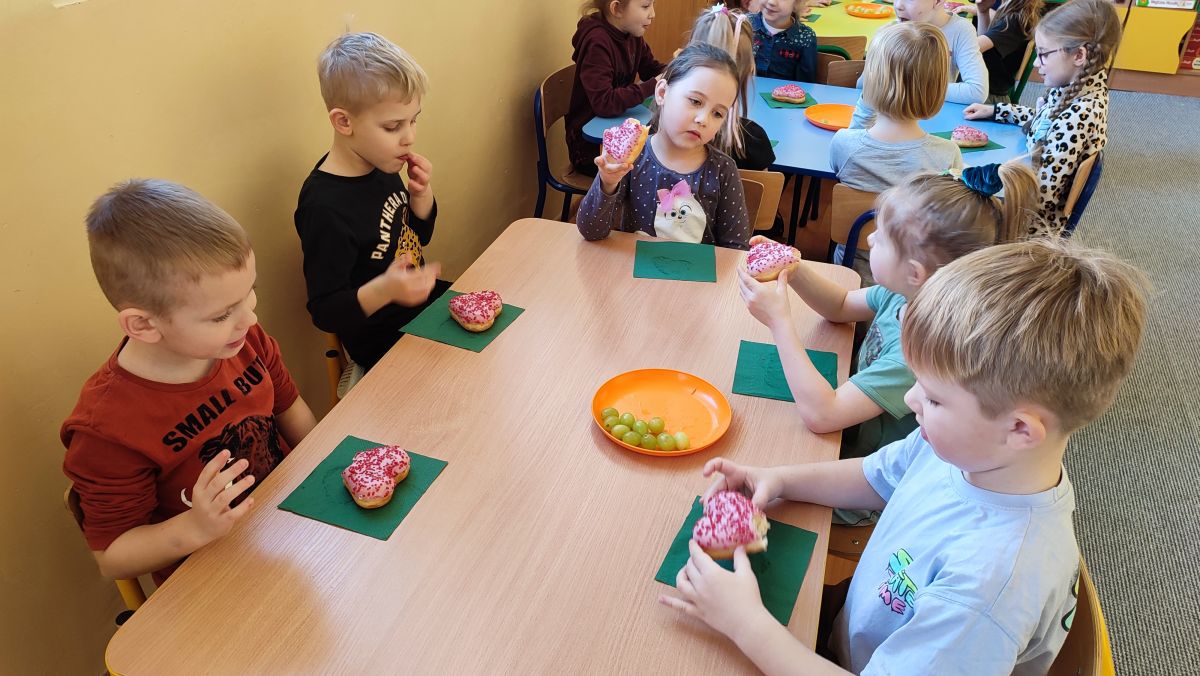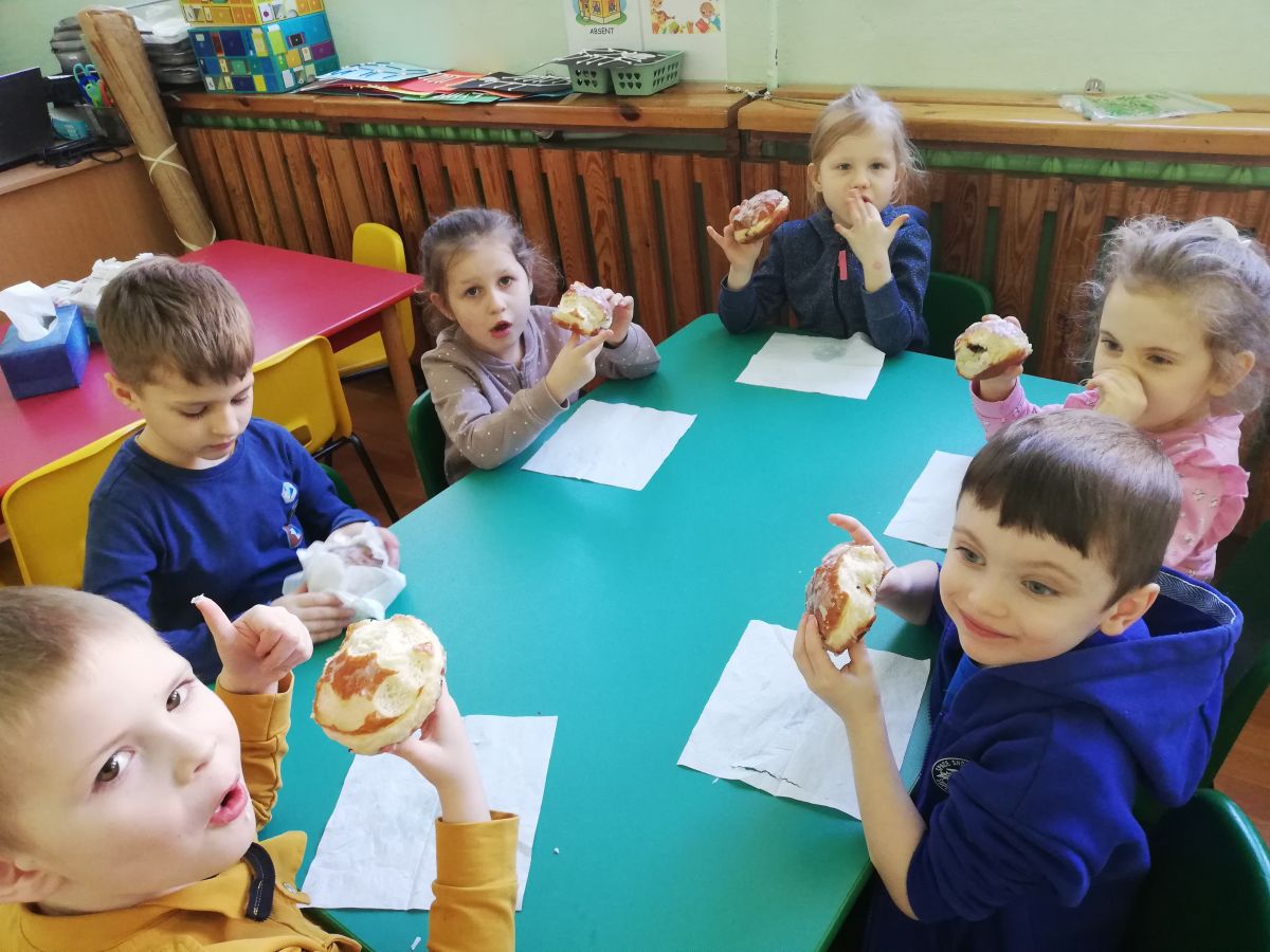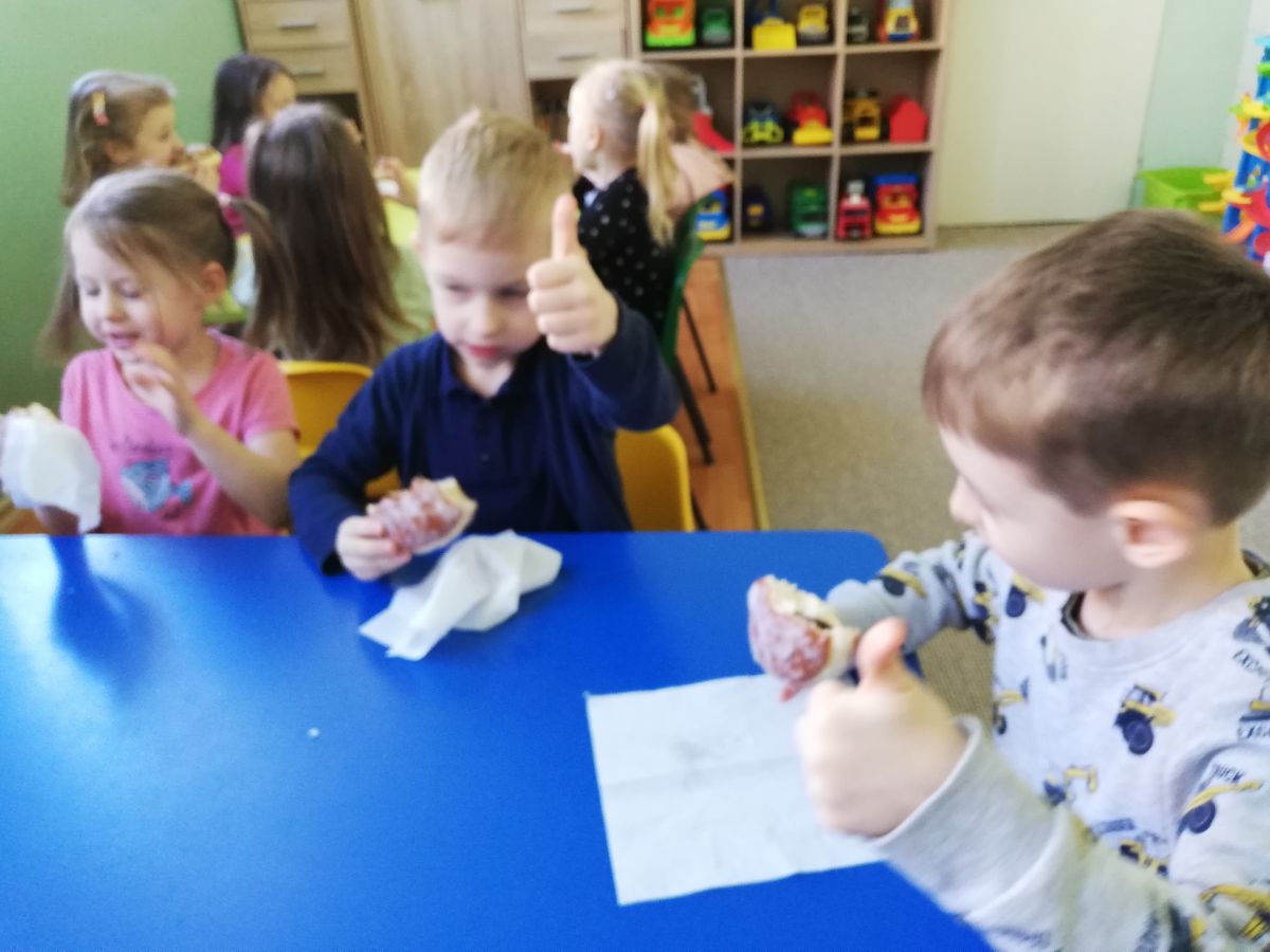 Najważniejszym akcentem tłustego czwartku są pączki. Oczywiście nie odbyło się bez ich degustacji. Wszyscy zajadali się słodkimi pysznościami. Była to okazja do świetnej zabawy, ale także do przypomnienia i kultywowania naszych narodowych tradycji i zwyczajów.