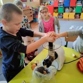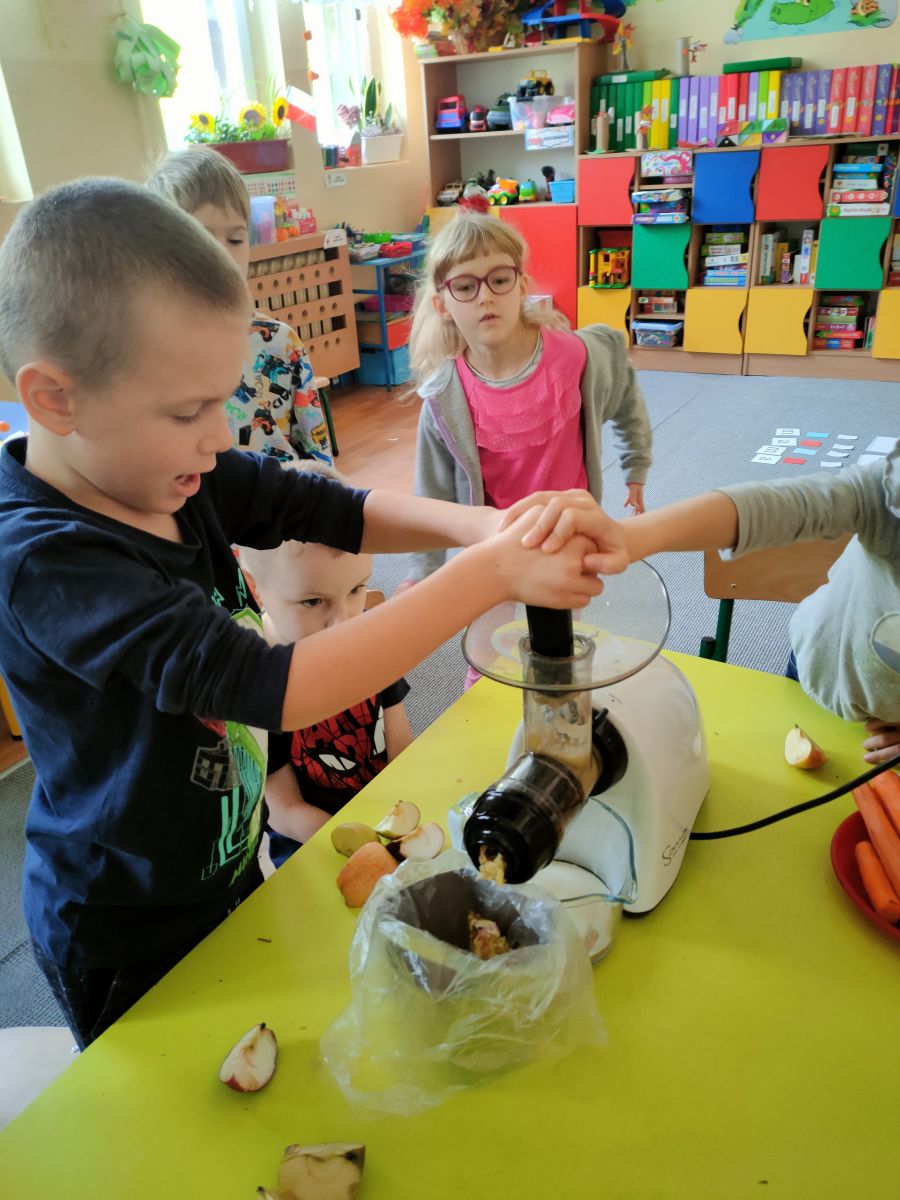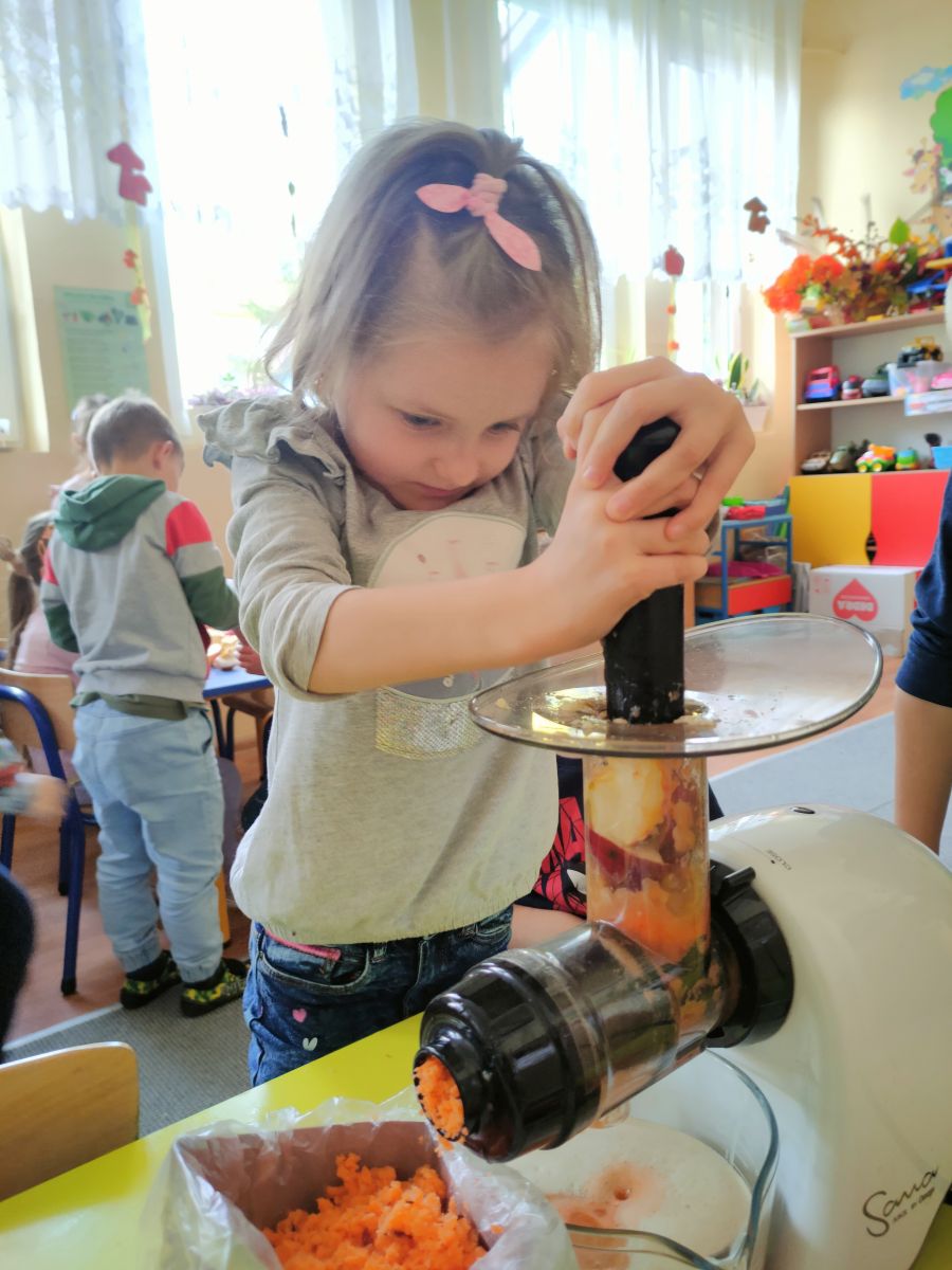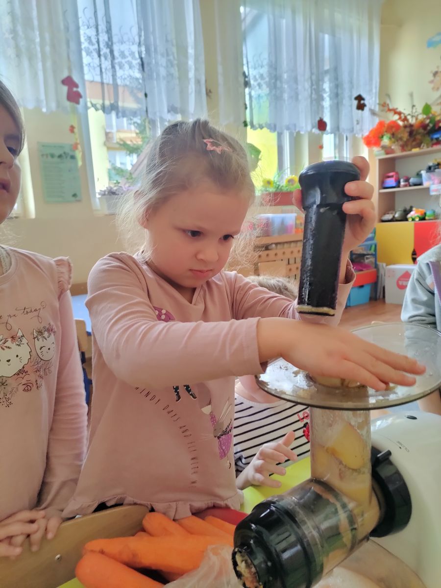 Przygotowanie i degustacja soku z marchwi i jabłek.