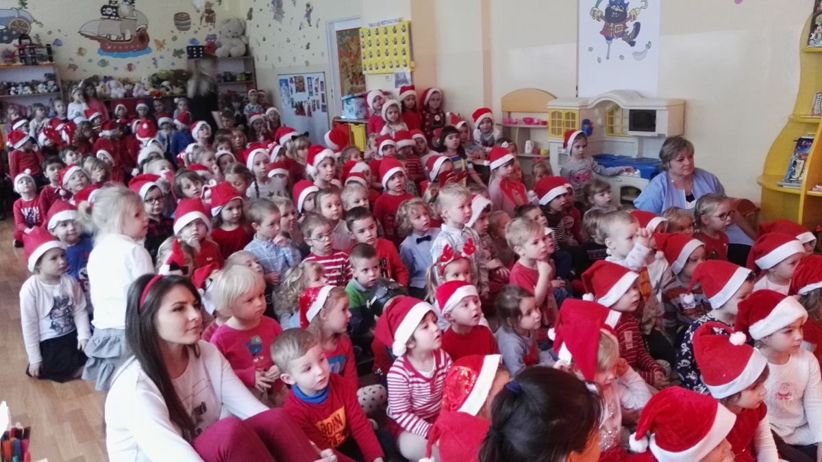 6 grudnia nasze przedszkole odwiedził długo wyczekiwany przez dzieci gość - ŚWIĘTY MIKOŁAJ. Przedszkolaki obejrzały przedstawienie w wykonaniu aktorów agencji artystycznej "Patigo", a następnie każda grupa spotkała się z Mikołajem w swojej sali, gdzie dała popis swoich umiejętności wokalnych i recytatorskich. Mikołaj wręczył dzieciom paczki oraz wykonał z dziećmi pamiątkowe zdjęcia. To był pełen wrażeń dzień, który naszym milusińskim na długo zostanie w pamięci.