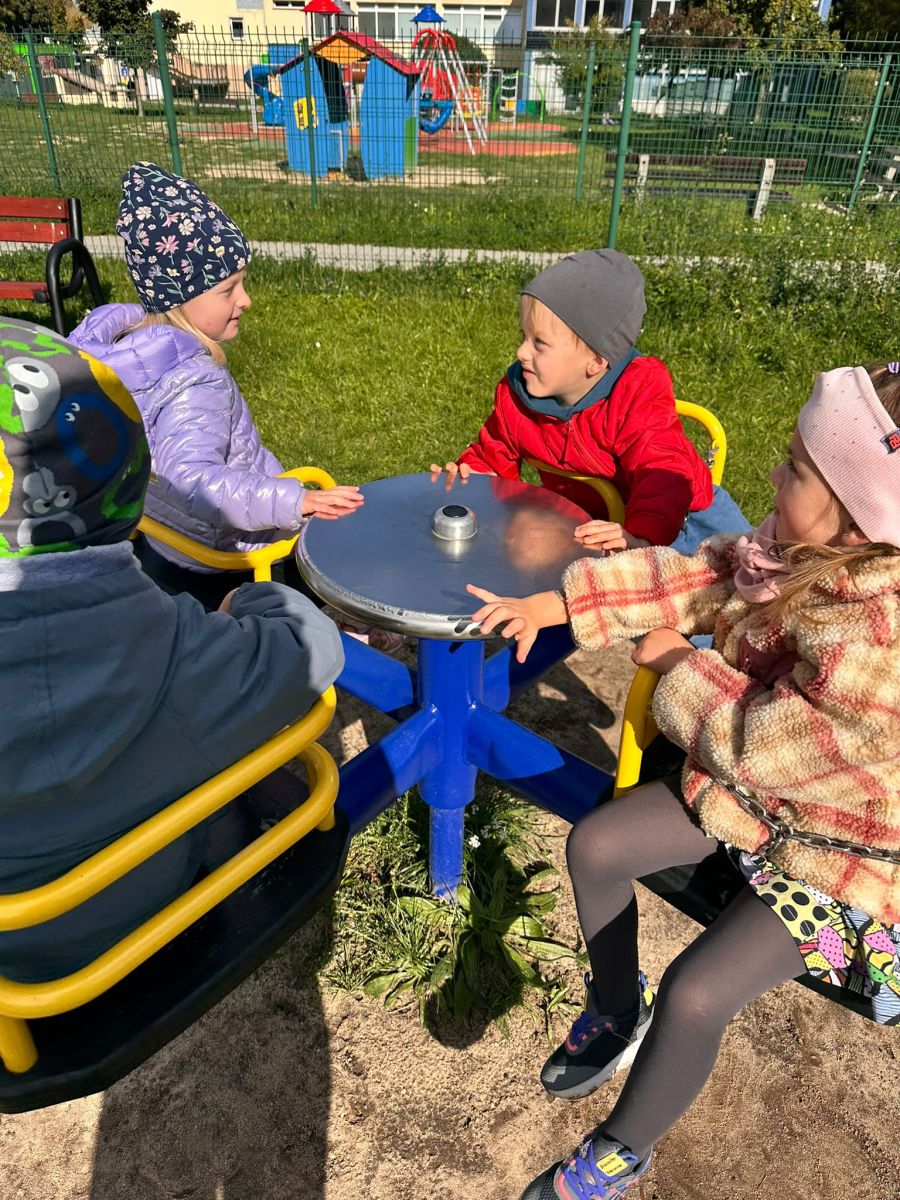 Opublikowano: 11.03.2026 Kolorowe spacery – złota polska jesień za oknami, więc przedszkolaki wędrują w grupie lub parami. Piękny jesienny krajobraz i skarby dodawały nam dobrego humoru