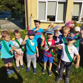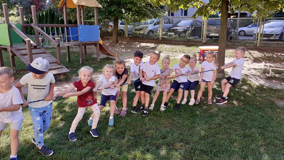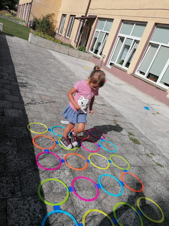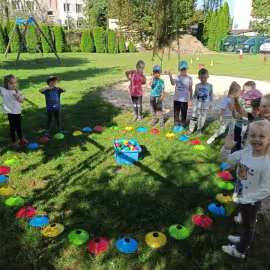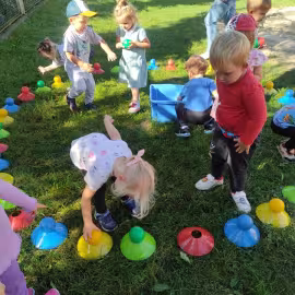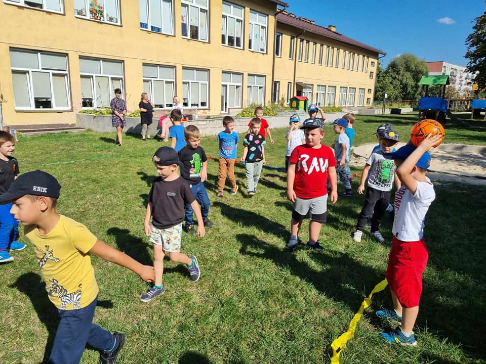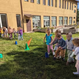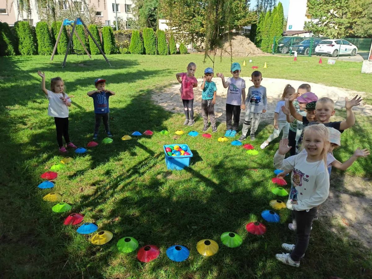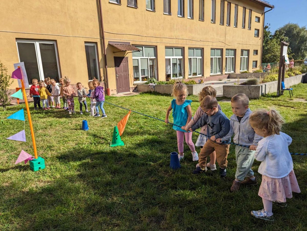 - Przedszkolaki na torze przeszkód- zabawy sportowe w ogrodzie przedszkolnym.