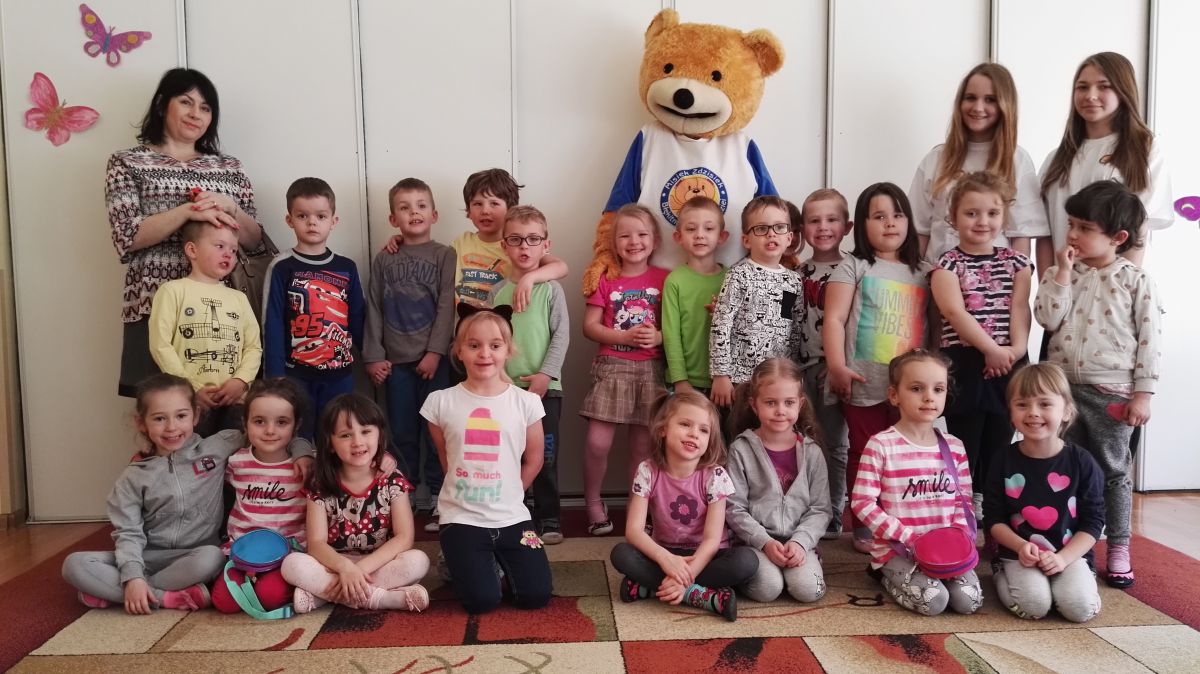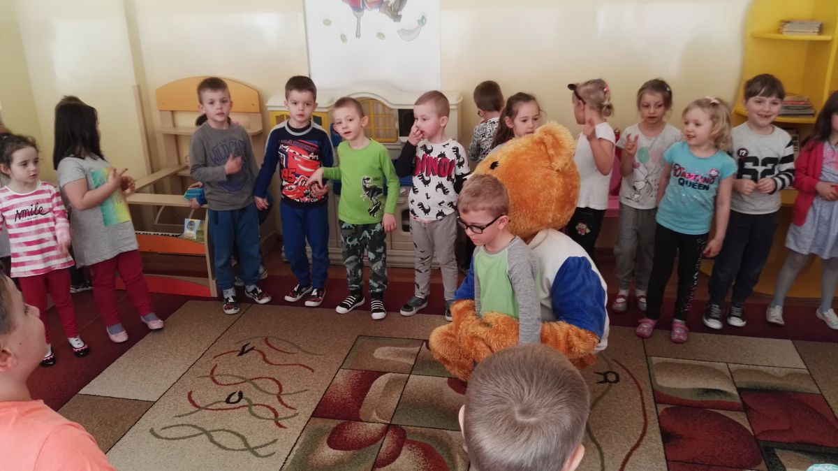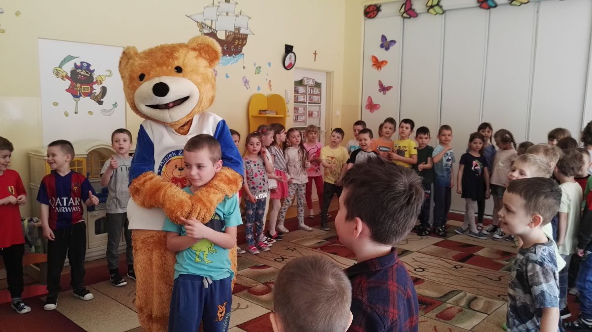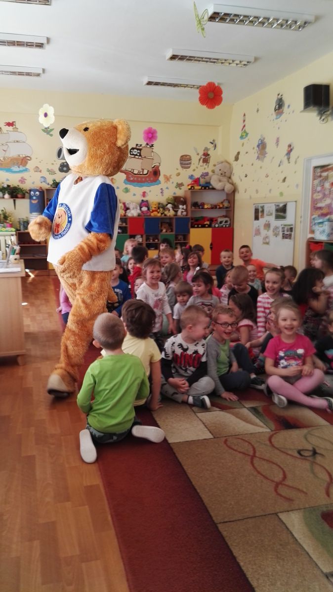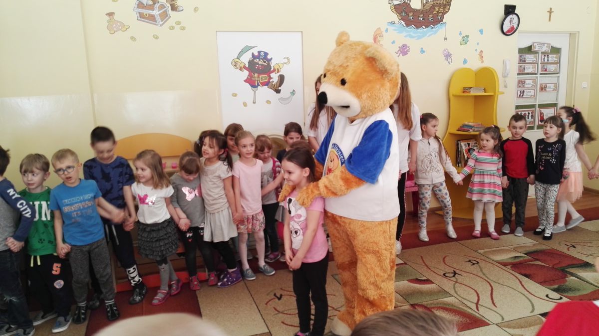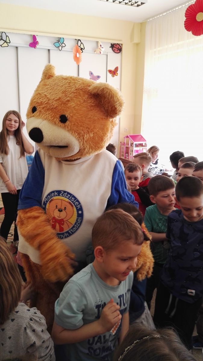 11 kwietnia nasze Przedszkole odwiedzili bardzo mili goście z Fundacji "Błękitny Promyk Nadziei", a wraz z nimi MISIEK ZDZISIEK, który szybka skradł serca naszych przedszkolaków. Miś opowiedział dzieciom, w jakim celu zbieramy nakrętki i co dzieje się z nimi później ( są przerabiane są na granulat, z którego powstają nowe zakrętki, rury PCV czy obudowy komputerów). Pracownicy Fundacji podziękowali dzieciom i ich bliskim za włączenie się w akcję charytatywną pod hasłem „Misiek Zdzisiek zbiera nakrętki” - nasze Przedszkole kolejny już rok wspiera tę inicjatywę. Zbieranie nakrętek jest działaniem proekologicznym, a we współpracy z Fundacją pozwala uzyskać środki finansowe na bieżące funkcjonowanie i dalsze niesienie pomocy osobom niepełnosprawnym z terenu województwa świętokrzyskiego. Podczas spotkania MISIEK bawił się i tańczył z dziećmi oraz pozował do zdjęć. Było bardzo wesoło. Po zabawach wszyscy zgodnie obiecaliśmy, że dalej będziemy pomagać :)