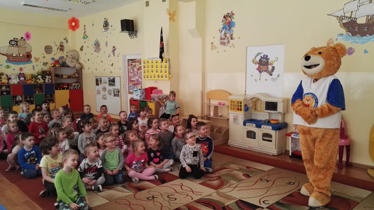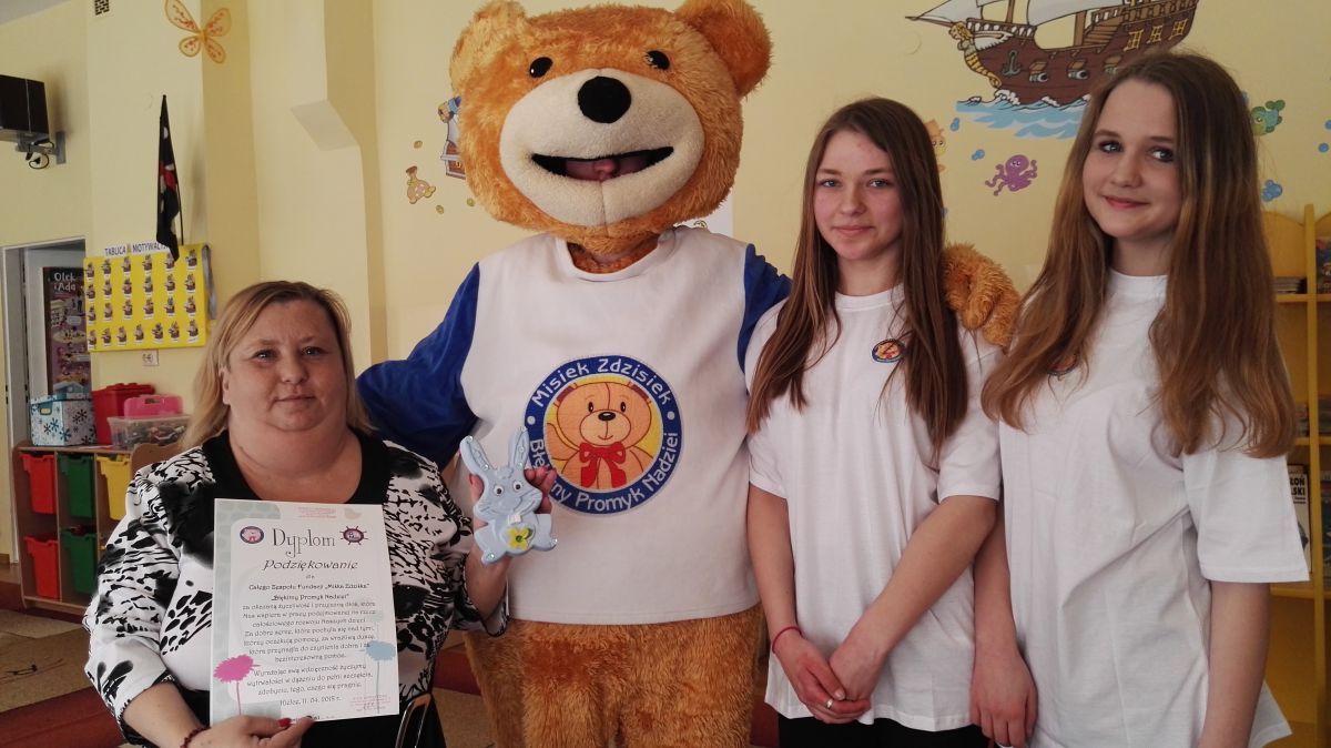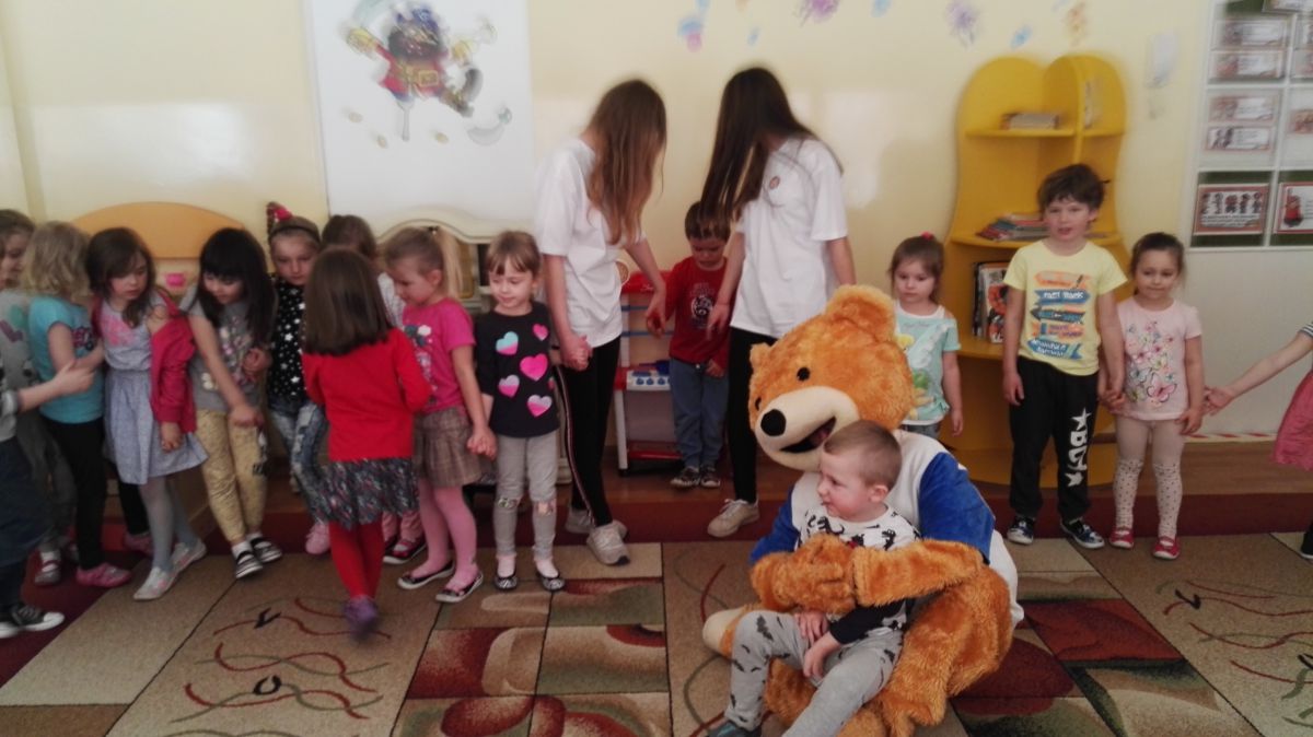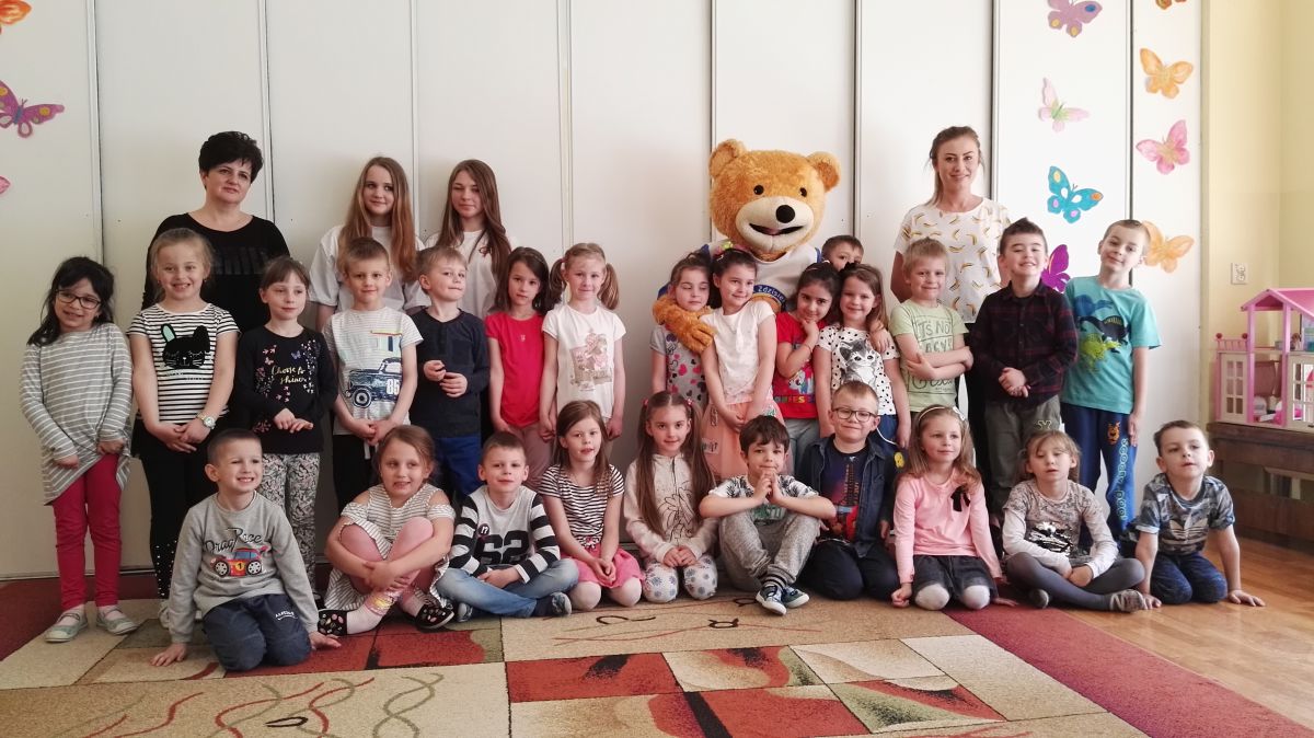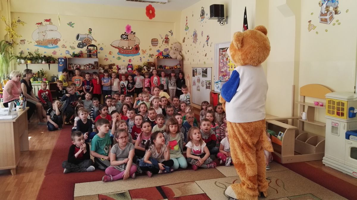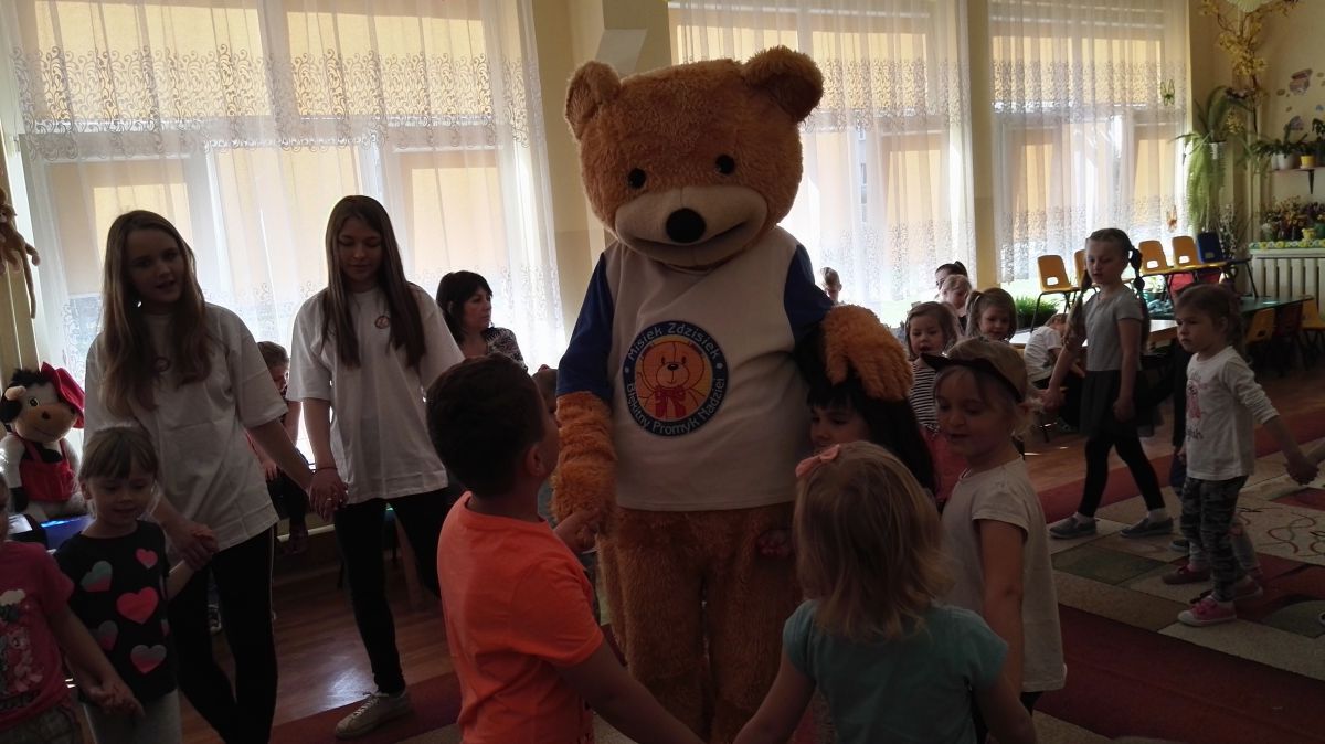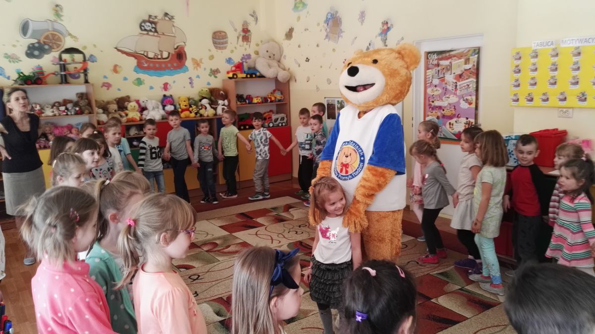 11 kwietnia nasze Przedszkole odwiedzili bardzo mili goście z Fundacji "Błękitny Promyk Nadziei", a wraz z nimi MISIEK ZDZISIEK, który szybka skradł serca naszych przedszkolaków. Miś opowiedział dzieciom, w jakim celu zbieramy nakrętki i co dzieje się z nimi później ( są przerabiane są na granulat, z którego powstają nowe zakrętki, rury PCV czy obudowy komputerów). Pracownicy Fundacji podziękowali dzieciom i ich bliskim za włączenie się w akcję charytatywną pod hasłem „Misiek Zdzisiek zbiera nakrętki” - nasze Przedszkole kolejny już rok wspiera tę inicjatywę. Zbieranie nakrętek jest działaniem proekologicznym, a we współpracy z Fundacją pozwala uzyskać środki finansowe na bieżące funkcjonowanie i dalsze niesienie pomocy osobom niepełnosprawnym z terenu województwa świętokrzyskiego. Podczas spotkania MISIEK bawił się i tańczył z dziećmi oraz pozował do zdjęć. Było bardzo wesoło. Po zabawach wszyscy zgodnie obiecaliśmy, że dalej będziemy pomagać :)
