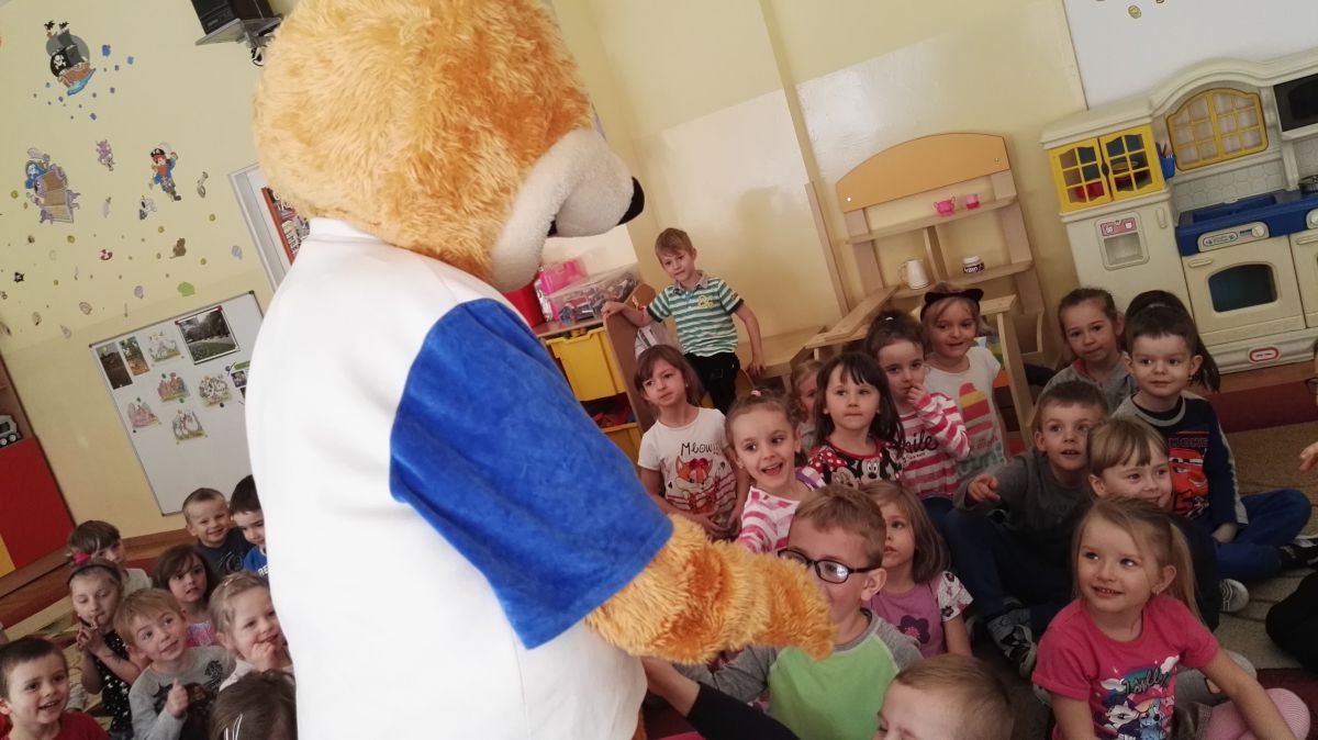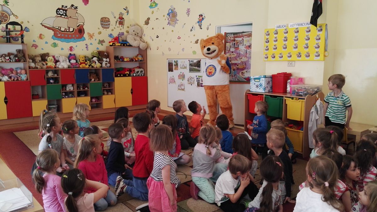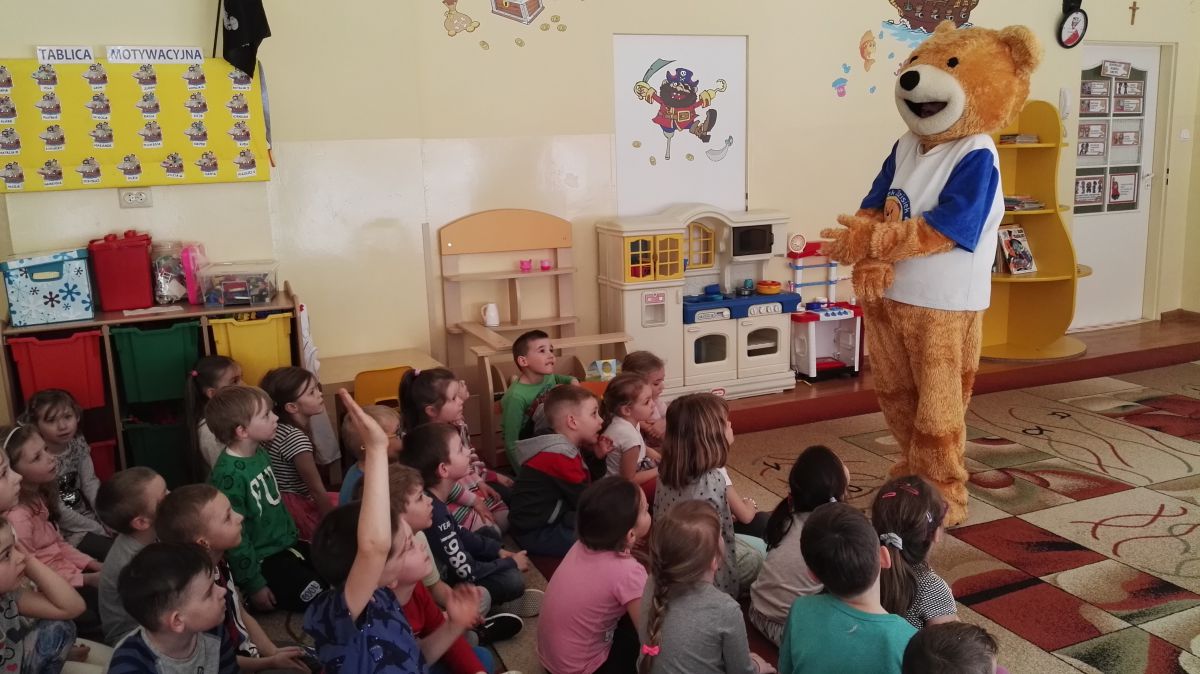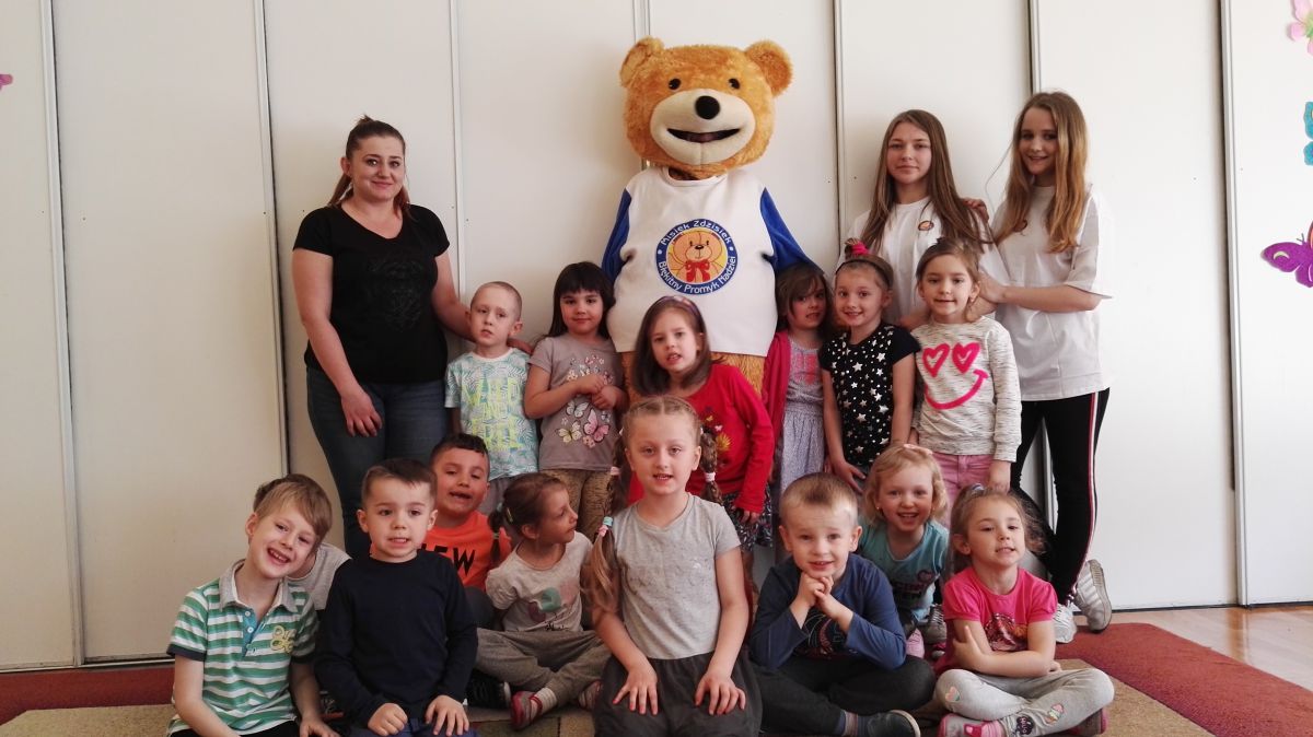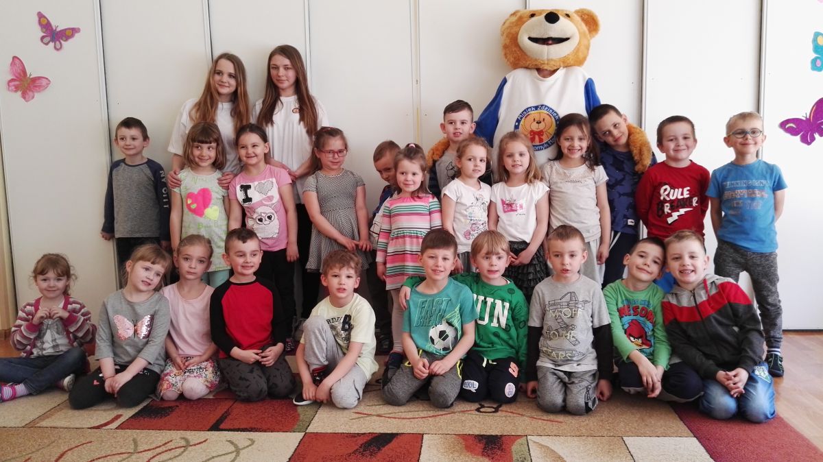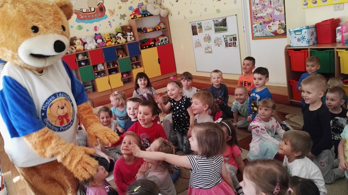 11 kwietnia nasze Przedszkole odwiedzili bardzo mili goście z Fundacji "Błękitny Promyk Nadziei", a wraz z nimi MISIEK ZDZISIEK, który szybka skradł serca naszych przedszkolaków. Miś opowiedział dzieciom, w jakim celu zbieramy nakrętki i co dzieje się z nimi później ( są przerabiane są na granulat, z którego powstają nowe zakrętki, rury PCV czy obudowy komputerów). Pracownicy Fundacji podziękowali dzieciom i ich bliskim za włączenie się w akcję charytatywną pod hasłem „Misiek Zdzisiek zbiera nakrętki” - nasze Przedszkole kolejny już rok wspiera tę inicjatywę. Zbieranie nakrętek jest działaniem proekologicznym, a we współpracy z Fundacją pozwala uzyskać środki finansowe na bieżące funkcjonowanie i dalsze niesienie pomocy osobom niepełnosprawnym z terenu województwa świętokrzyskiego. Podczas spotkania MISIEK bawił się i tańczył z dziećmi oraz pozował do zdjęć. Było bardzo wesoło. Po zabawach wszyscy zgodnie obiecaliśmy, że dalej będziemy pomagać :)