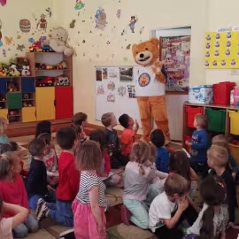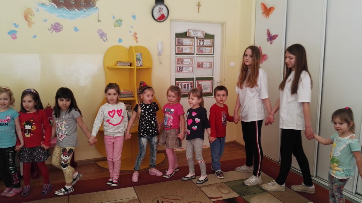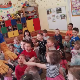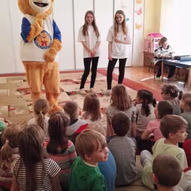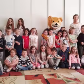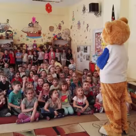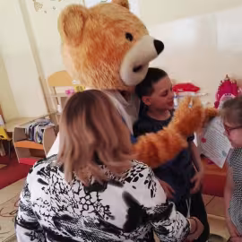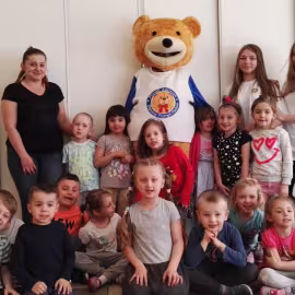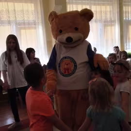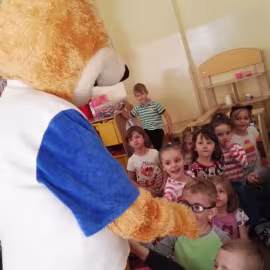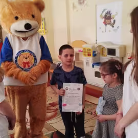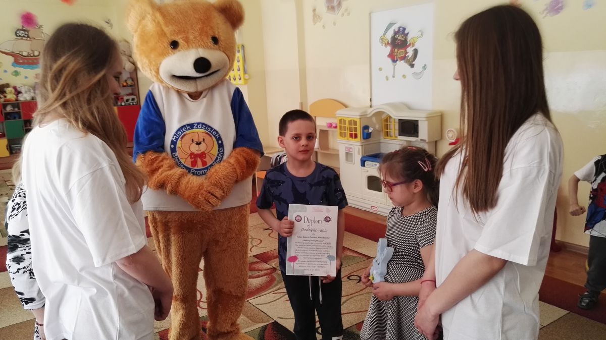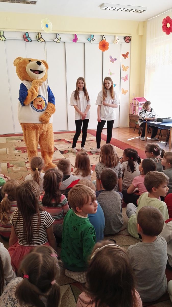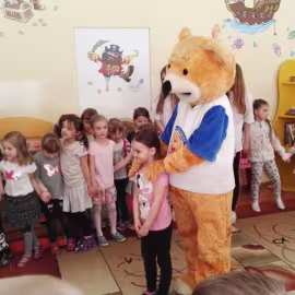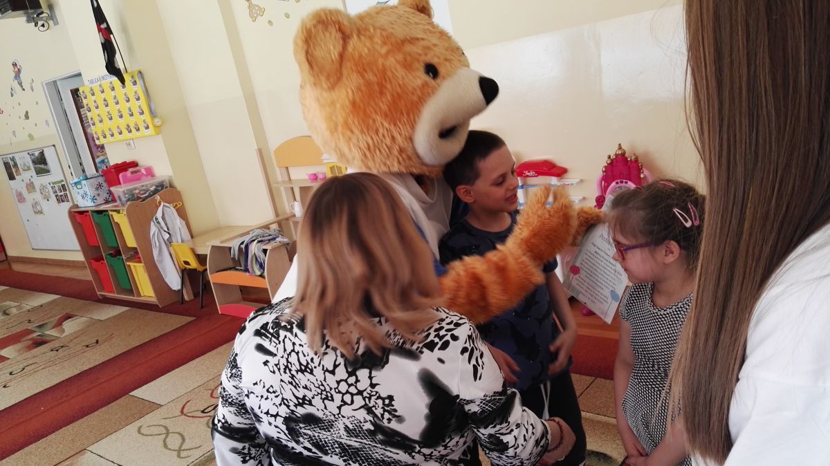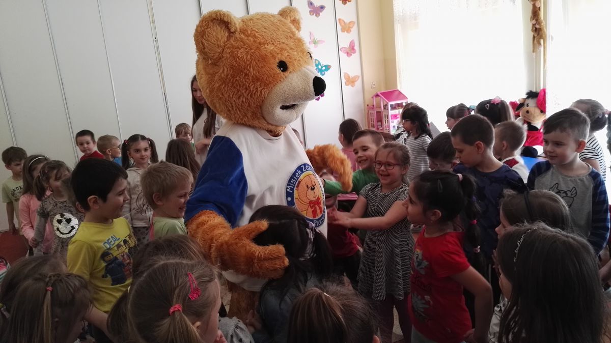 11 kwietnia nasze Przedszkole odwiedzili bardzo mili goście z Fundacji "Błękitny Promyk Nadziei", a wraz z nimi MISIEK ZDZISIEK, który szybka skradł serca naszych przedszkolaków. Miś opowiedział dzieciom, w jakim celu zbieramy nakrętki i co dzieje się z nimi później ( są przerabiane są na granulat, z którego powstają nowe zakrętki, rury PCV czy obudowy komputerów). Pracownicy Fundacji podziękowali dzieciom i ich bliskim za włączenie się w akcję charytatywną pod hasłem „Misiek Zdzisiek zbiera nakrętki” - nasze Przedszkole kolejny już rok wspiera tę inicjatywę. Zbieranie nakrętek jest działaniem proekologicznym, a we współpracy z Fundacją pozwala uzyskać środki finansowe na bieżące funkcjonowanie i dalsze niesienie pomocy osobom niepełnosprawnym z terenu województwa świętokrzyskiego. Podczas spotkania MISIEK bawił się i tańczył z dziećmi oraz pozował do zdjęć. Było bardzo wesoło. Po zabawach wszyscy zgodnie obiecaliśmy, że dalej będziemy pomagać :)