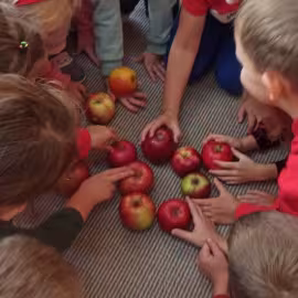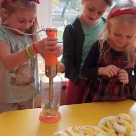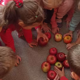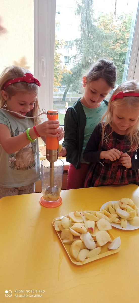 Dzień Jabłka to coroczne święto jabłek i sadów, które odbywa się w październiku. Jest obchodzony głównie w Wielkiej Brytanii, ale w naszym Przedszkolu też postanowiliśmy poświętować, dzieci poznawały jabłka wielozmysłowo, a na koniec samodzielnie przygoptowały pyszny sok jabłkowy.