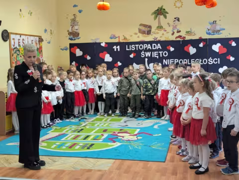 8 listopada grupy starsze wystąpiły przed młodszymi przedszkolakami z okazji Święta Niepodległości. Radio Kielce podczas akademii gościło z wizytą w naszym przedszkolu : https://www.facebook.com/watch/?v=886481536950651&rdid=AE6d6bddUrQbw4gq
