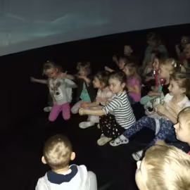 28 i 29 marca nasze Przedszkole odwiedziło mobilne Planetarium - "Halo Wiedza". Przedszkolaki wzięły udział w pokazie astronomicznym w specjalnym namiocie sferycznym ( 5 m średnicy i 3 m wysokości ) o kształcie kuli - dającym wrażenie przestrzeni kosmicznej. Dzieci były zachwycone, w nietypowy sposób poszerzyły swoją wiedzę na temat Wszechświata.