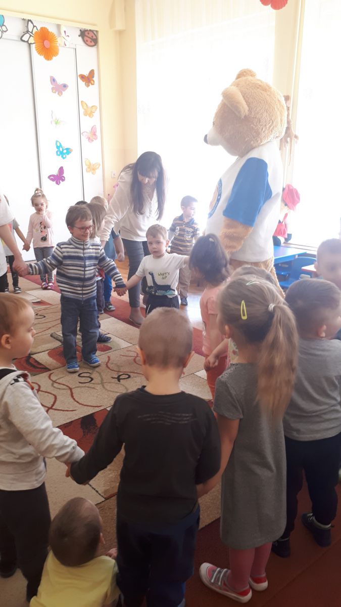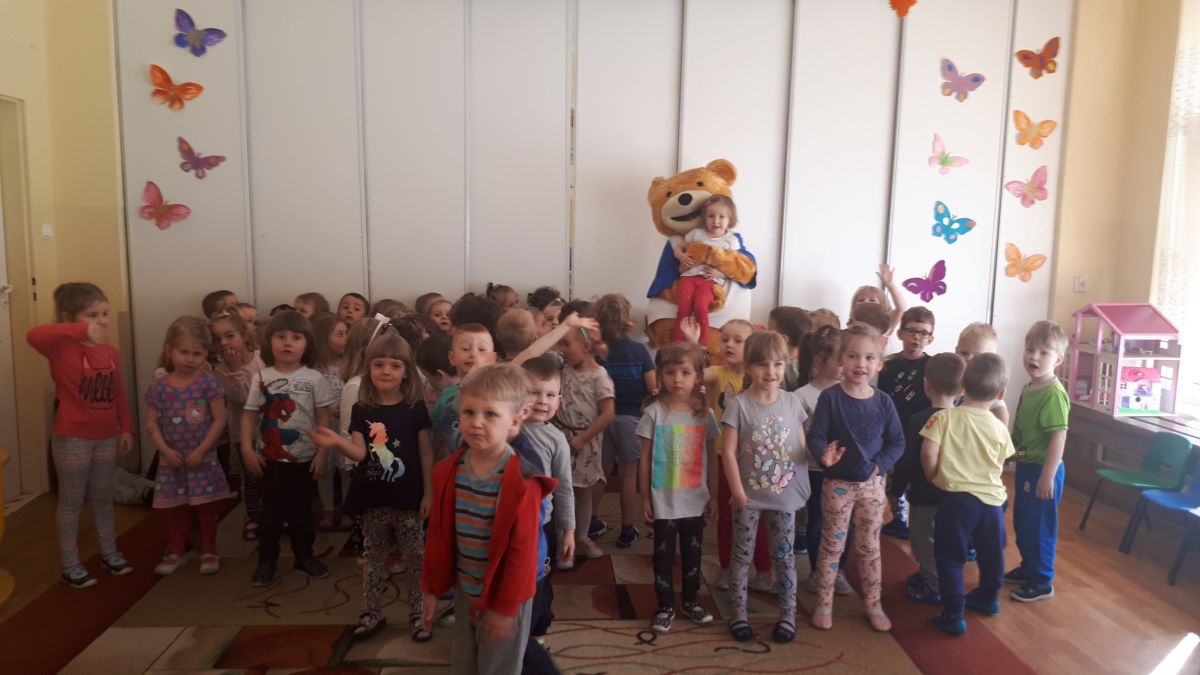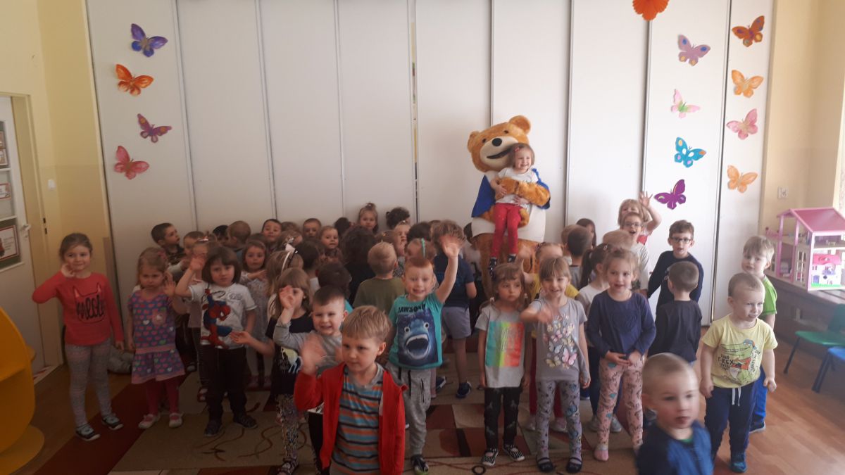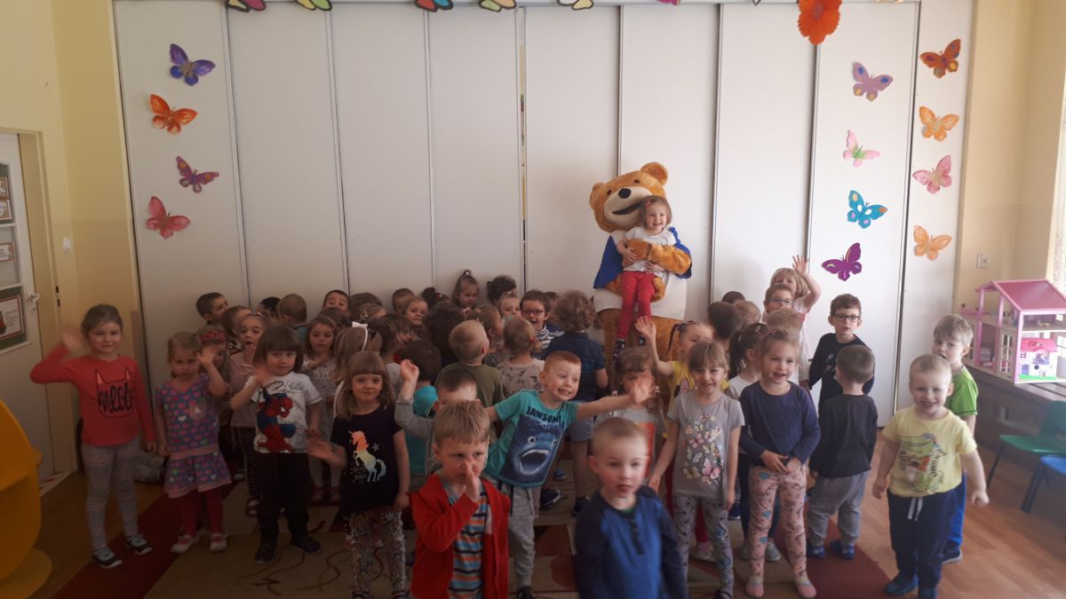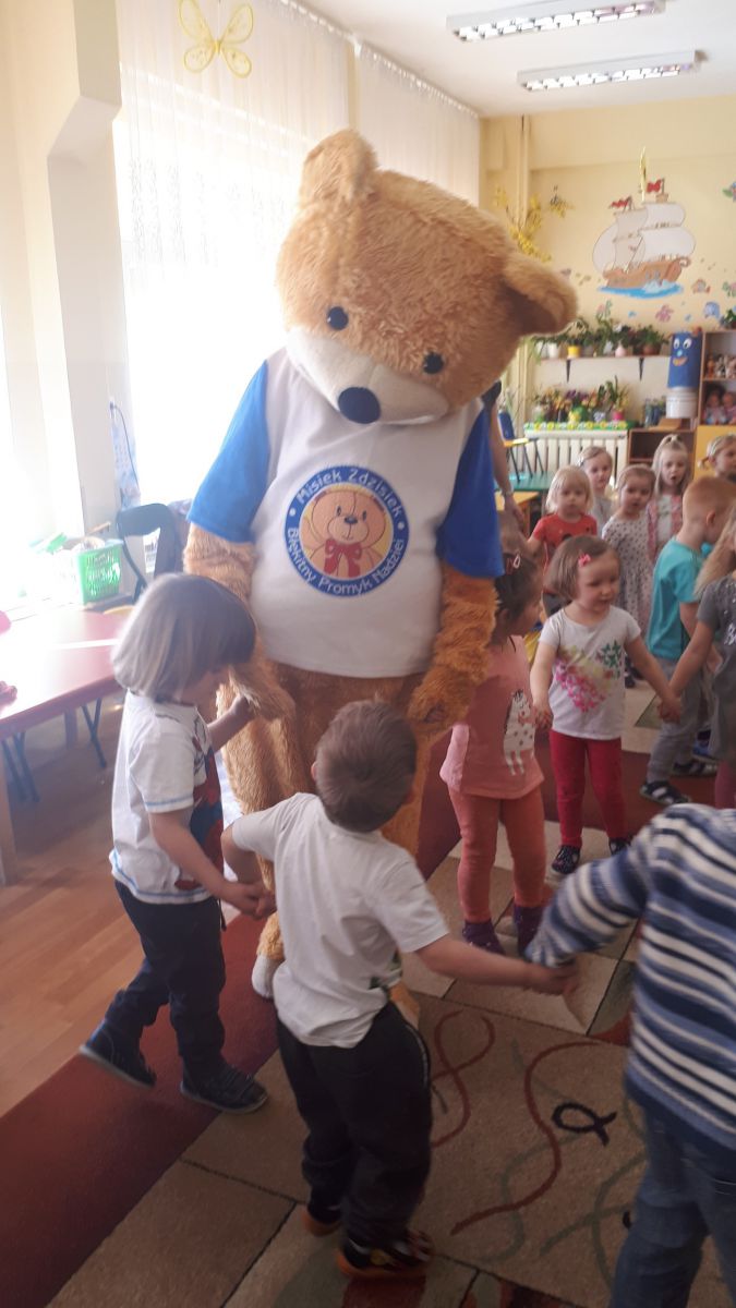 11 kwietnia nasze Przedszkole odwiedzili bardzo mili goście z Fundacji "Błękitny Promyk Nadziei", a wraz z nimi MISIEK ZDZISIEK, który szybka skradł serca naszych przedszkolaków. Miś opowiedział dzieciom, w jakim celu zbieramy nakrętki i co dzieje się z nimi później ( są przerabiane są na granulat, z którego powstają nowe zakrętki, rury PCV czy obudowy komputerów). Pracownicy Fundacji podziękowali dzieciom i ich bliskim za włączenie się w akcję charytatywną pod hasłem „Misiek Zdzisiek zbiera nakrętki” -  nasze Przedszkole kolejny już rok wspiera tę inicjatywę. Zbieranie nakrętek jest działaniem proekologicznym, a we współpracy z Fundacją pozwala uzyskać środki finansowe na bieżące funkcjonowanie i dalsze niesienie pomocy osobom niepełnosprawnym z terenu województwa świętokrzyskiego. Podczas spotkania MISIEK bawił się i tańczył z dziećmi oraz pozował do zdjęć. Było bardzo wesoło. Po zabawach wszyscy zgodnie obiecaliśmy, że dalej będziemy pomagać :)