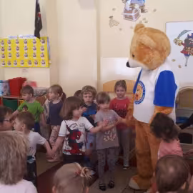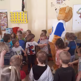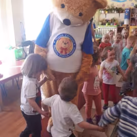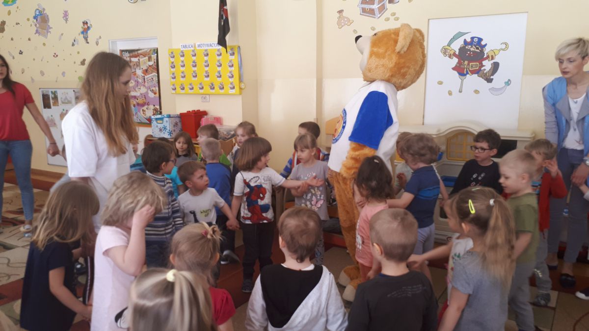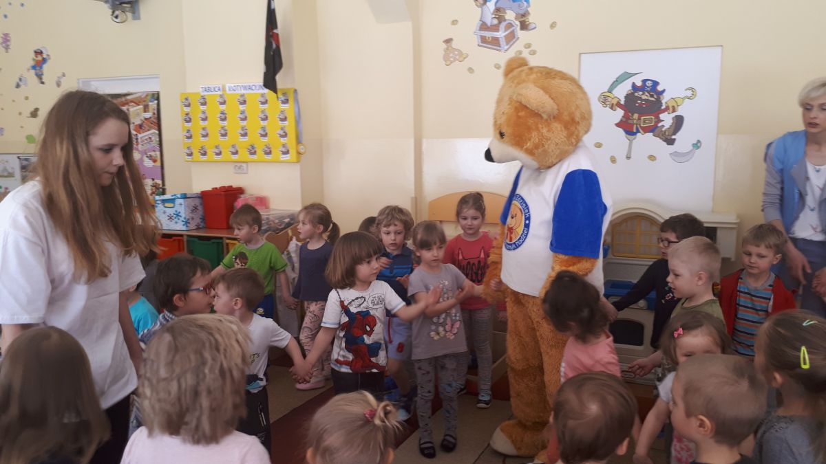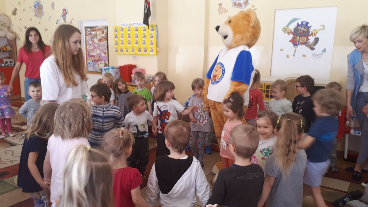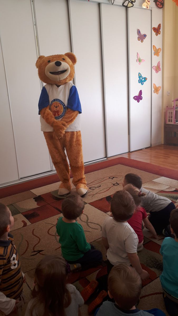 11 kwietnia nasze Przedszkole odwiedzili bardzo mili goście z Fundacji "Błękitny Promyk Nadziei", a wraz z nimi MISIEK ZDZISIEK, który szybka skradł serca naszych przedszkolaków. Miś opowiedział dzieciom, w jakim celu zbieramy nakrętki i co dzieje się z nimi później ( są przerabiane są na granulat, z którego powstają nowe zakrętki, rury PCV czy obudowy komputerów). Pracownicy Fundacji podziękowali dzieciom i ich bliskim za włączenie się w akcję charytatywną pod hasłem „Misiek Zdzisiek zbiera nakrętki” -  nasze Przedszkole kolejny już rok wspiera tę inicjatywę. Zbieranie nakrętek jest działaniem proekologicznym, a we współpracy z Fundacją pozwala uzyskać środki finansowe na bieżące funkcjonowanie i dalsze niesienie pomocy osobom niepełnosprawnym z terenu województwa świętokrzyskiego. Podczas spotkania MISIEK bawił się i tańczył z dziećmi oraz pozował do zdjęć. Było bardzo wesoło. Po zabawach wszyscy zgodnie obiecaliśmy, że dalej będziemy pomagać :)