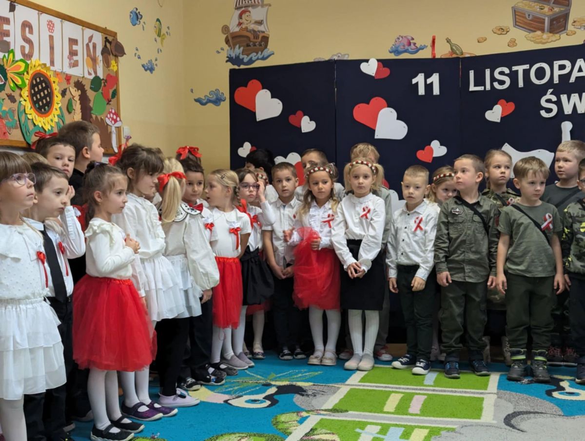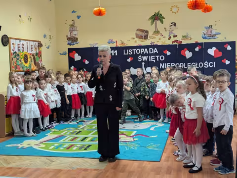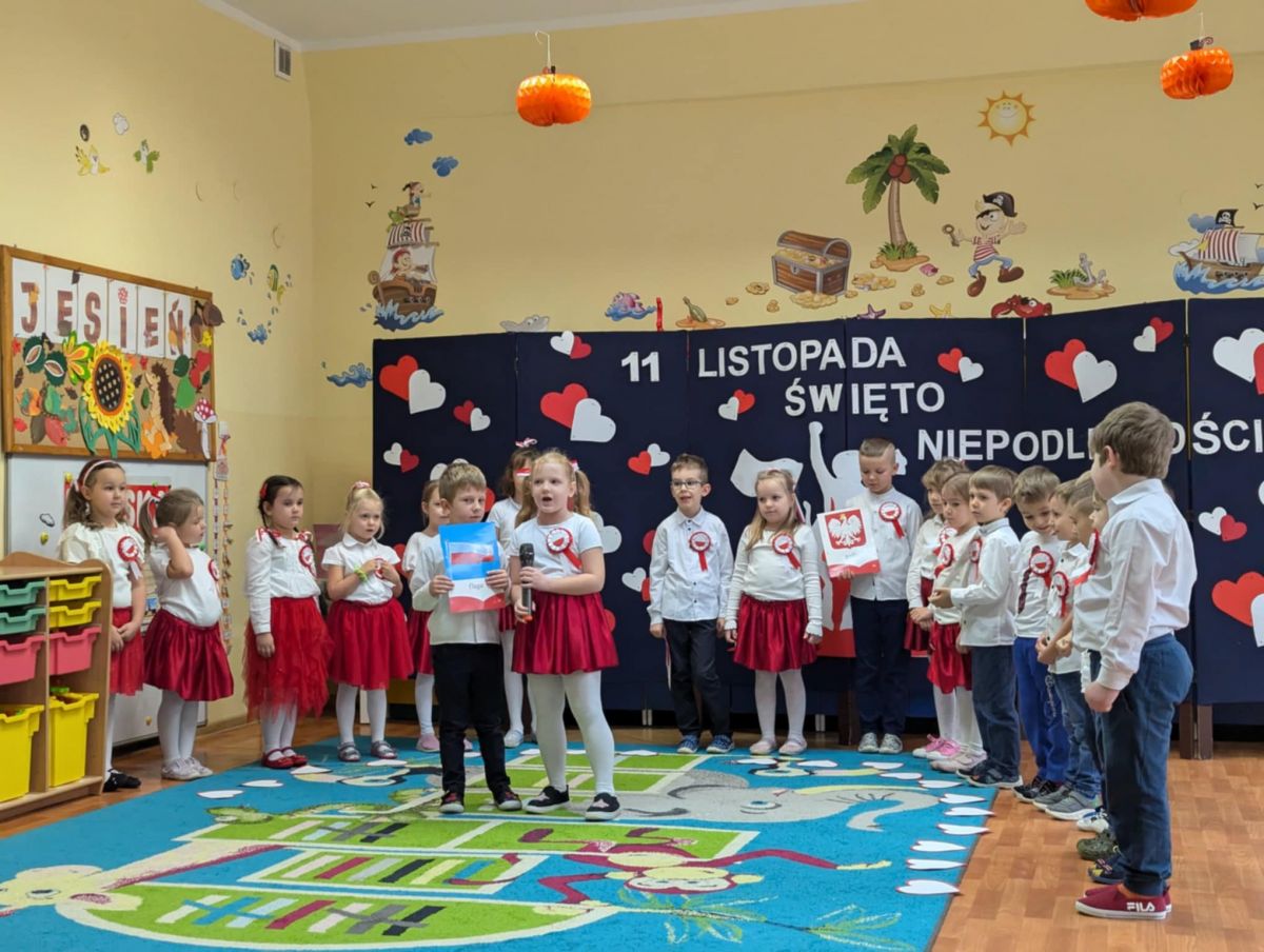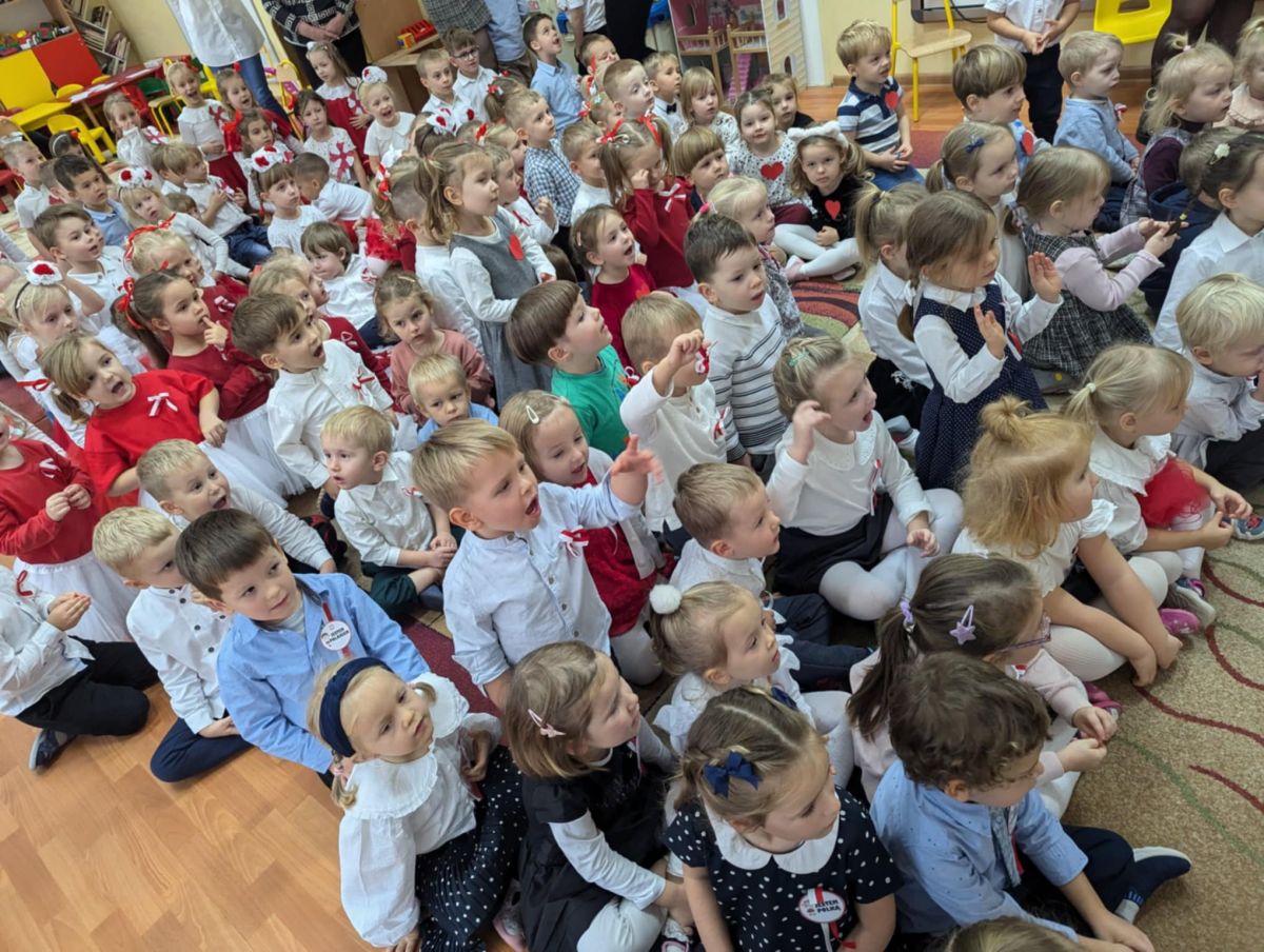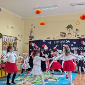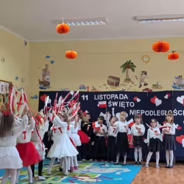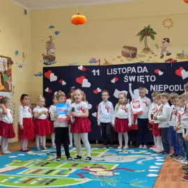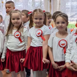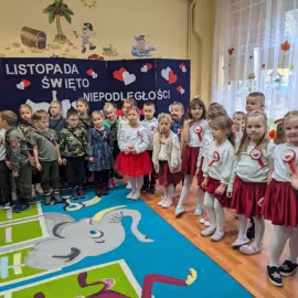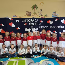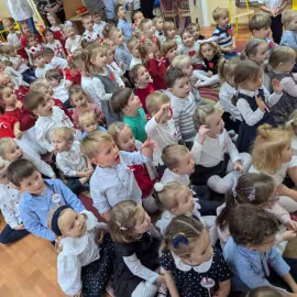 Nasze Przedszkole wzięło udział w akcji „Szkoła do hymnu” 2024. 8 listopada o symbolicznej godzinie 11:11 wszyscy zaśpiewaliśmy „Mazurka Dąbrowskiego”.