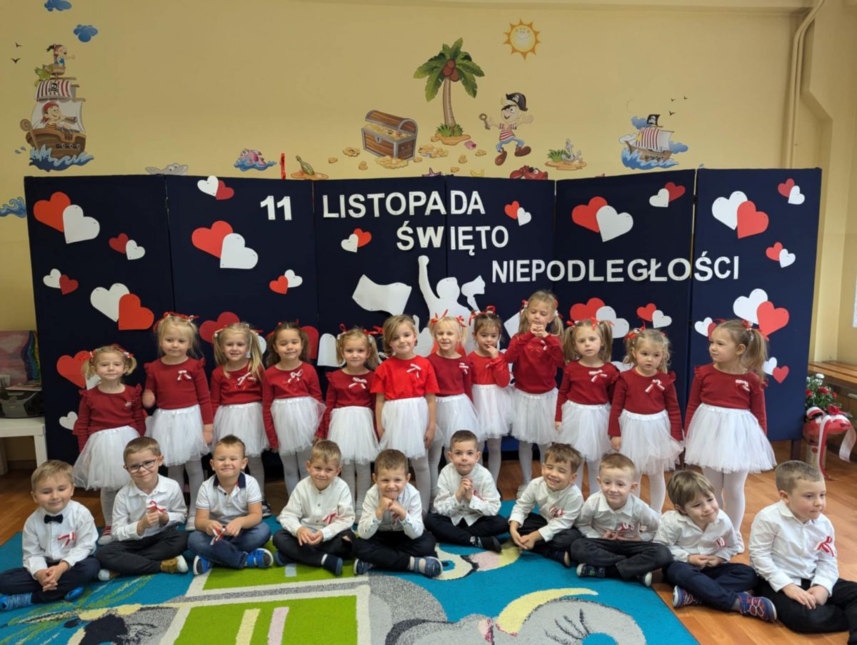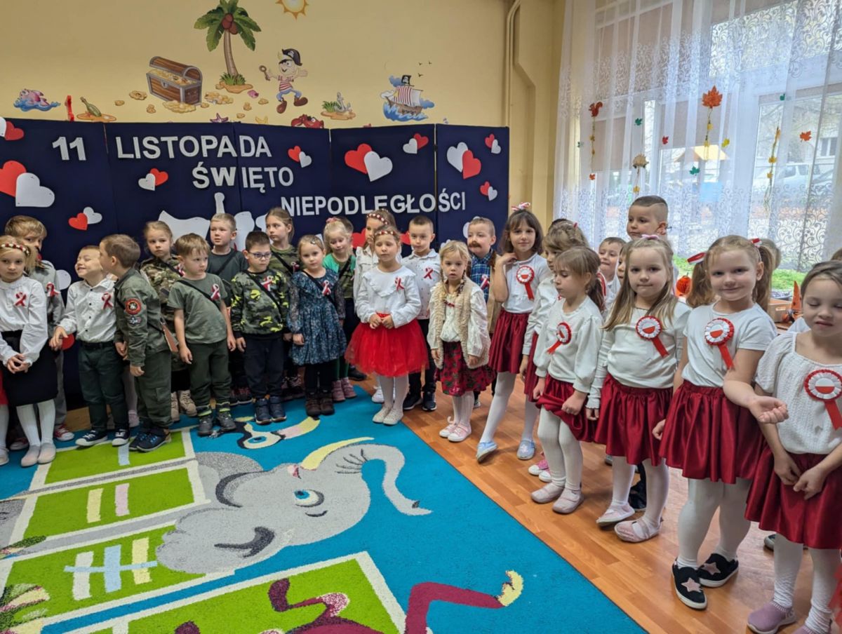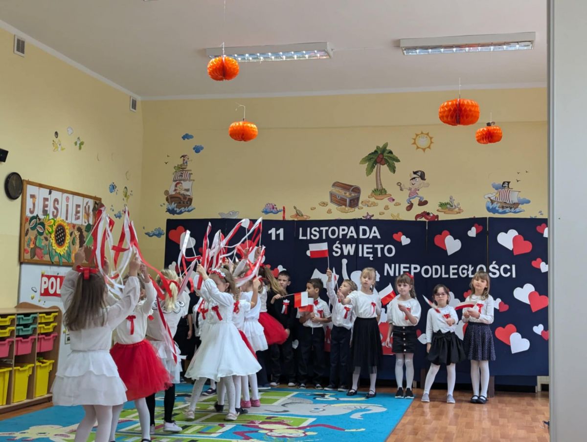 Nasze Przedszkole wzięło udział w akcji „Szkoła do hymnu” 2024. 8 listopada o symbolicznej godzinie 11:11 wszyscy zaśpiewaliśmy „Mazurka Dąbrowskiego”.