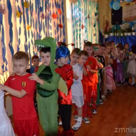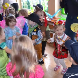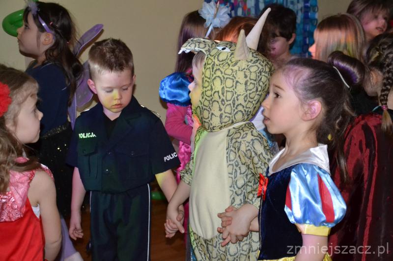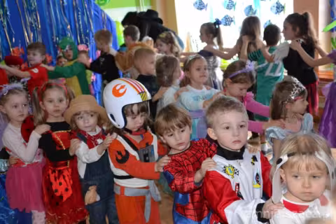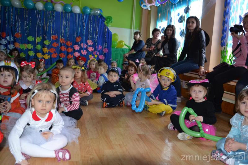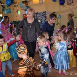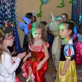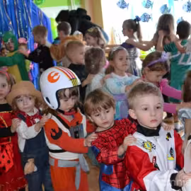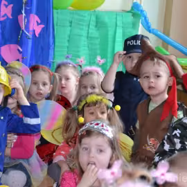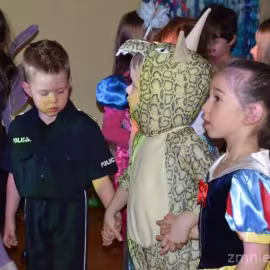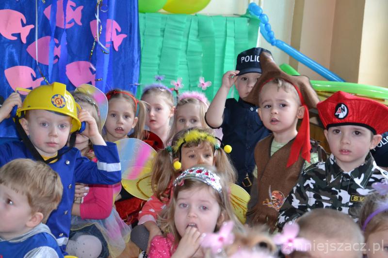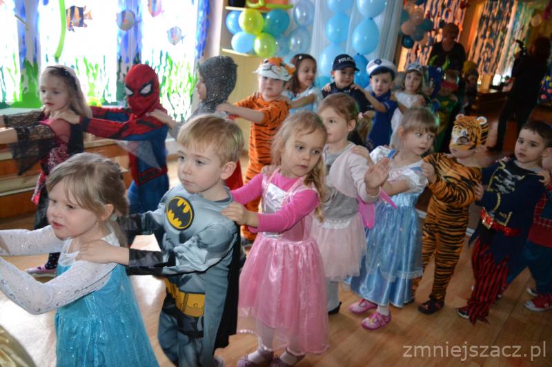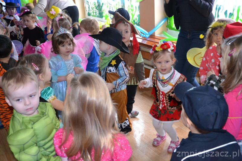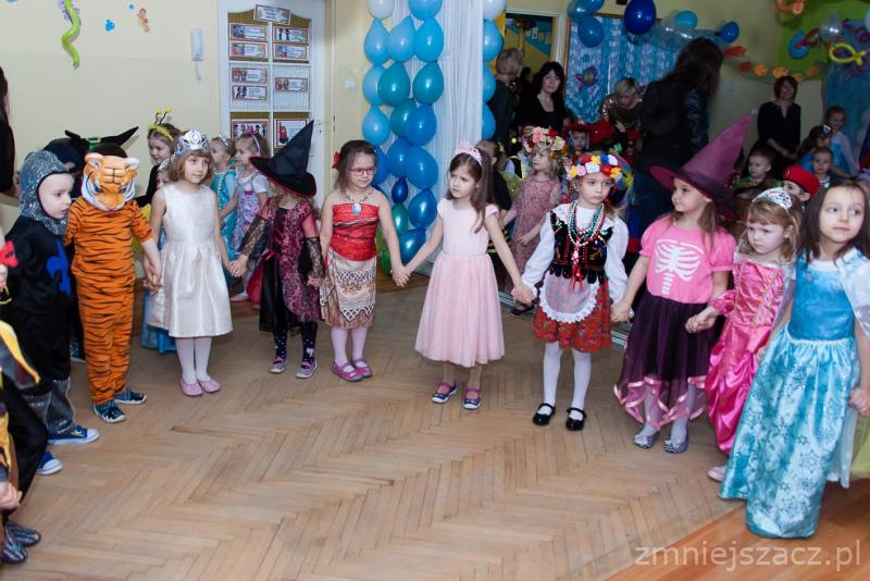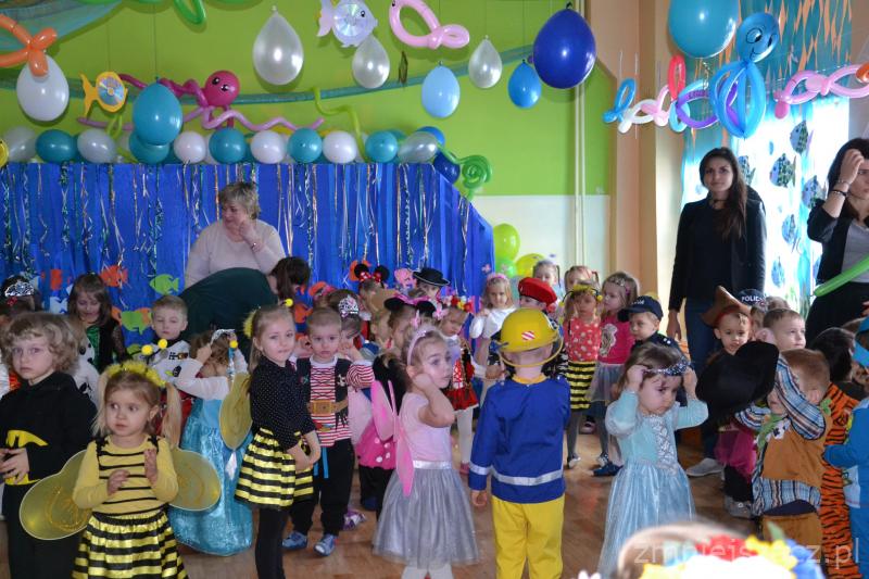 Zgodnie z tradycją w naszym przedszkolu, jak co roku odbył się bal karnawałowy. Przepięknie przebrane przedszkolaki z dumą prezentowały wymyślne stroje. Przebierańcy świetnie się bawili, uczestnicząc z wielką ochotą we wspólnych zabawach i konkursach. Skoczna i rytmiczna muzyka, przygotowana przez animatorów firmy artystycznej "Patigo", porwała dzieci do tańca. Tegoroczny bal na długo pozostanie w ich pamięci :)