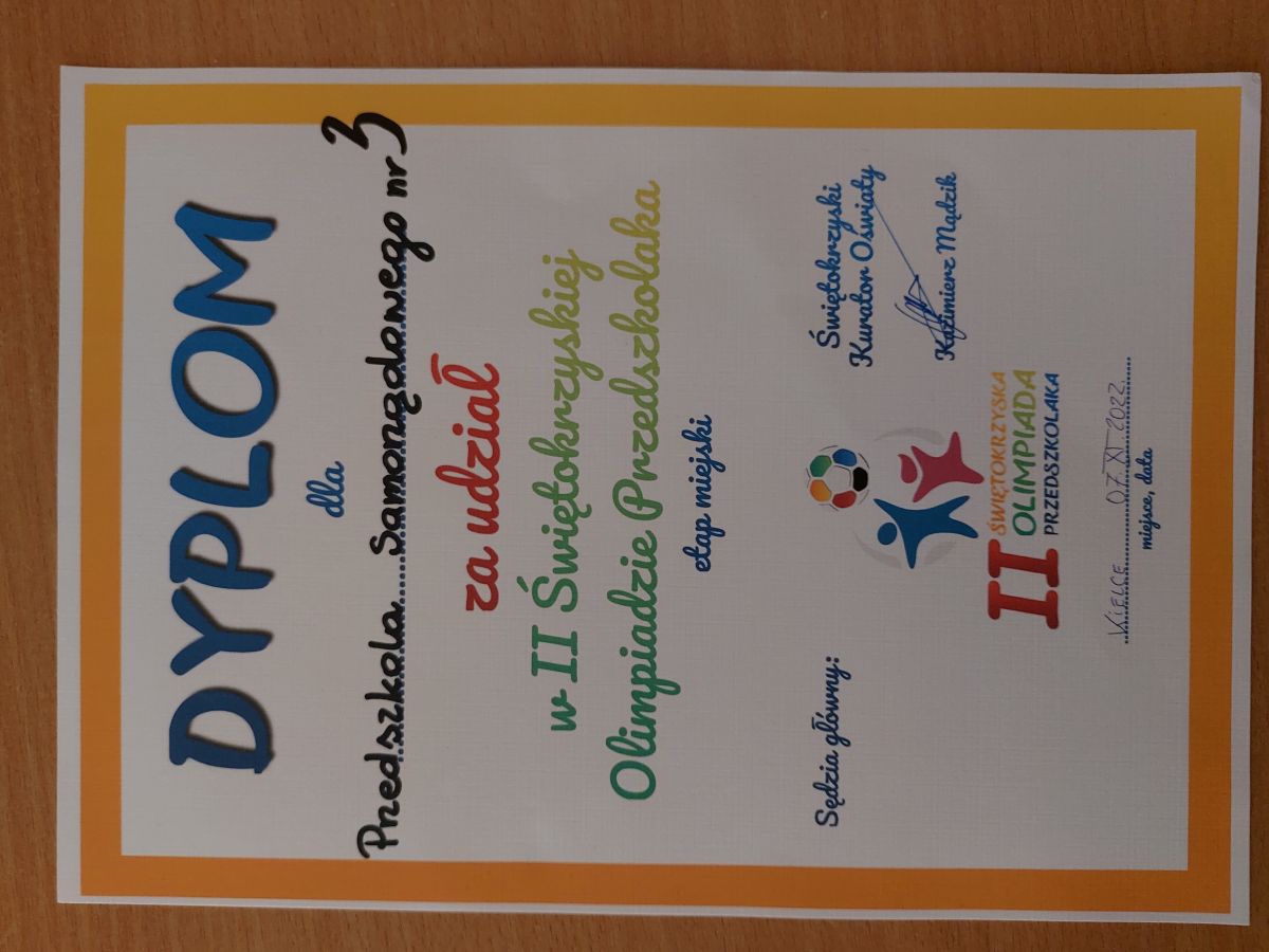 Milo nam poinformować, że przedstaiwciele grupy V - reprezentowali nasze Przedszkole w II Świętokrzyskiej Olimpiadzie Przedszkolaka. Nasi zawodnicy wypadli świetnie i otrzymali dyplom.
