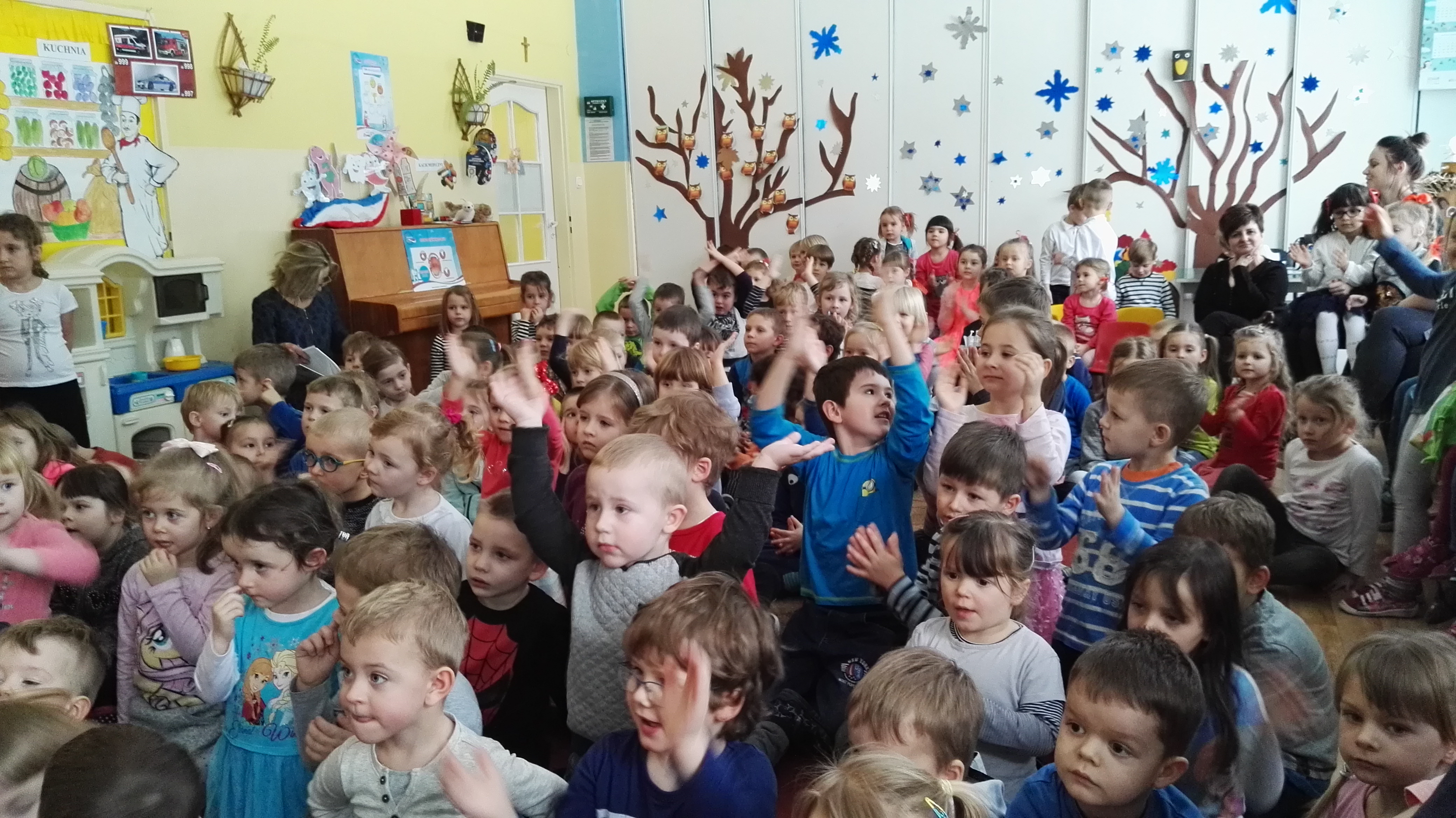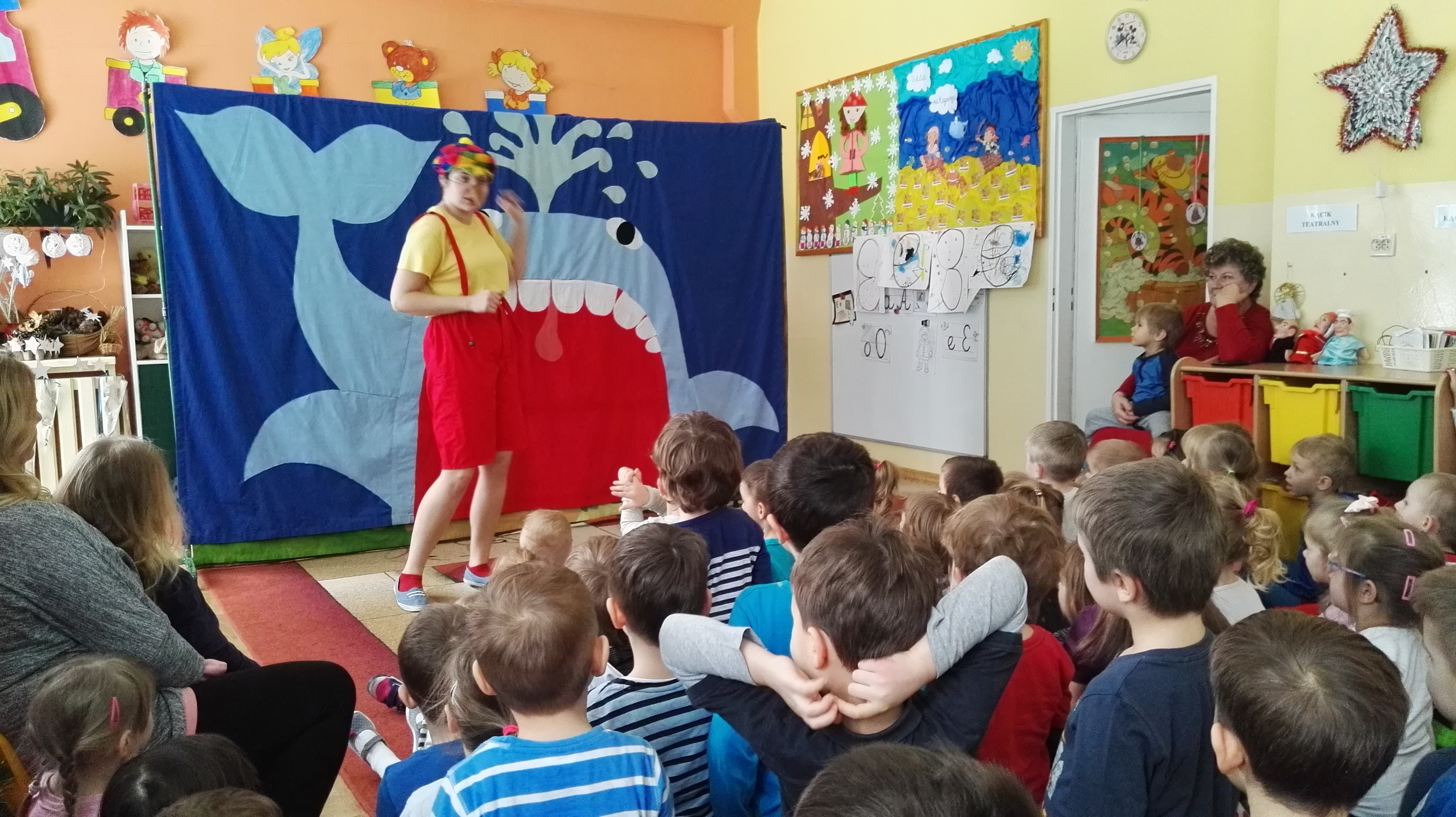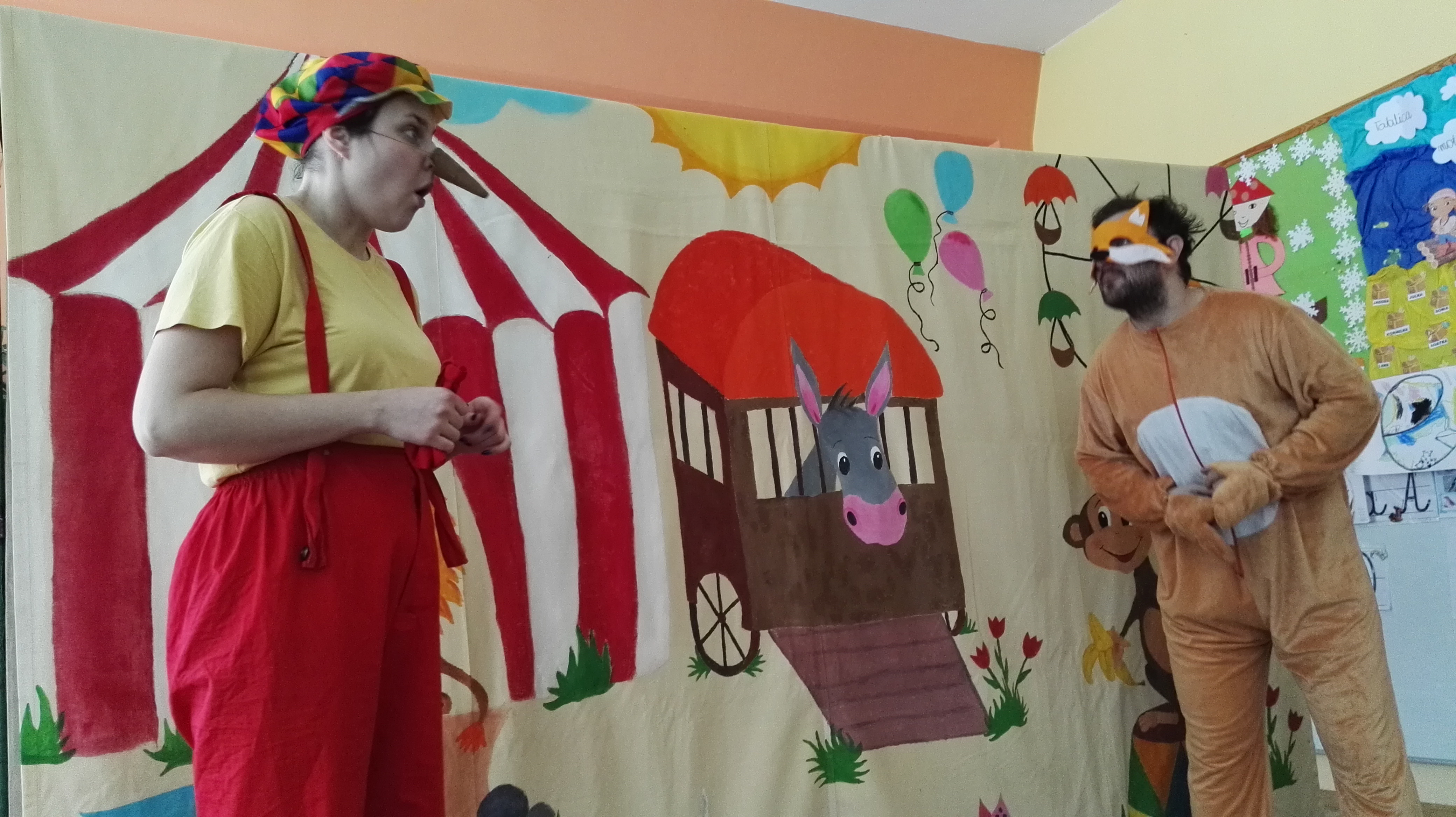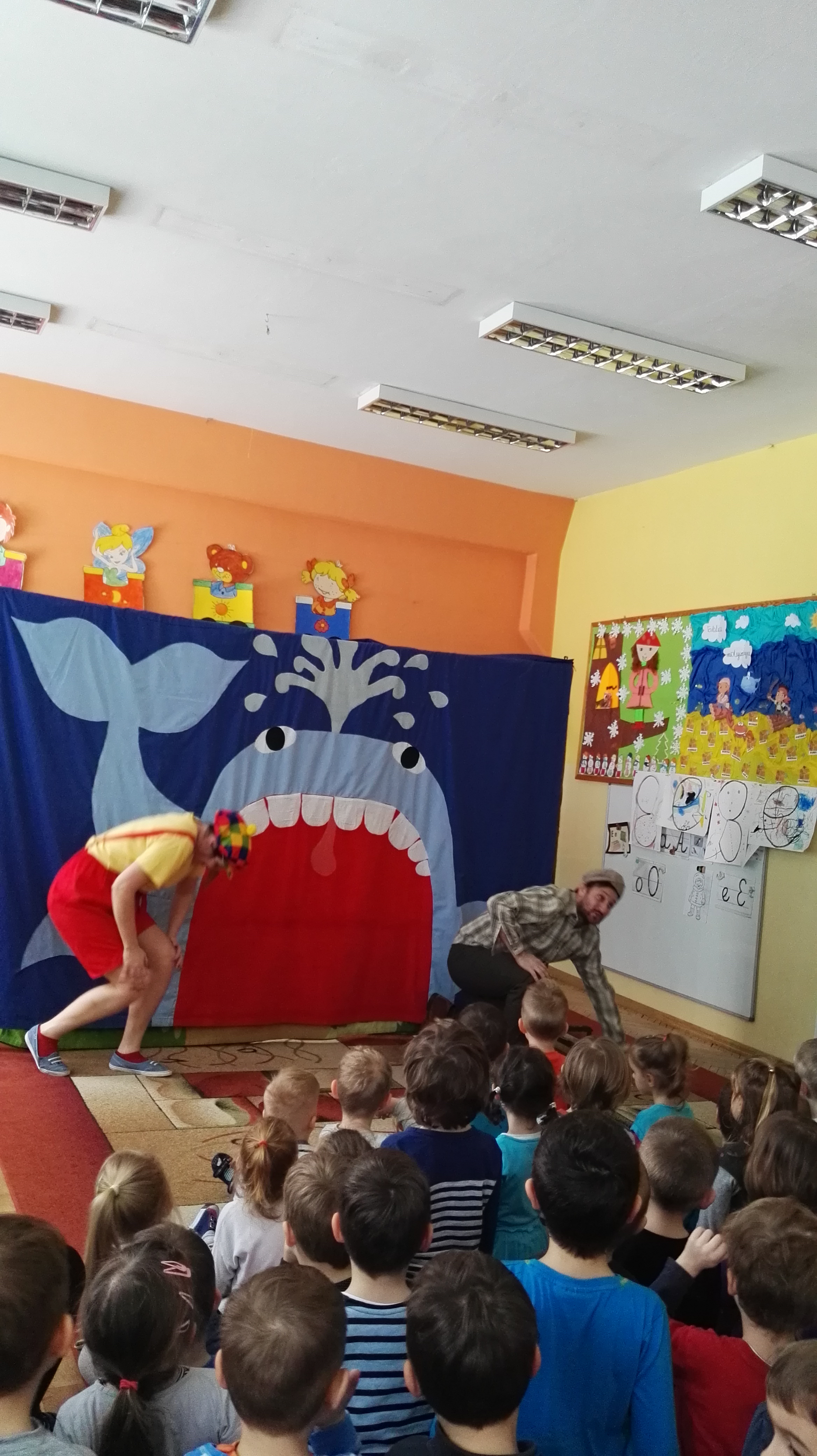 W dniu 19.01.2017 roku gościliśmy w naszym przedszkolu aktorów z teatru dla dzieci : „Blaszany Bębenek”. Wystąpili oni w spektaklu teatralnym pt. „Pinokio”. Wychowankowie ze wszystkich grup wiekowych oglądali teatrzyk z uwagą i zainteresowaniem. Na koniec wraz z aktorami uczestniczyli w zabawie ruchowej do muzyki. Oglądanie teatrzyków dla dzieci rozwija zainteresowania czytelnicze najmłodszych, pozwala na wdrażanie dzieci do właściwych zachowań podczas odbioru sztuki, jak również integruje środowisko przedszkolne.