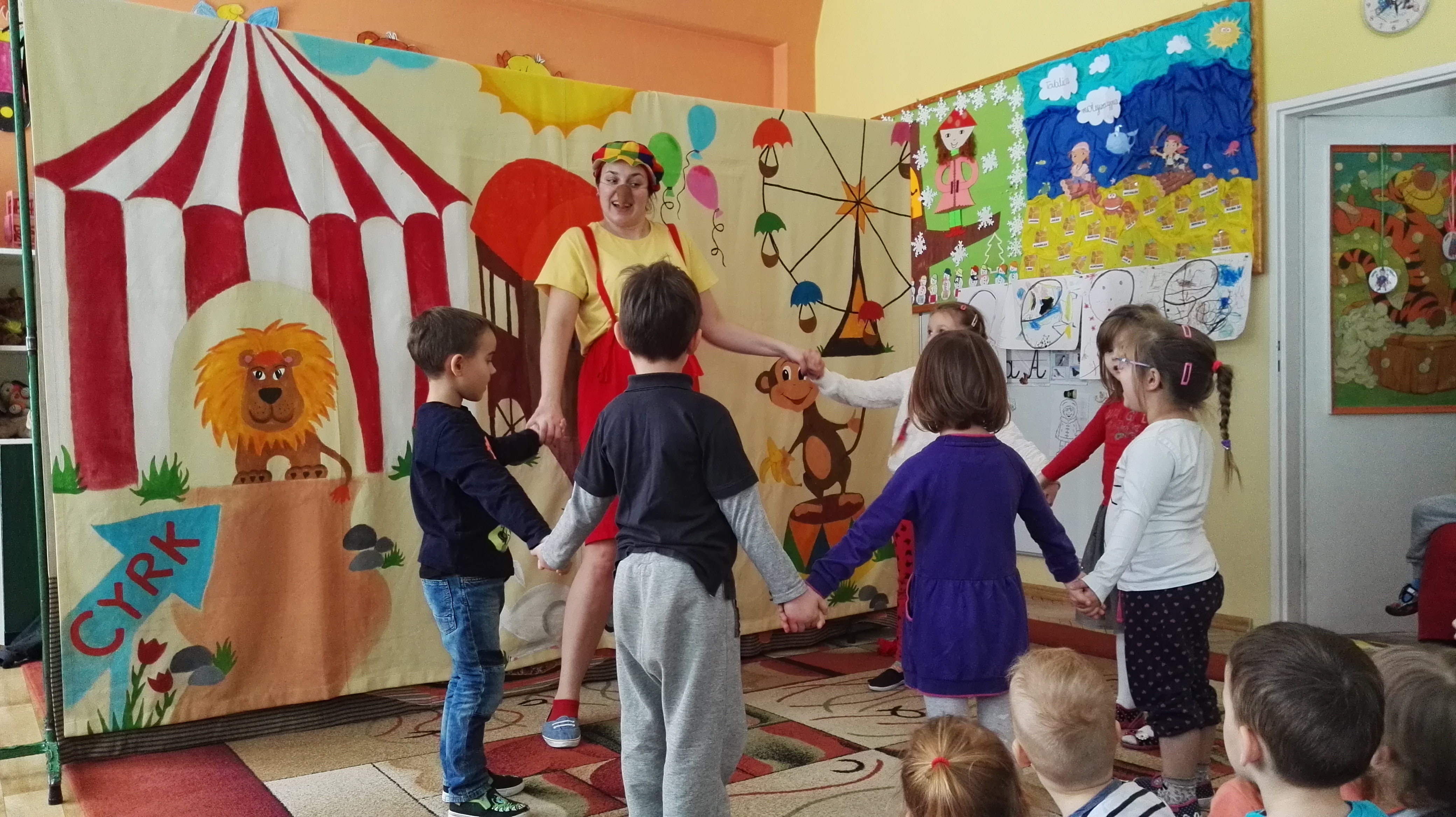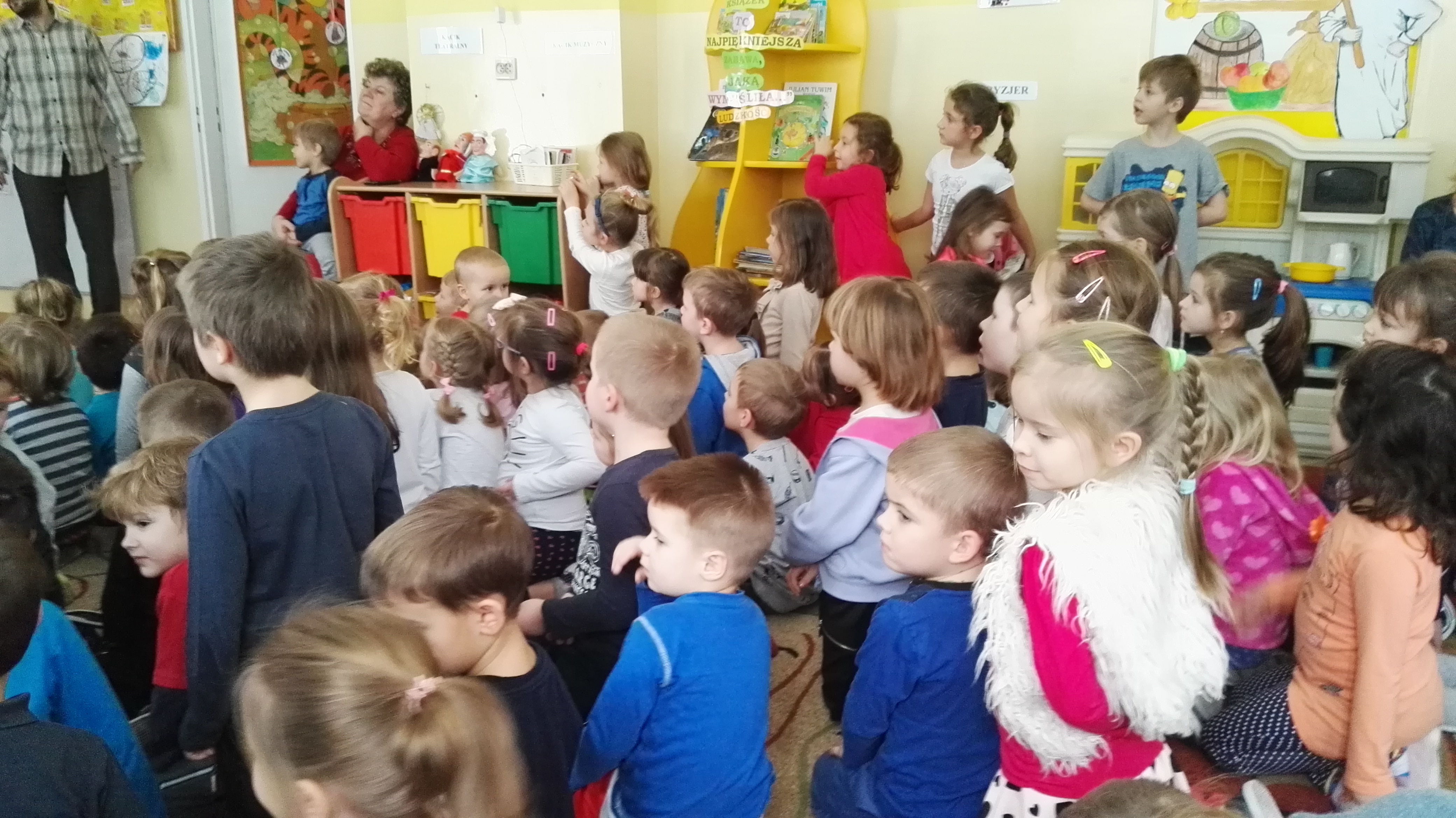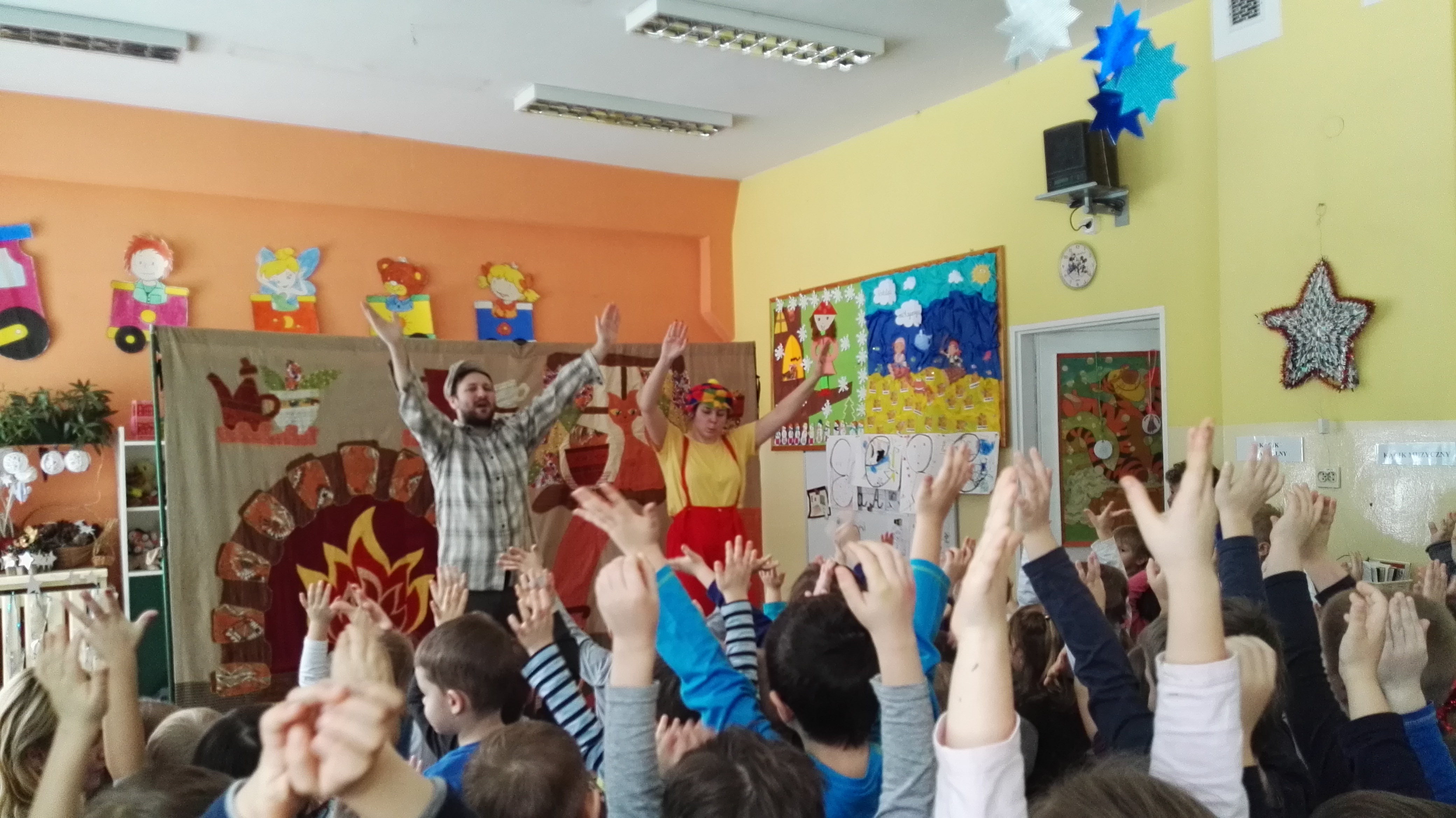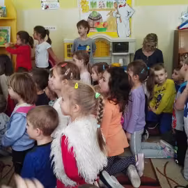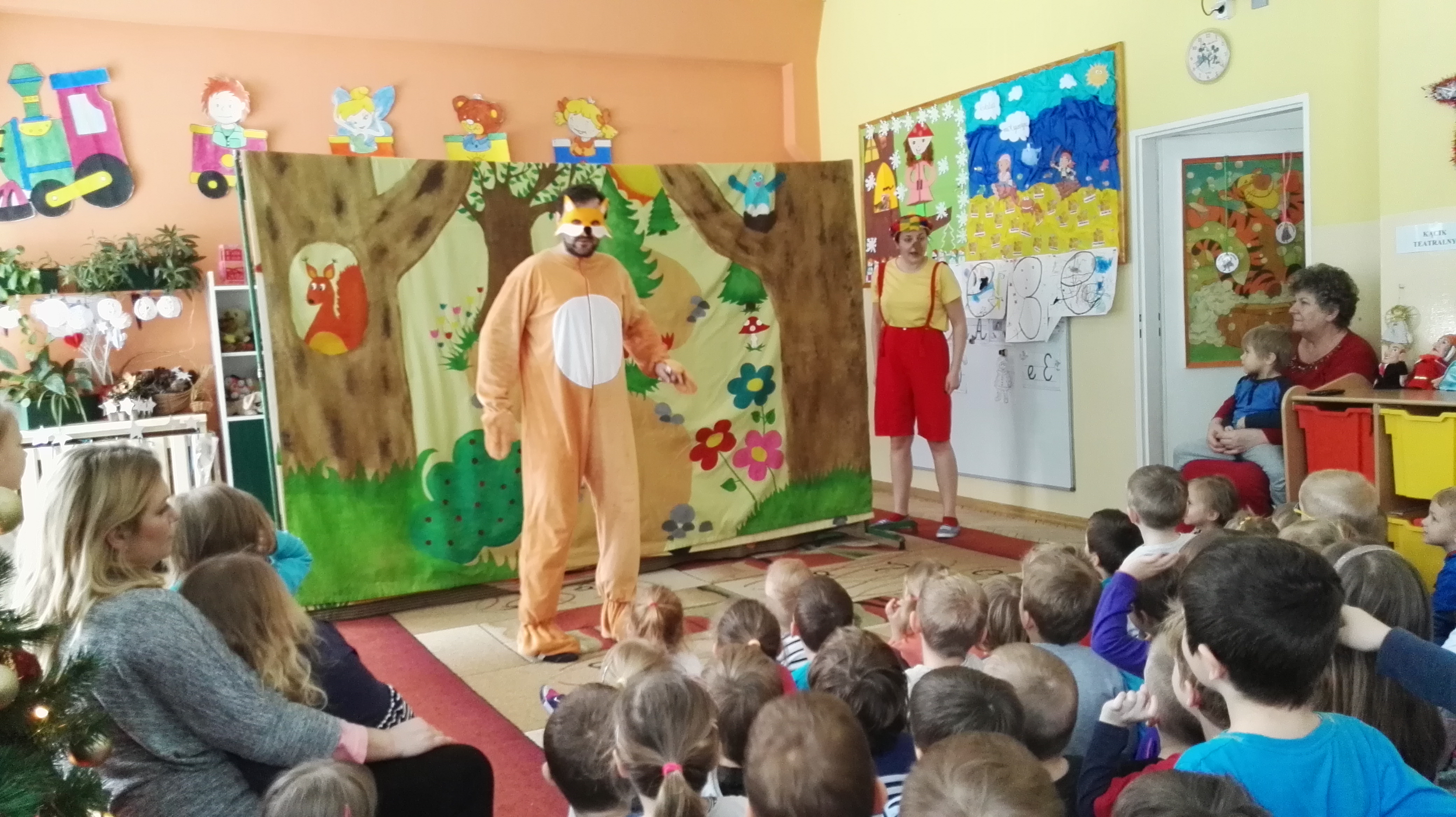 W dniu 19.01.2017 roku gościliśmy w naszym przedszkolu aktorów z teatru dla dzieci : „Blaszany Bębenek”. Wystąpili oni w spektaklu teatralnym pt. „Pinokio”. Wychowankowie ze wszystkich grup wiekowych oglądali teatrzyk z uwagą i zainteresowaniem. Na koniec wraz z aktorami uczestniczyli w zabawie ruchowej do muzyki. Oglądanie teatrzyków dla dzieci rozwija zainteresowania czytelnicze najmłodszych, pozwala na wdrażanie dzieci do właściwych zachowań podczas odbioru sztuki, jak również integruje środowisko przedszkolne.