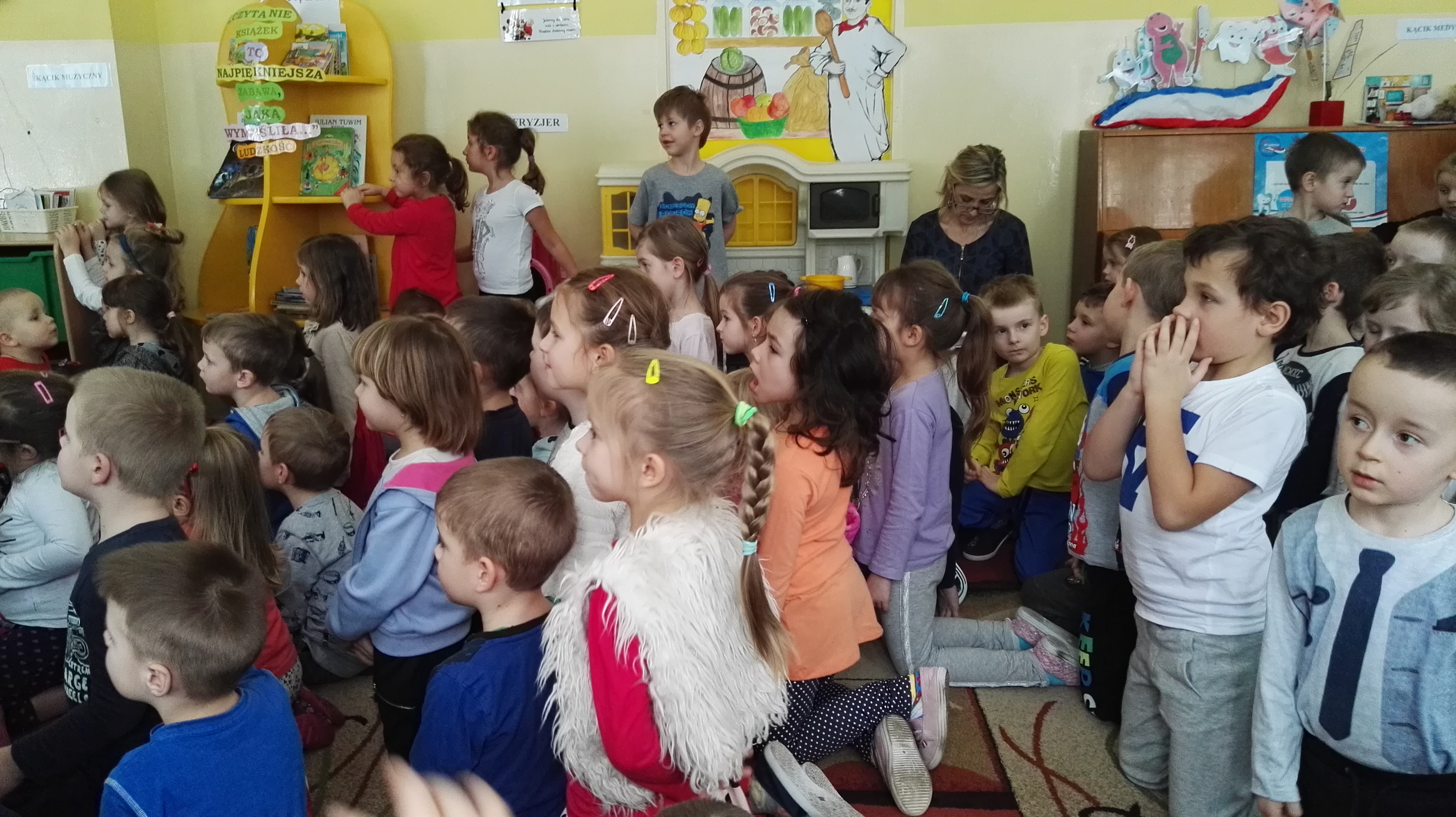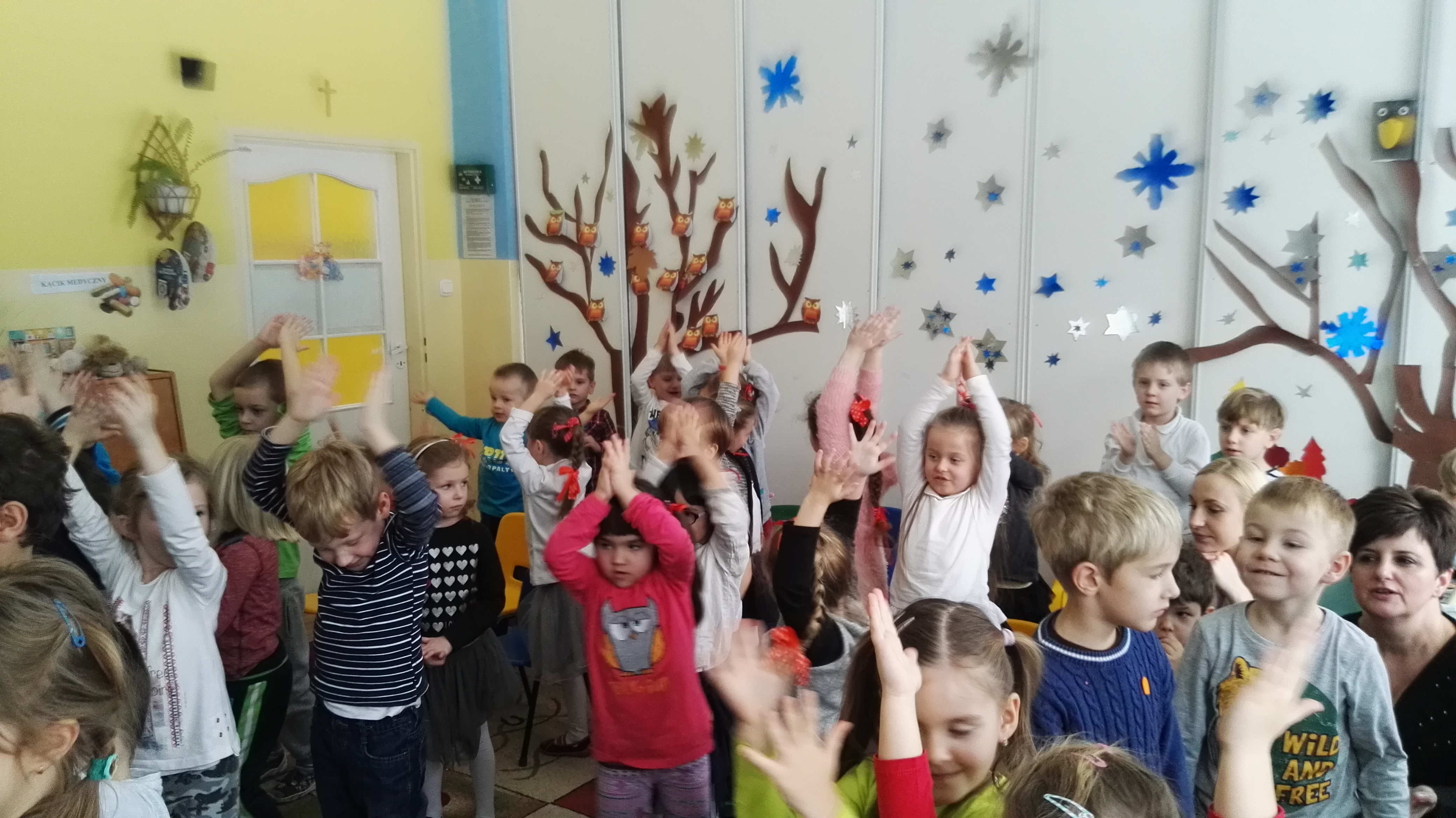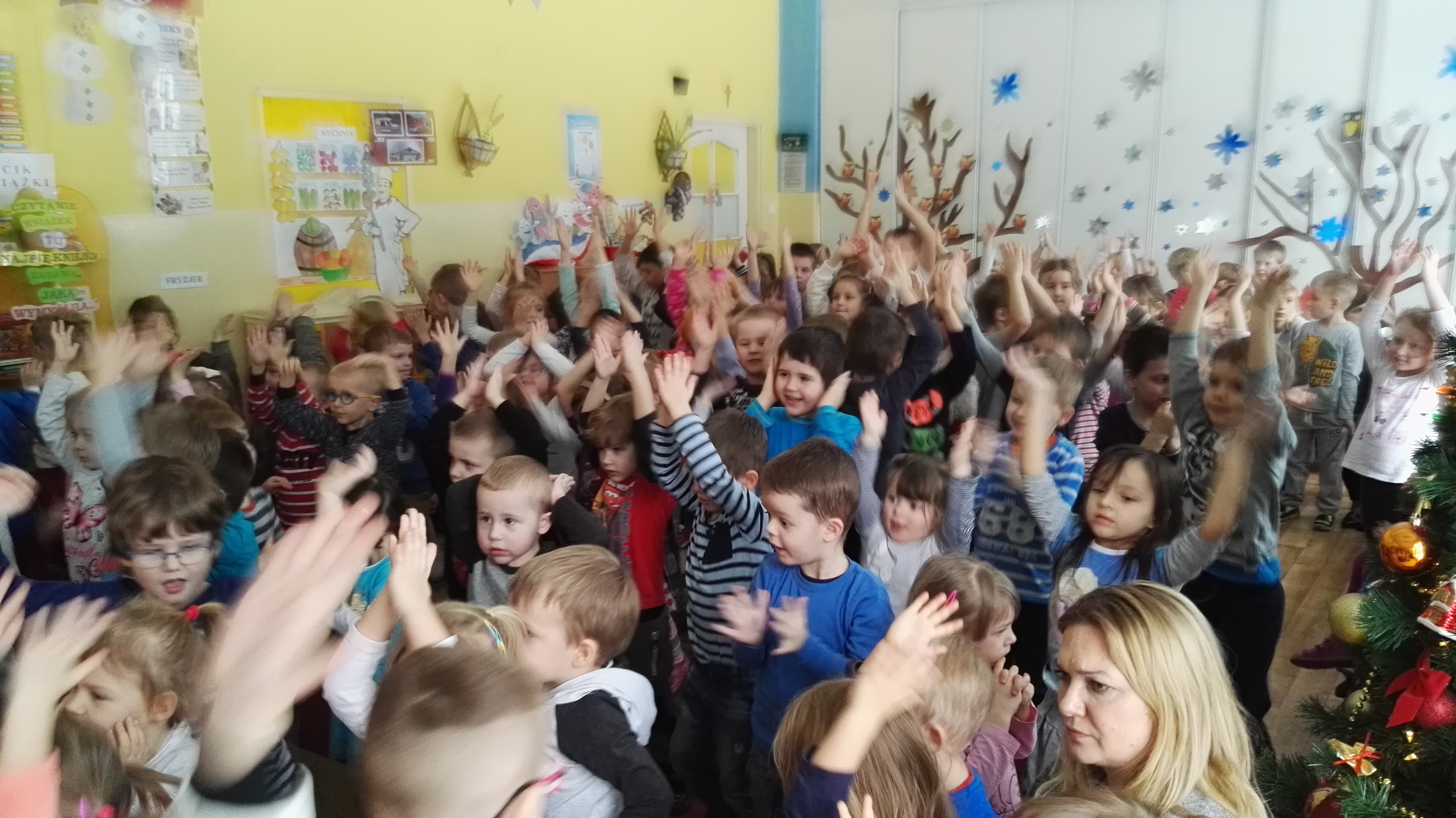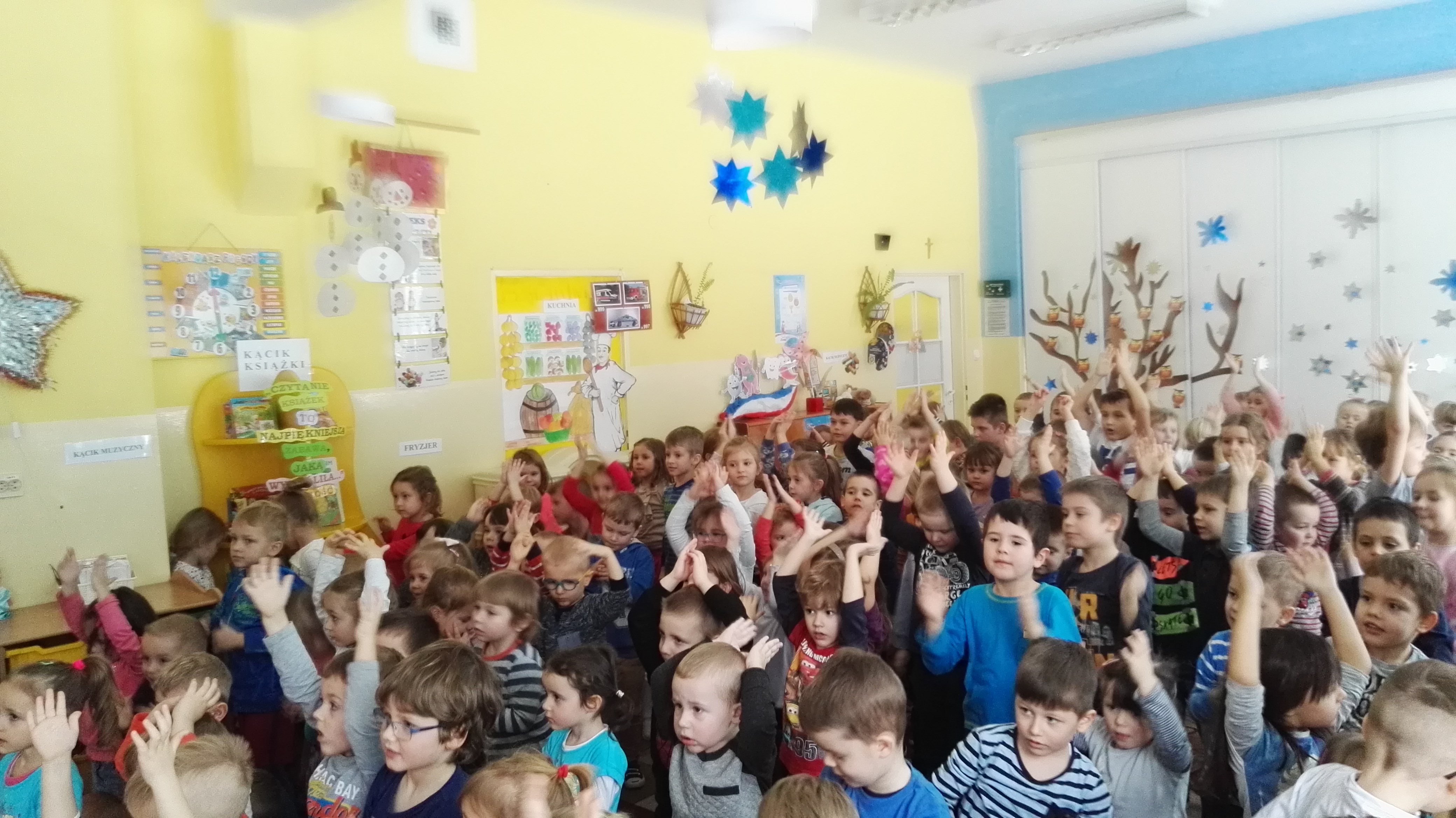 W dniu 19.01.2017 roku gościliśmy w naszym przedszkolu aktorów z teatru dla dzieci : „Blaszany Bębenek”. Wystąpili oni w spektaklu teatralnym pt. „Pinokio”. Wychowankowie ze wszystkich grup wiekowych oglądali teatrzyk z uwagą i zainteresowaniem. Na koniec wraz z aktorami uczestniczyli w zabawie ruchowej do muzyki. Oglądanie teatrzyków dla dzieci rozwija zainteresowania czytelnicze najmłodszych, pozwala na wdrażanie dzieci do właściwych zachowań podczas odbioru sztuki, jak również integruje środowisko przedszkolne.