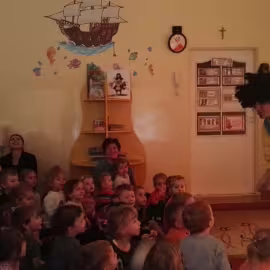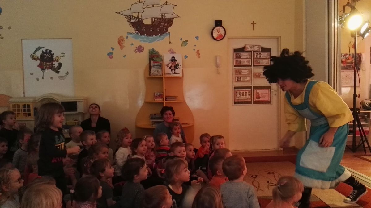 15 listopada nasze przedszkolaki obejrzały spektakl : "MÓWIĘ NIE WSZYSTKIEMU CO ZŁE" w wykonianiu aktorów agencji artystycznej "Patigo". Przedstawienie miało na celu uświadomienie naszym milusińskim kilku niechlubnych cech z jakimi często mamy do czynienia. Skarżenie, lenistwo, przechwalanie się, to tylko niektóre przykłady, jakie przewijały się podczas spektaklu. Dzieci dostały lekcję prawidłowego zachowania się w codziennym życiu oraz przestrogę jakiego zachowania należy unikać.
