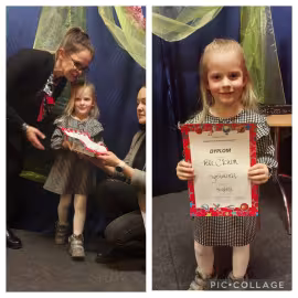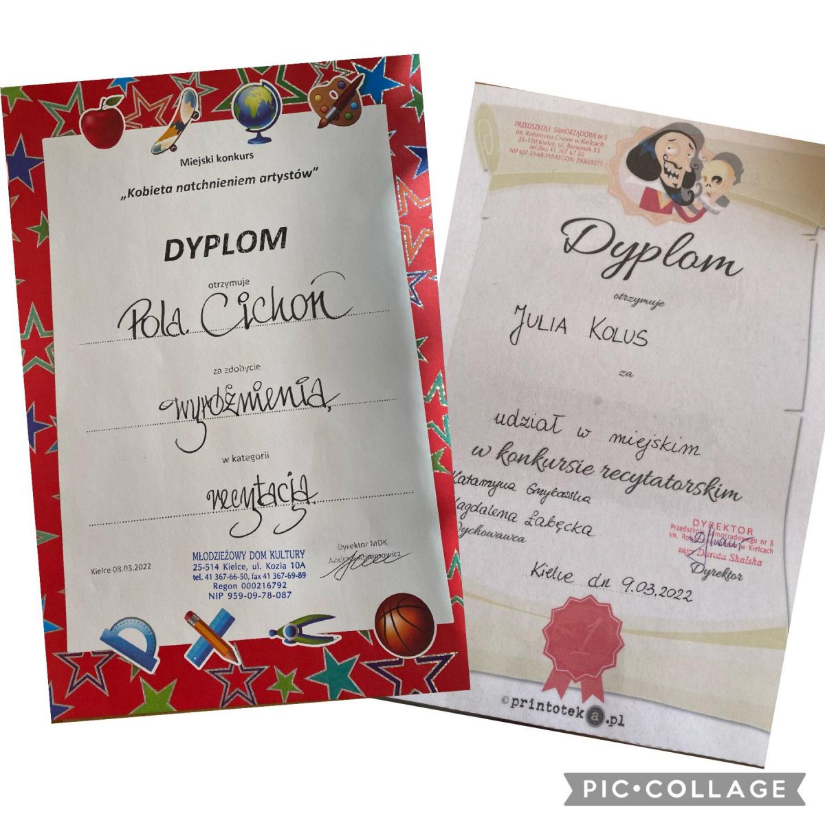 Pola Cichoń z grupy IV otrzymała wyróżnienie w Miejskim Konkursie „ Kobieta natchnieniem artystów” recytując pięknie wiersz na koncercie finałowym w MDKu - jako najmłodszy uczestnik, skradła serca wszystkich widzów