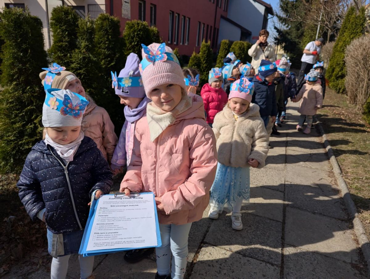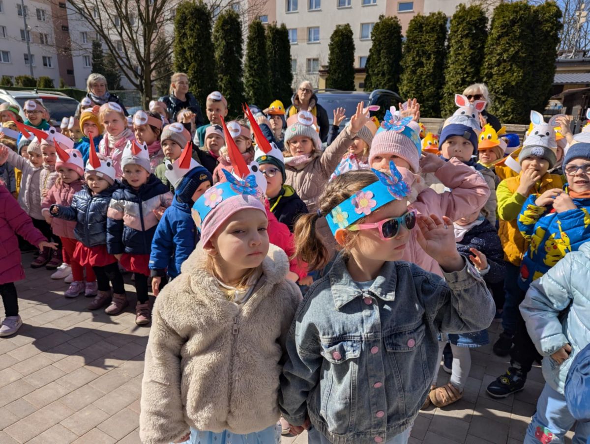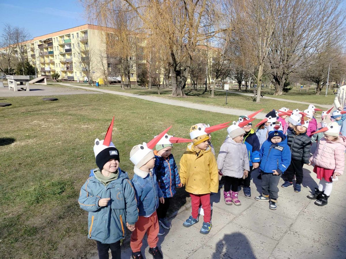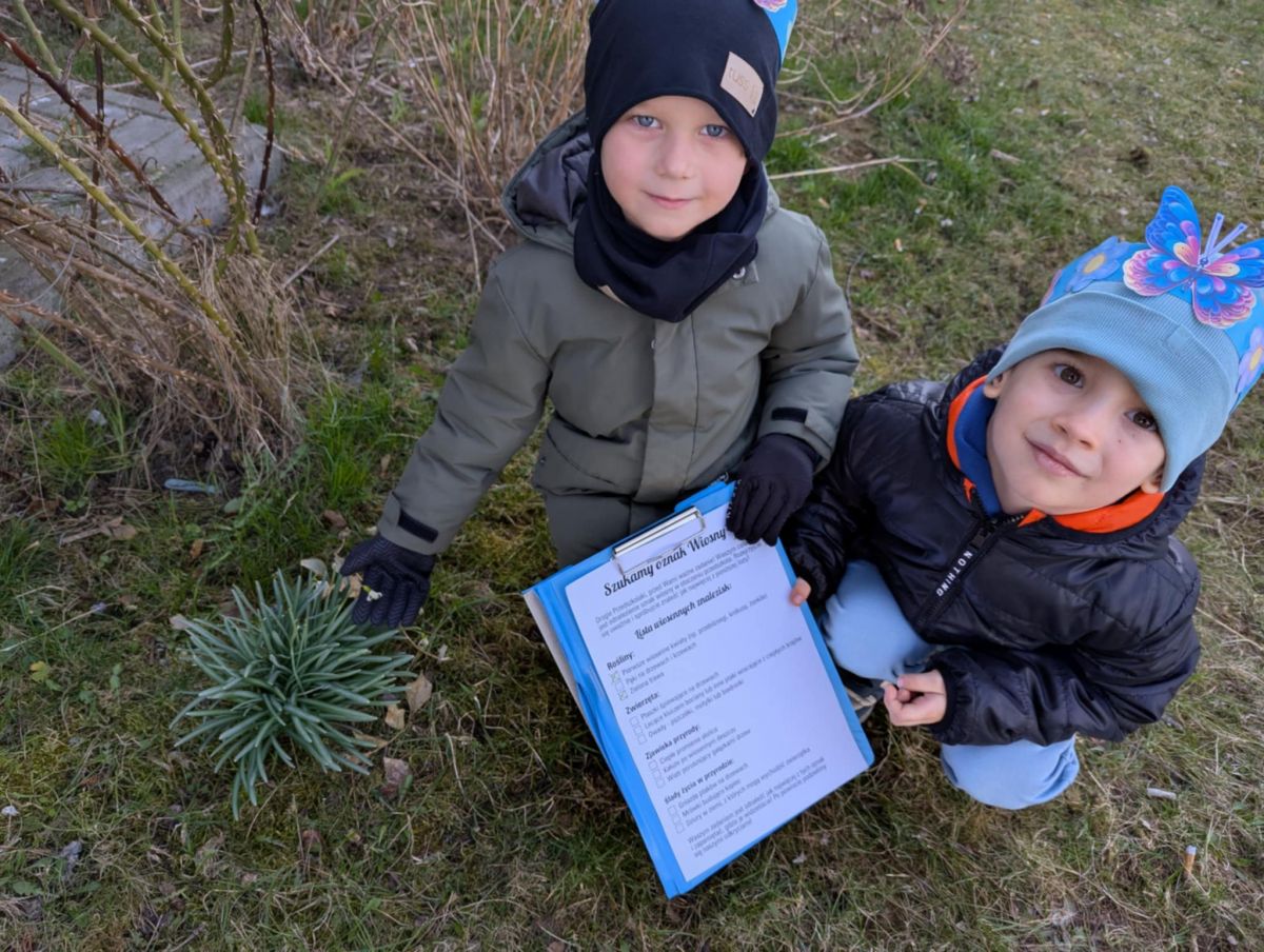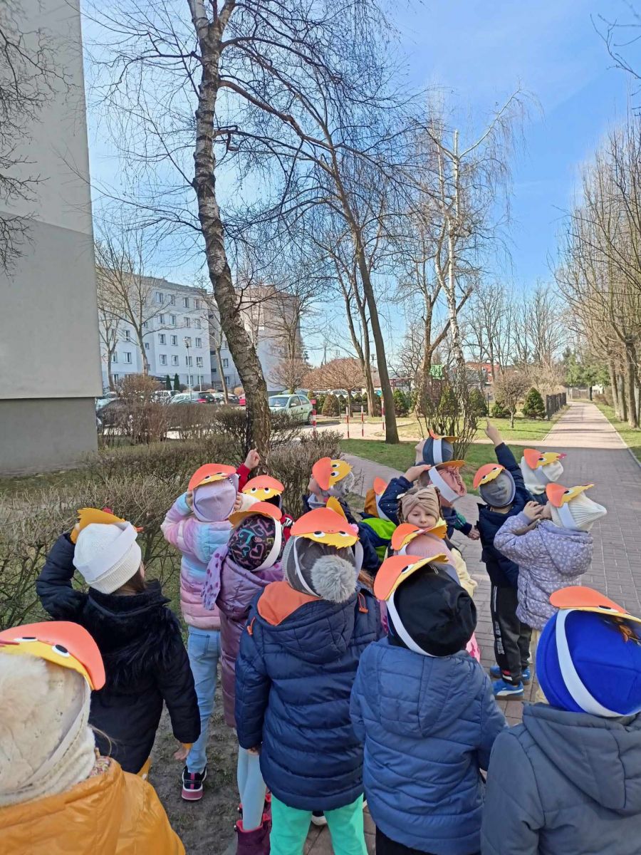 Cała nasza przedszkolna społeczność 21 marca ruszyła na wyprawę w poszukiwaniu WIOSNY. Dzieci w grupach otrzymały zadania, które odznaczały na specjalnej liście. Po wiosennej misji w terenie - uznaliśmy, że wszystkie znaki na ziemi i niebie świadczą o tym, że wiosna już jest z nami, więc przedszkolaki wesoło odśpiewały "wiosenny hymn".
