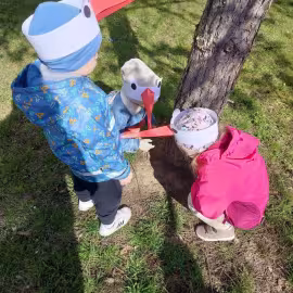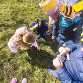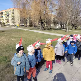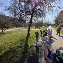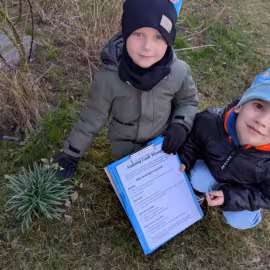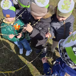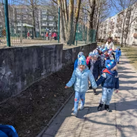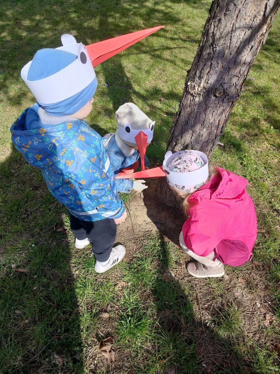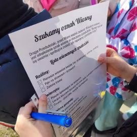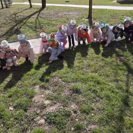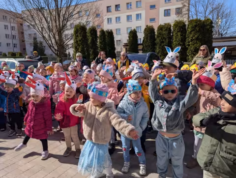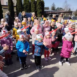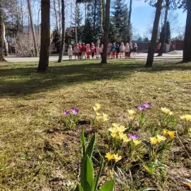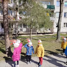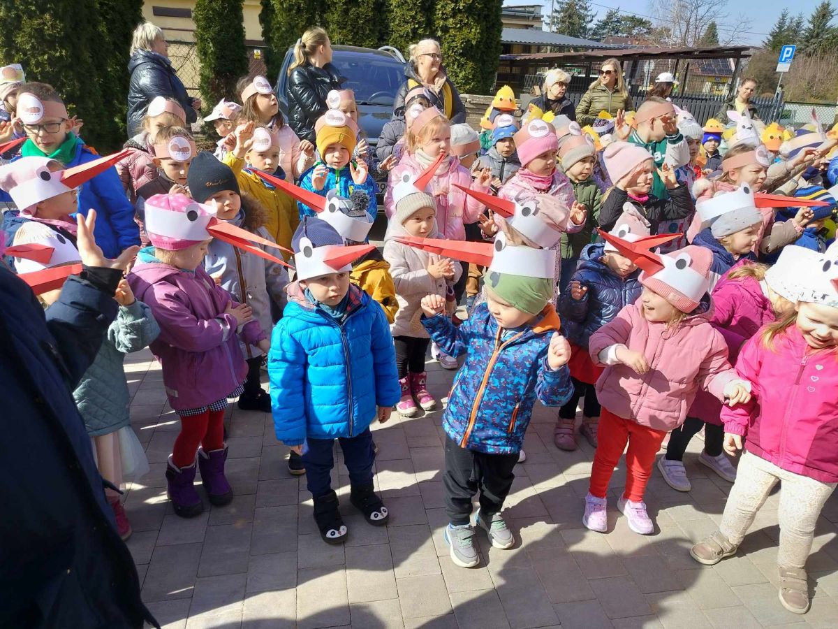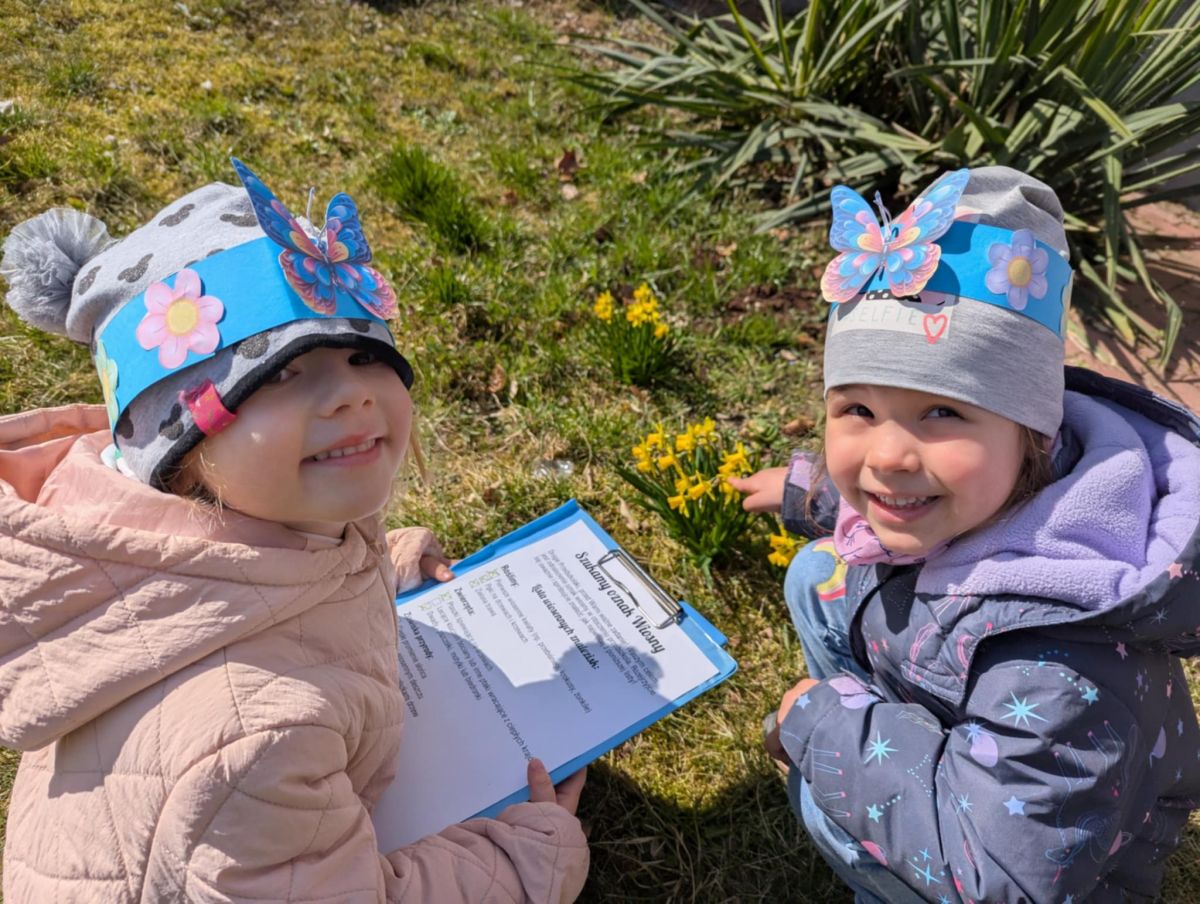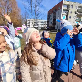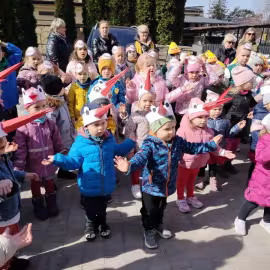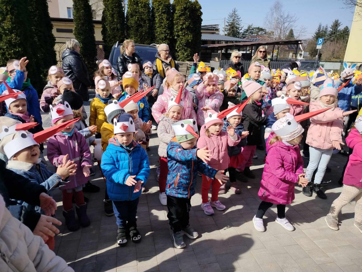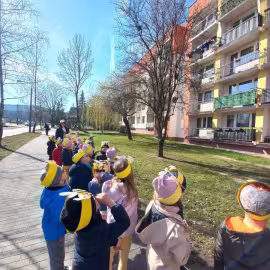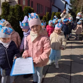 Cała nasza przedszkolna społeczność 21 marca ruszyła na wyprawę w poszukiwaniu WIOSNY. Dzieci w grupach otrzymały zadania, które odznaczały na specjalnej liście. Po wiosennej misji w terenie - uznaliśmy, że wszystkie znaki na ziemi i niebie świadczą o tym, że wiosna już jest z nami, więc przedszkolaki wesoło odśpiewały "wiosenny hymn".