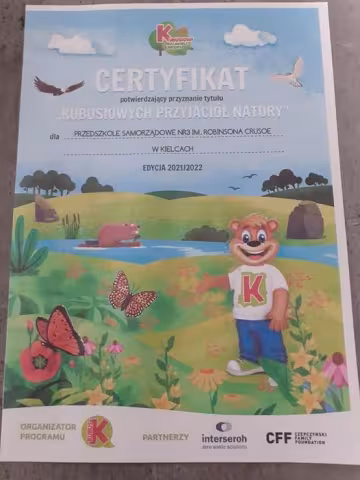 Nasze przedszkole otrzymało certyfikat potwierdzający przyznanie tytułu