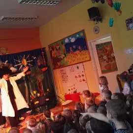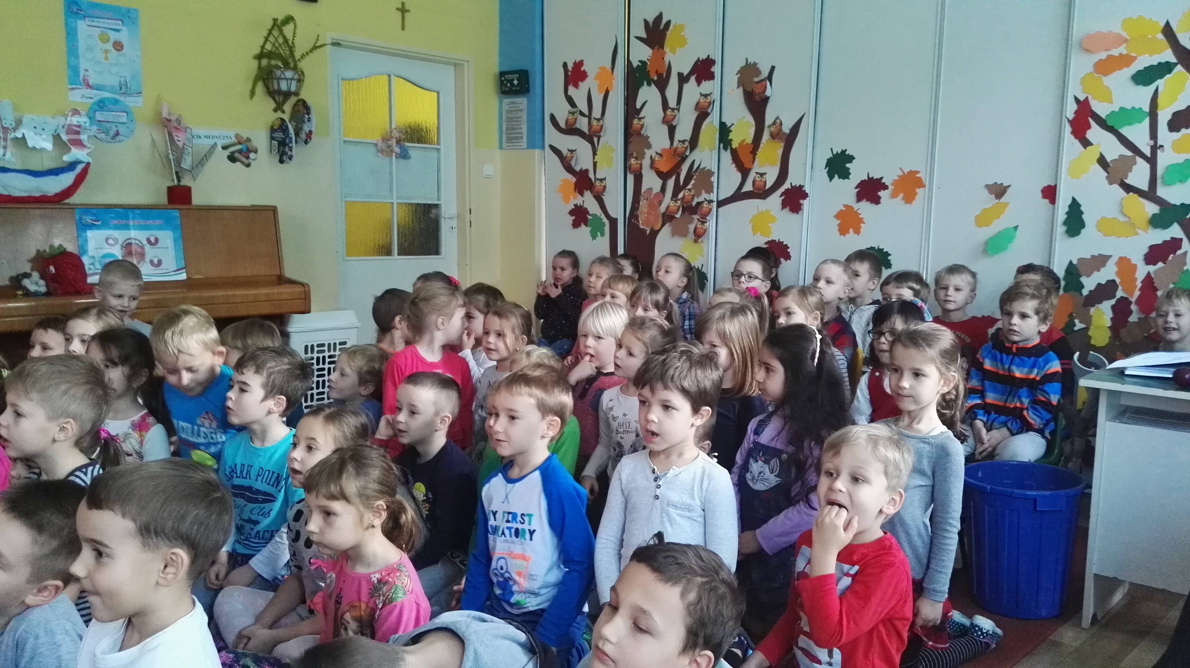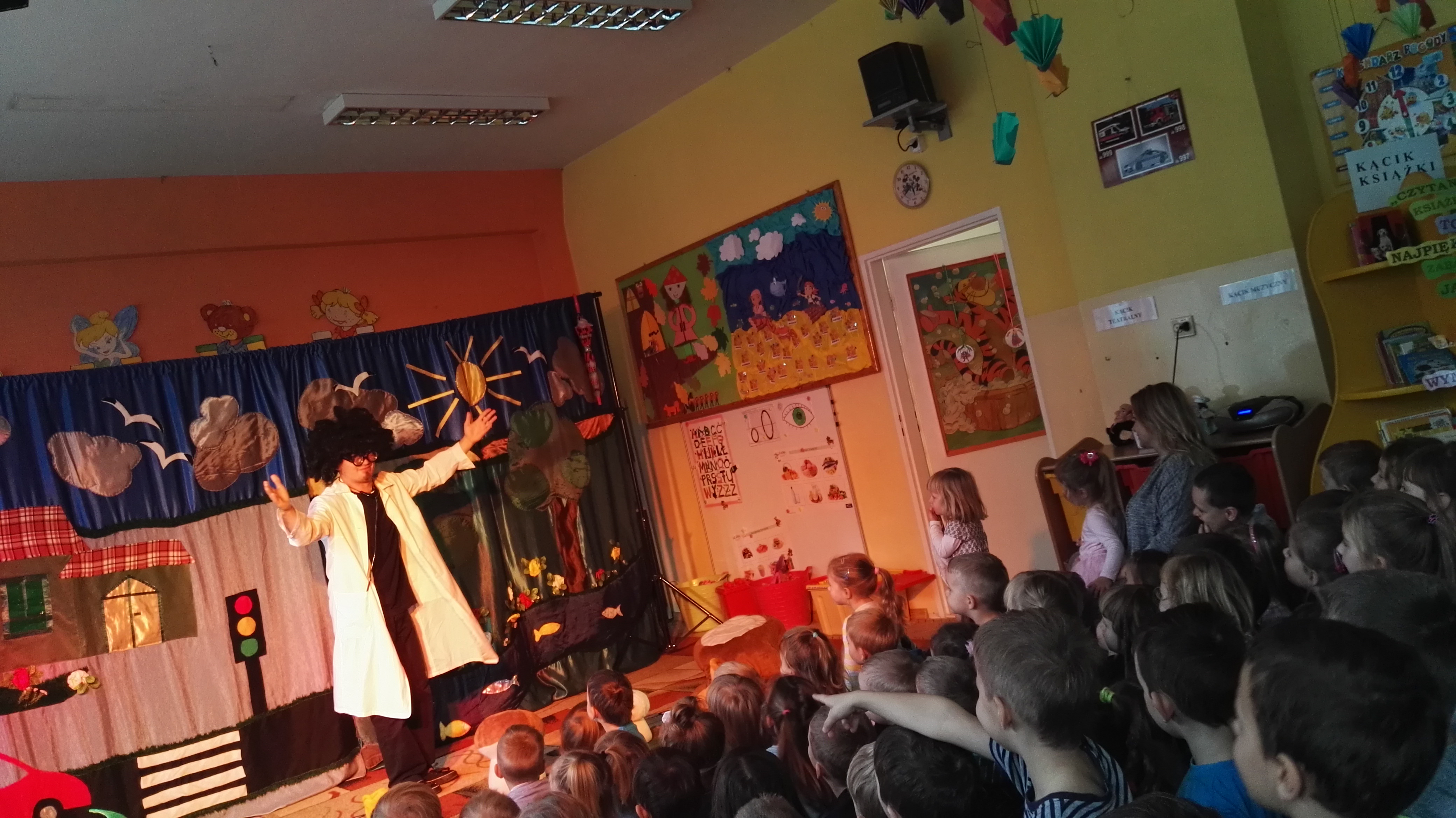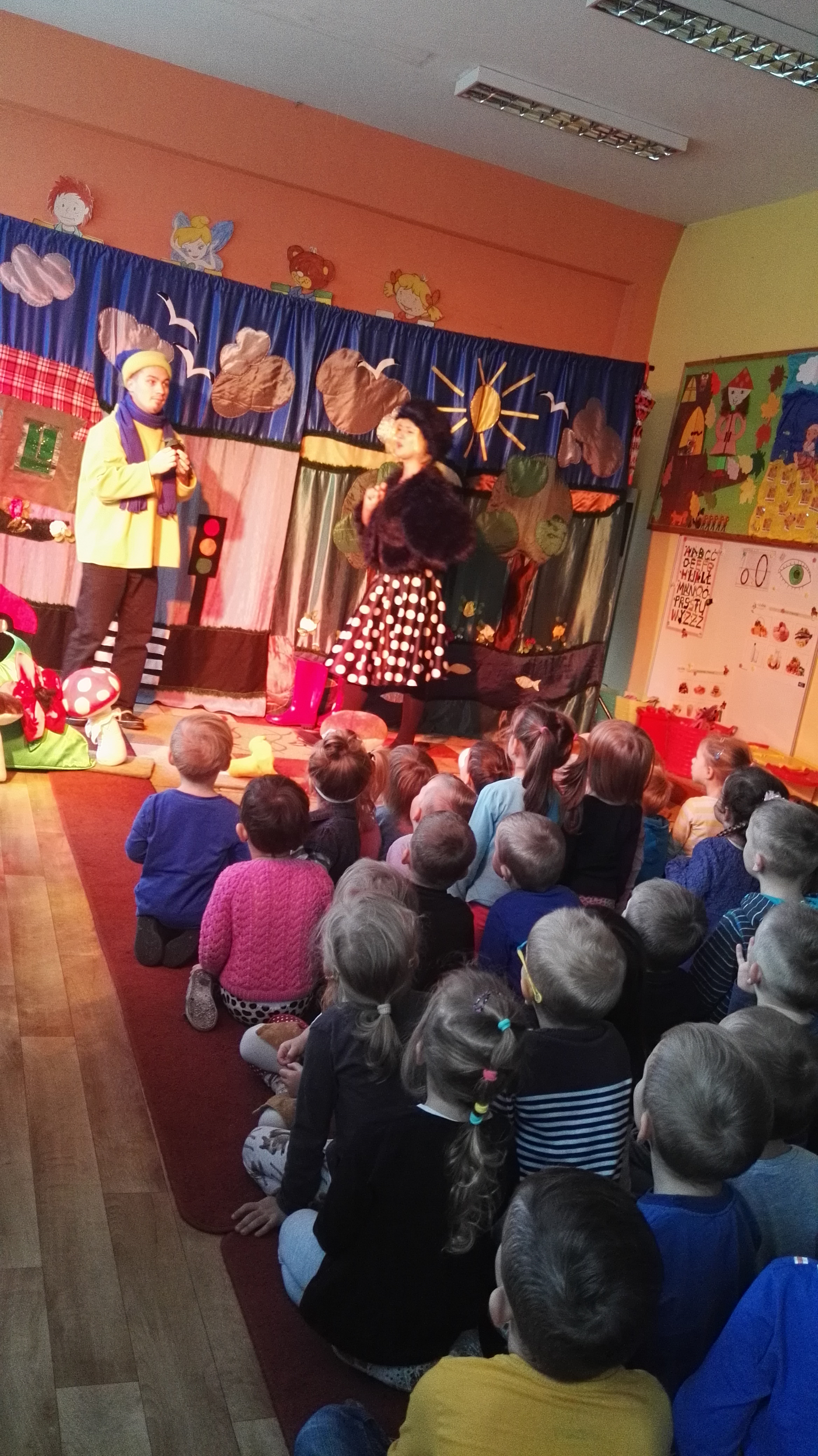 Dnia 23.11.2016 r. gościliśmy w naszym przedszkolu teatrzyk dla dzieci pt. „Wielkie wydarzenie” w wykonaniu aktorów. W formie zabawy przedszkolaki zapoznały się z podstawowymi zasadami bezpieczeństwa dotyczącymi ich zdrowia :