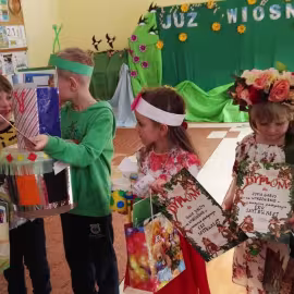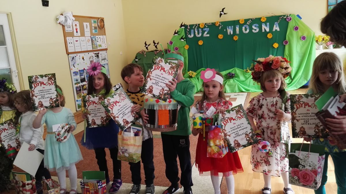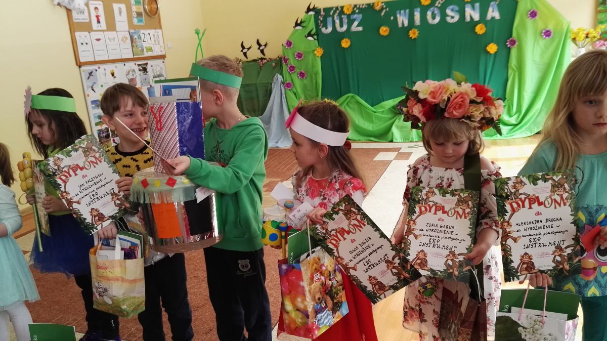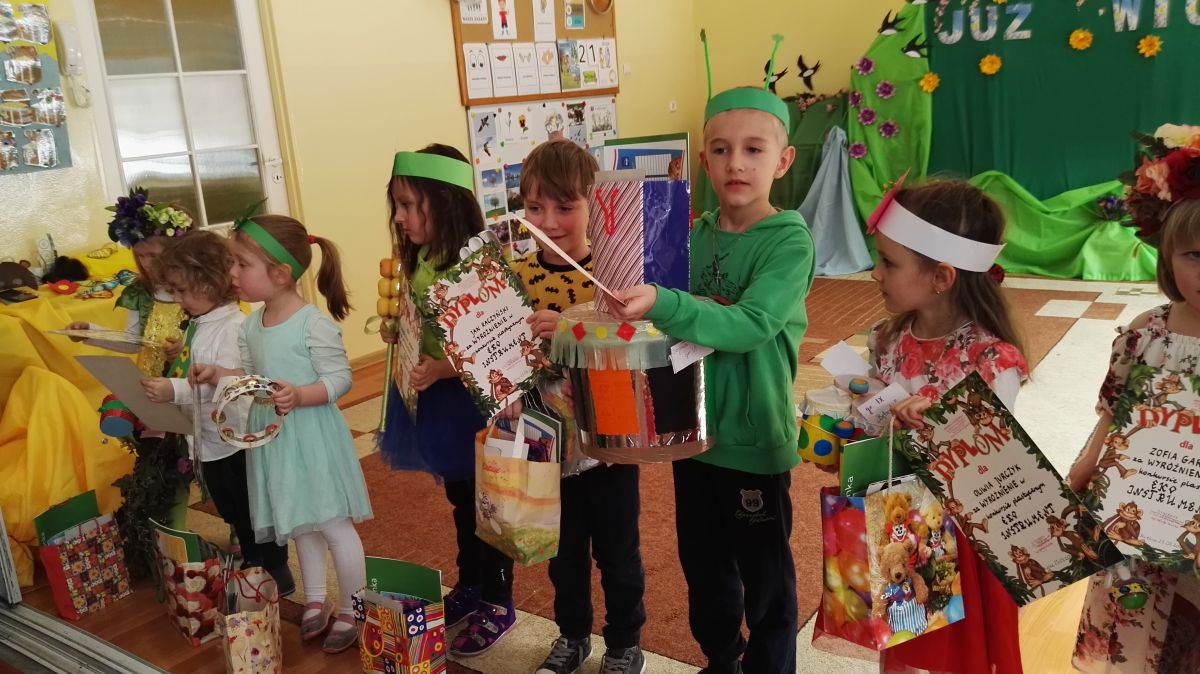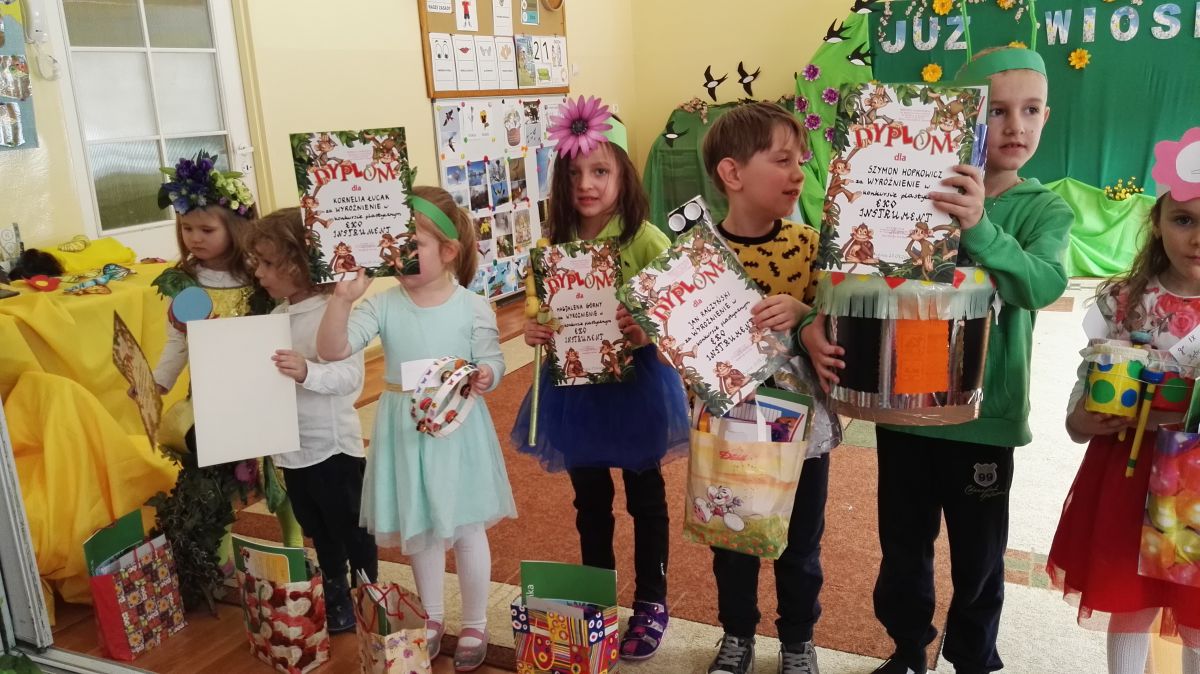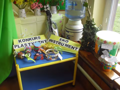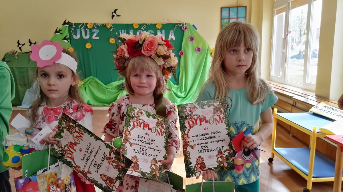 Podczas uroczystego powitania wiosny odbyło się rozstrzygnięcie konkursu plastycznego „Eko instrument”. Konkurs przeznaczony był dla dzieci uczęszczających do naszego przedszkola. Zadaniem konkursowym było wykonanie dowolną techniką plastyczną przestrzennego ekologicznego instrumentu. Każda grupa zgłosiła do konkursu 1 pracę wyłonioną spośród prac wykonanych w grupie.