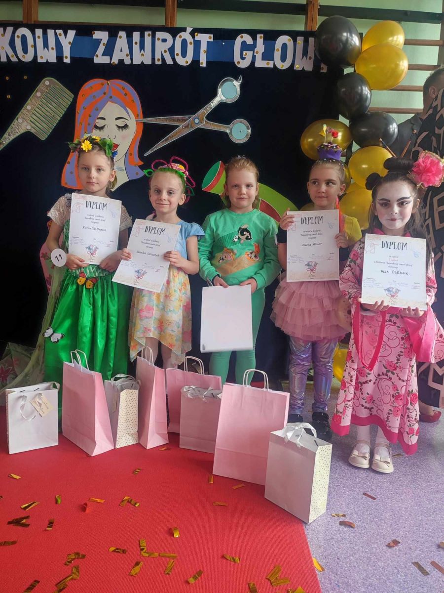 W Zespole Szkolno-Przedszkolnym nr 1 w Kielcach odbył się konkurs “Barwinkowy Zawrót Głowy”. Zadaniem było stworzenie fryzury oraz zaprezentowanie jej przed jury. Reprezentantkami naszego przedszkola były: Kornelia z gr. V, Łucja z gr. VI, Nikola z gr. VII, Nela z gr. VIII oraz Blanka z gr. IX. Każda dziewczynka wyglądała wspaniałe w pięknej, kolorowej i dopracowanej w najmniejszych szczegółach stylizacji. Serce jury skradła Nela z gr. VIII, tym samym zdobywając 1. miejsce. Gratulujemy wygranej!