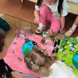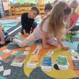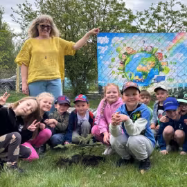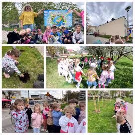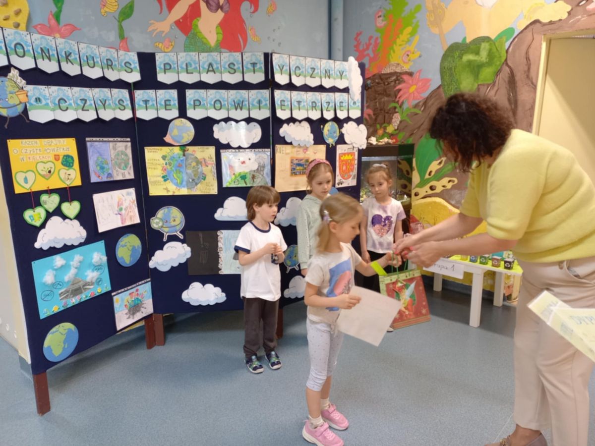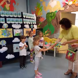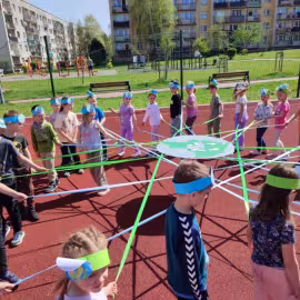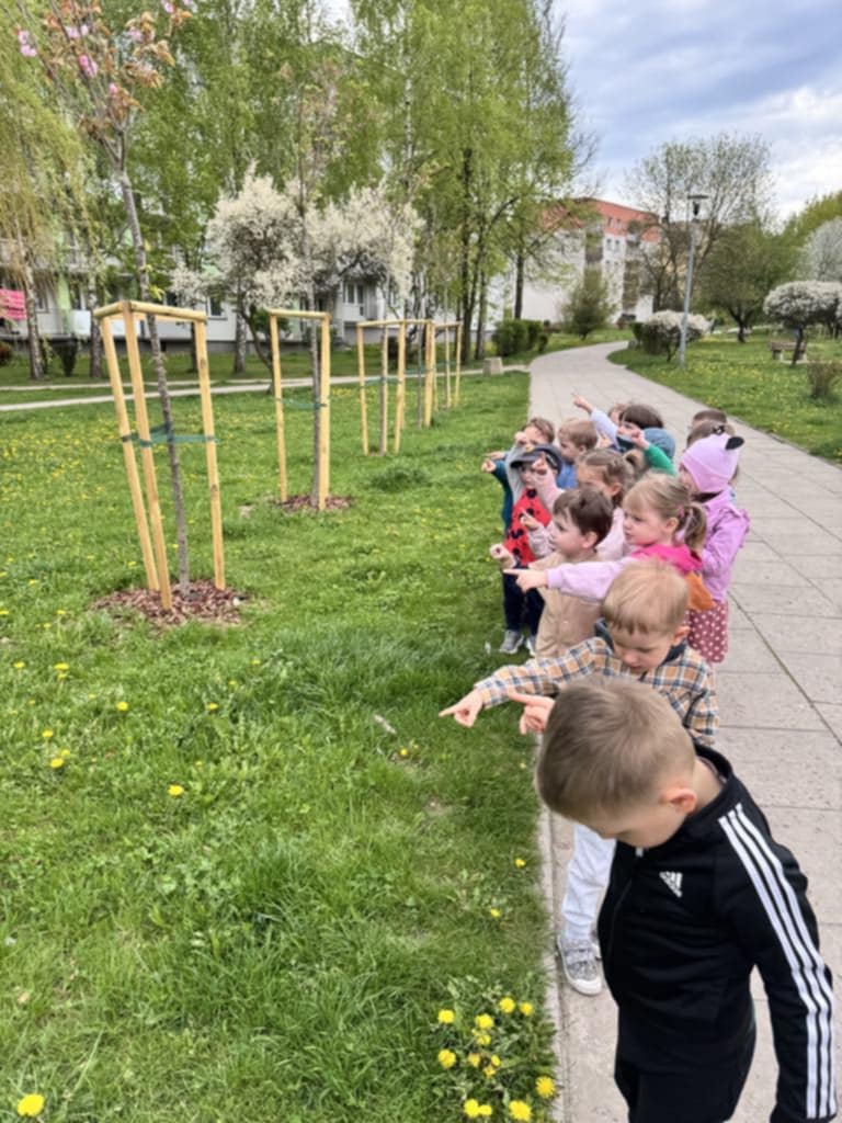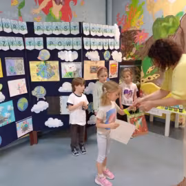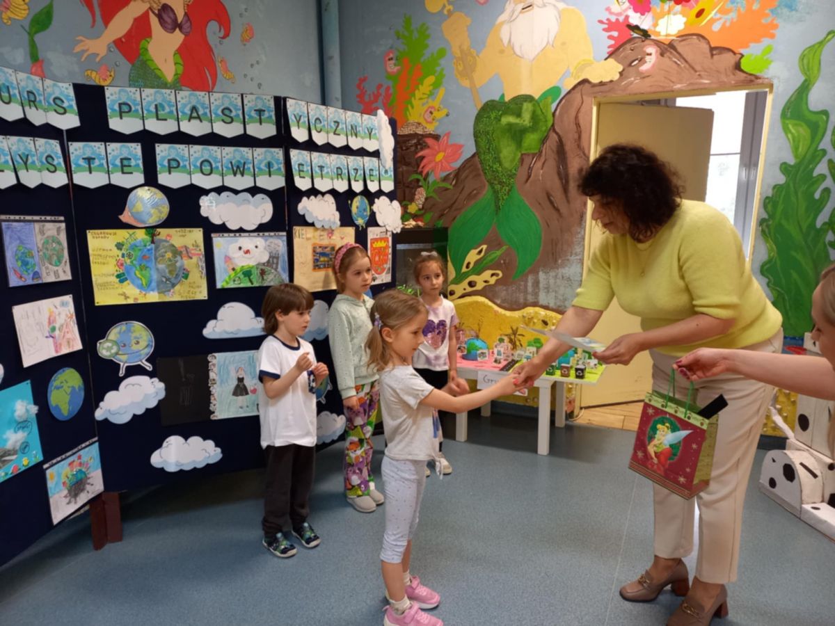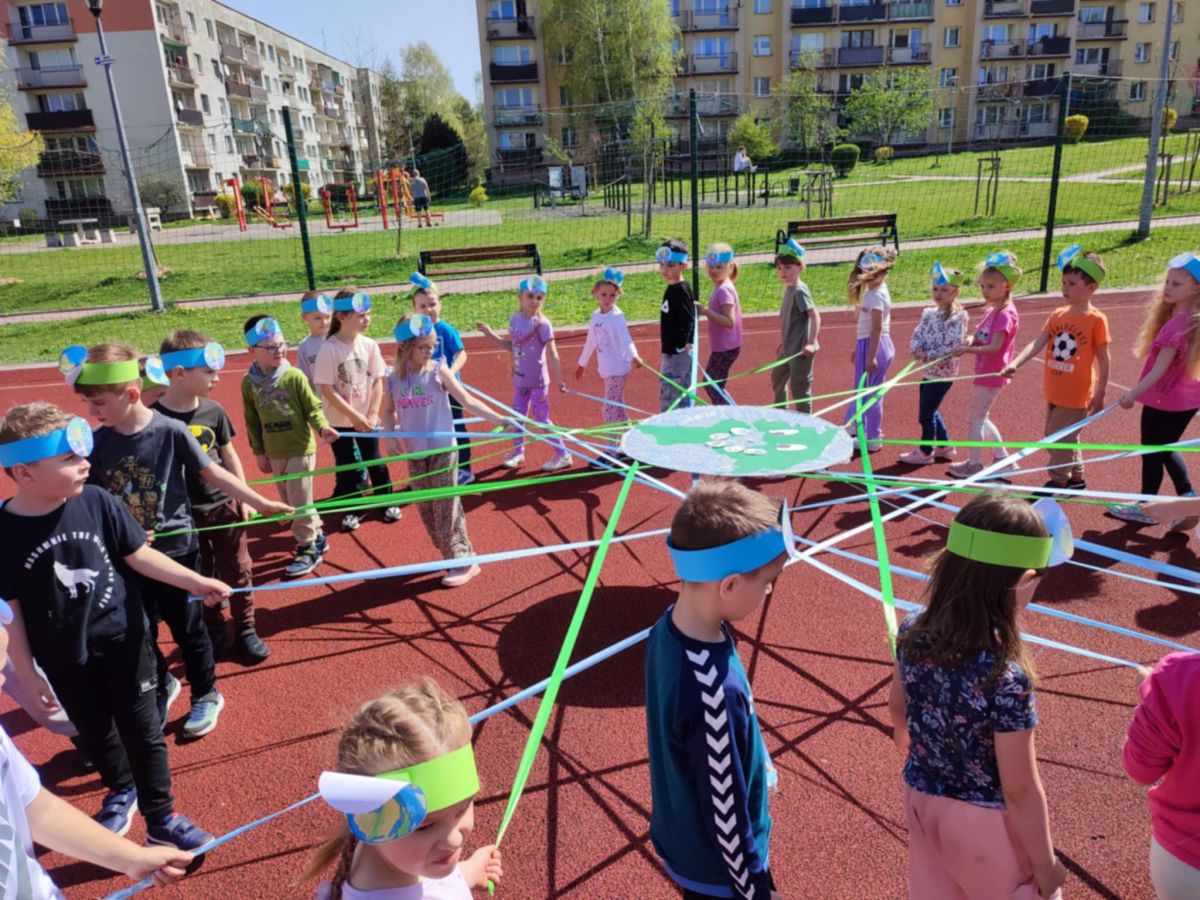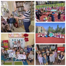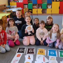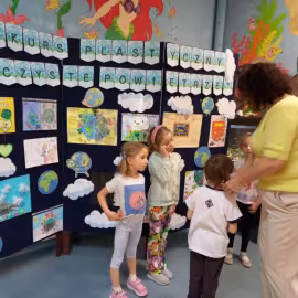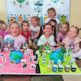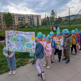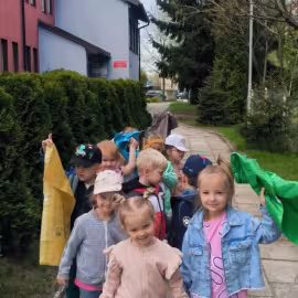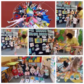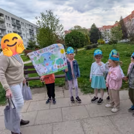 W ramach działań na rzecz ochrony środowiska, nasze przedszkole zorganizowało szereg aktywności promujących czyste powietrze i ekologiczną postawę wśród dzieci i ich rodzin. Wśród najważniejszych wydarzeń znalazły się: • Konkursy plastyczne i literackie, m.in. „Czyste powietrze w Kielcach” oraz „Apel dzieci w obronie czystego powietrza”, które wzbudziły wielkie zainteresowanie wśród przedszkolaków. • Happeningi i przemarsze na osiedlu, podczas których dzieci rozdawały mieszkańcom ulotki o ochronie powietrza oraz prezentowały ekologiczne hasła. • Akcje edukacyjne, w tym spacery po osiedlu, na których dzieci zapoznawały się z przyczynami zanieczyszczenia powietrza i sposobami jego ochrony. • Działania praktyczne, jak sadzenie drzew na placu przedszkolnym, uczące dzieci, jak rośliny wpływają na jakość powietrza. • Zajęcia z wykorzystaniem nowoczesnych technologii (TIK), podczas których dzieci dowiadywały się, jak codziennymi wyborami mogą poprawić stan środowiska. • Akcja artystyczna na boisku, podczas której dzieci wykonały emblematy ekologiczne, zatańczyły i zaśpiewały piosenkę „Ekologia”. Zrealizowane projekty mają na celu nie tylko edukację najmłodszych, ale także kształtowanie w nich postaw odpowiedzialnych za naszą planetę i jej przyszłość.