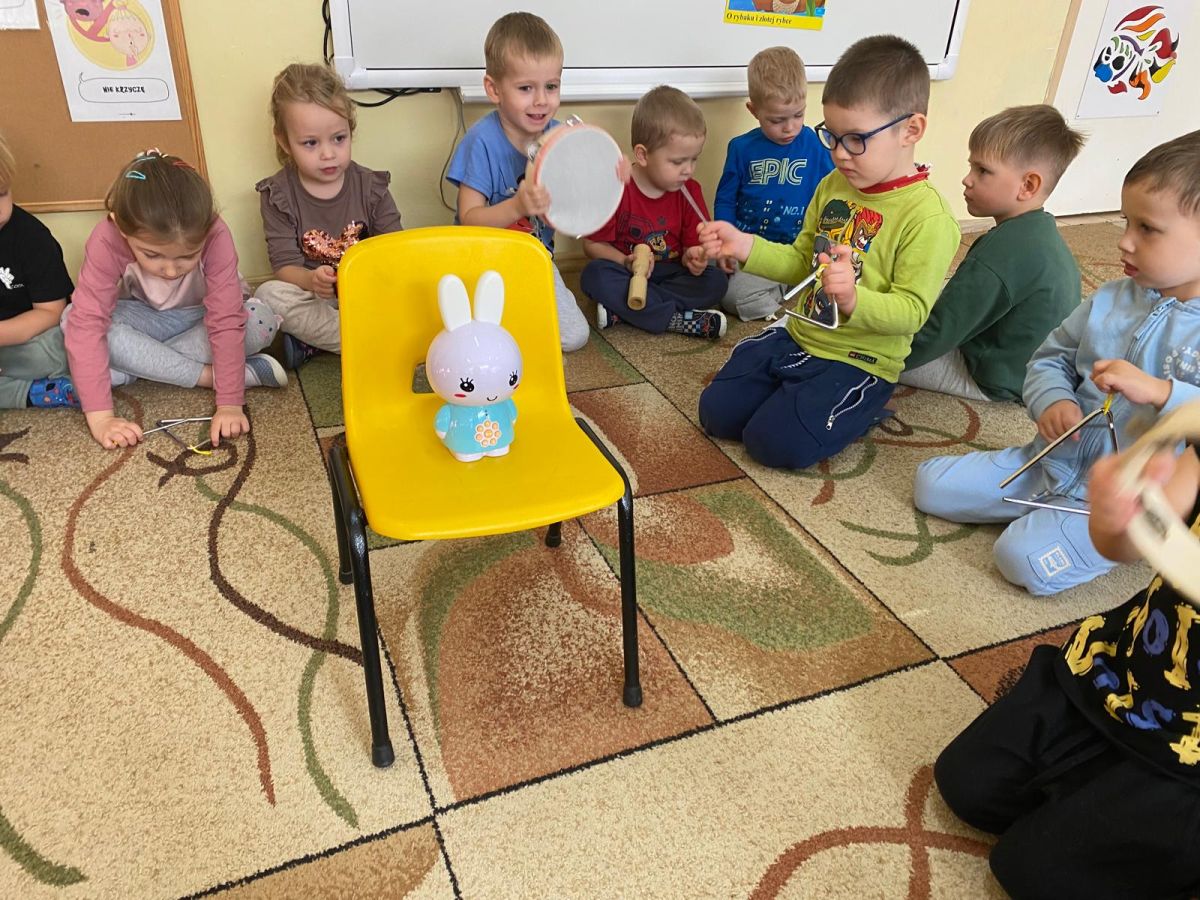 Podczas realizacji modułu „Świat słyszę” dzieci uczyły się uważnego słuchania otaczającego je świata. Grały również na instrumentach, rozwijając wrażliwość muzyczną i poczucie rytmu.
