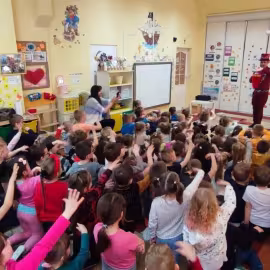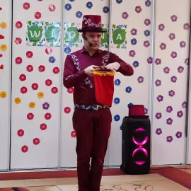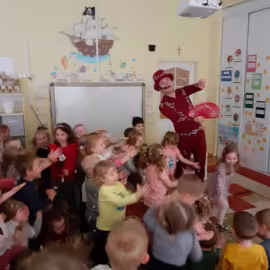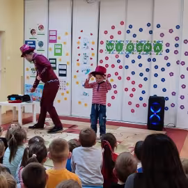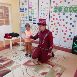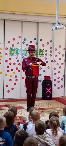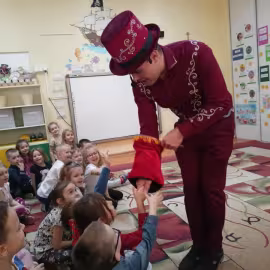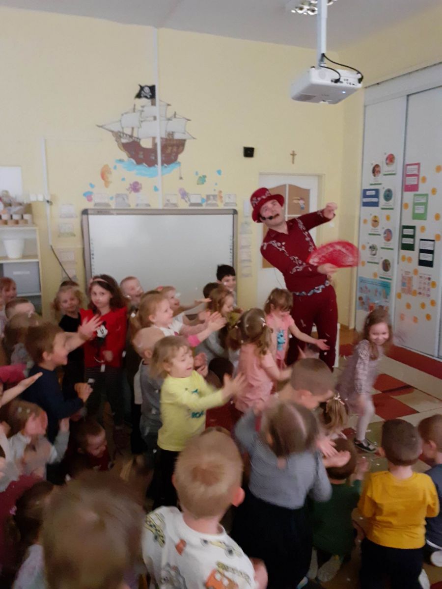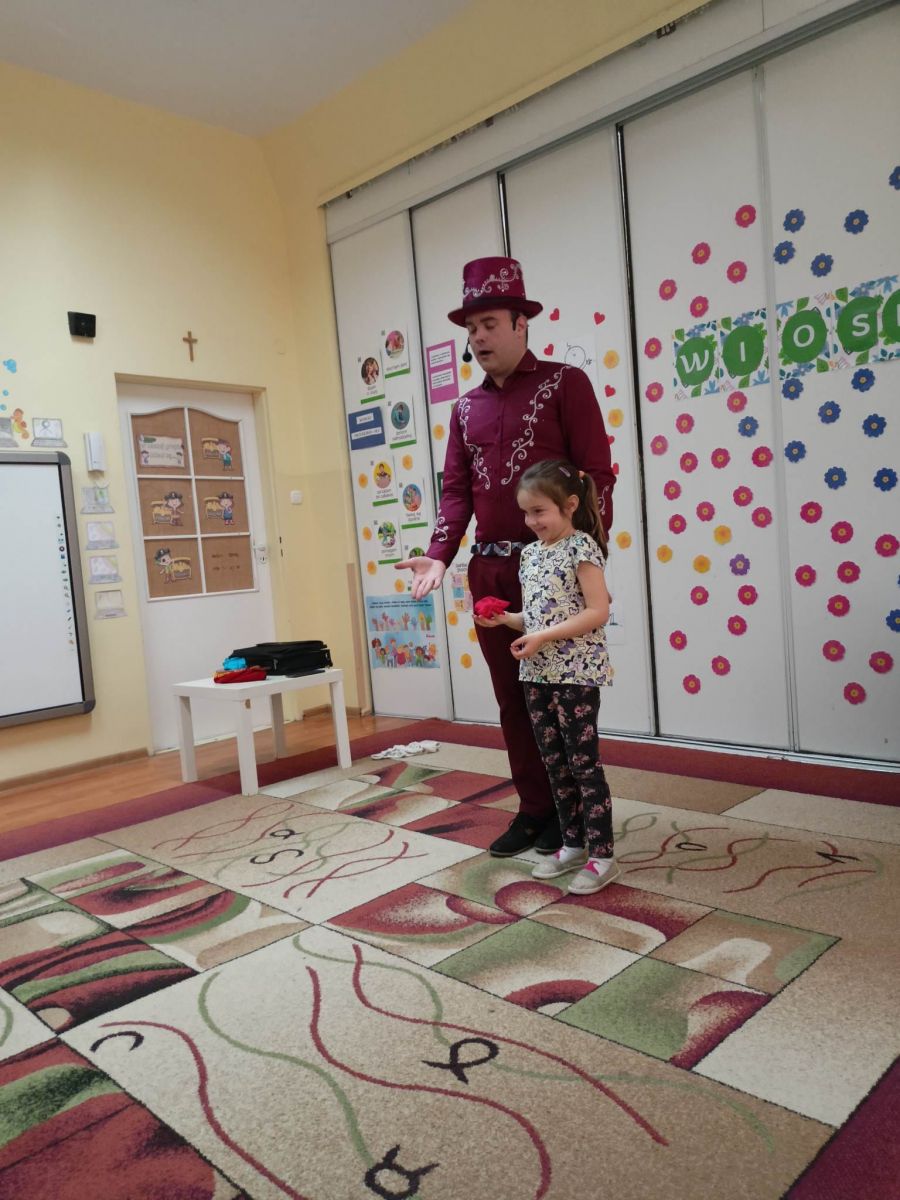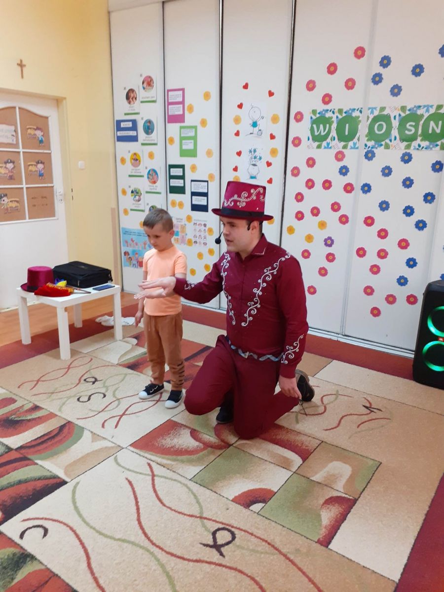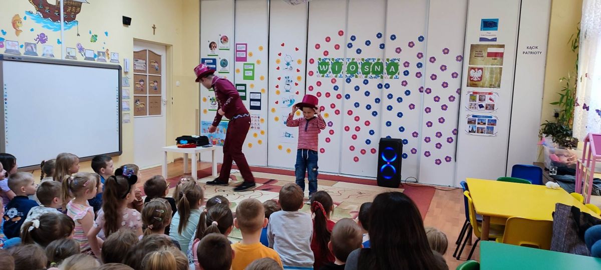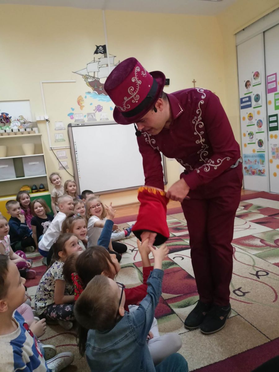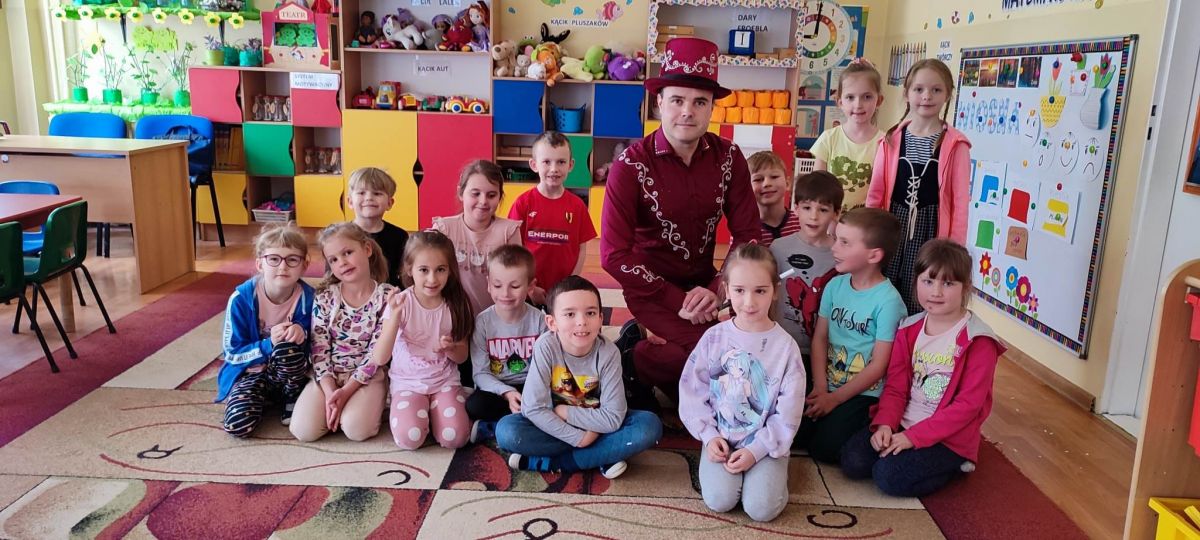 Przedszkolaki wspaniale bawiły się na spotkaniu z Magikiem.