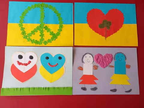 Nasze przedszkolaki ze wszystkich grup wykonały cudowne laurki dla Naszego partnerskiego miasta na Ukrainie - WINNICY. Kartki te trafią tam wraz z transportem darów, organizowanym przez miasto Kielce .