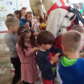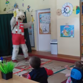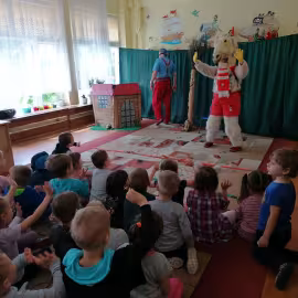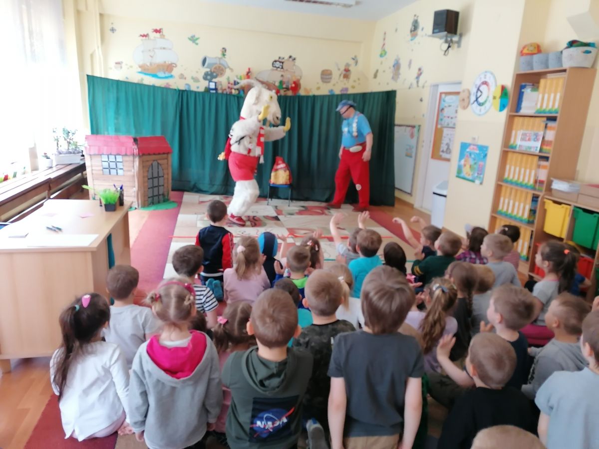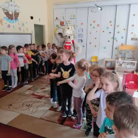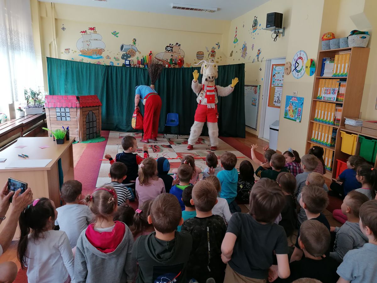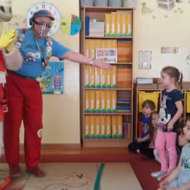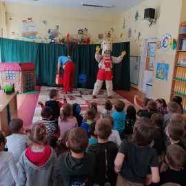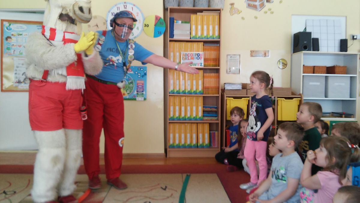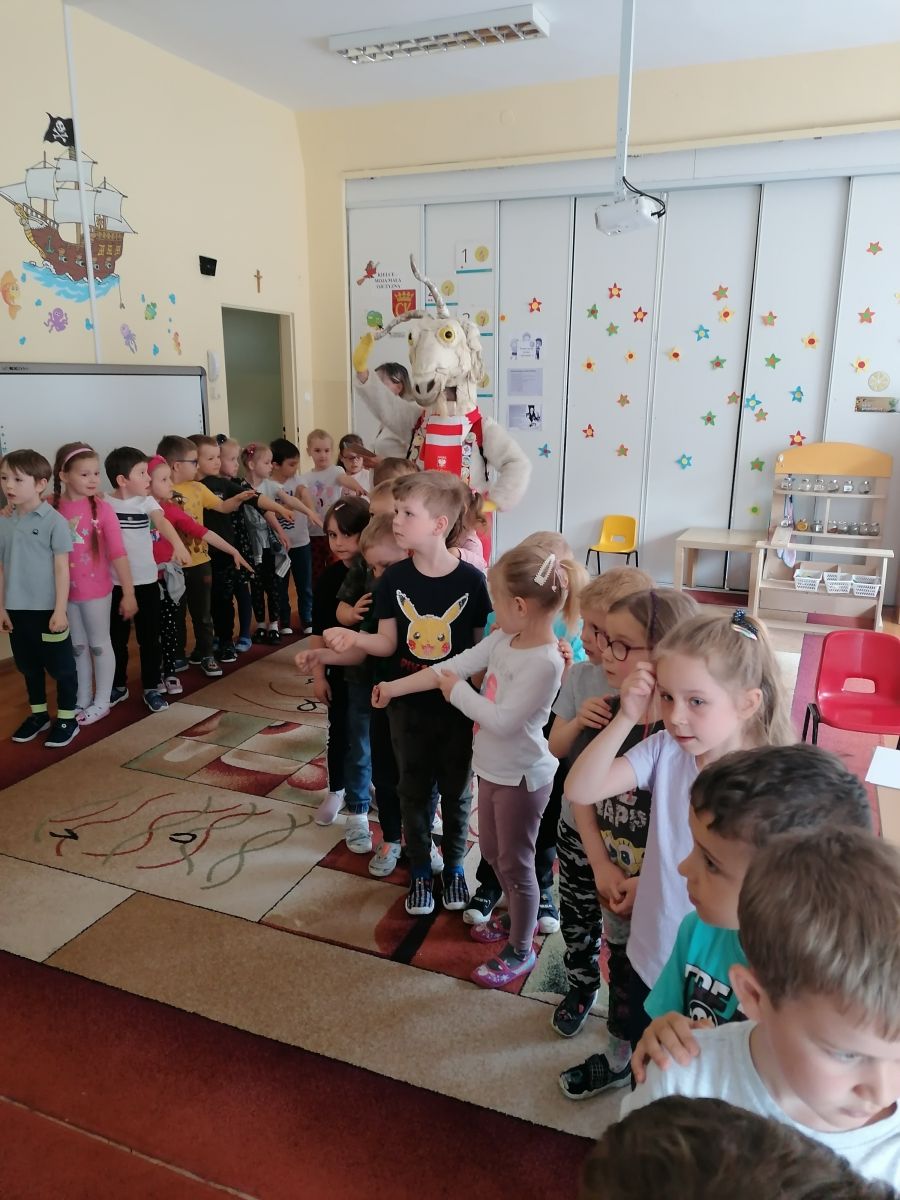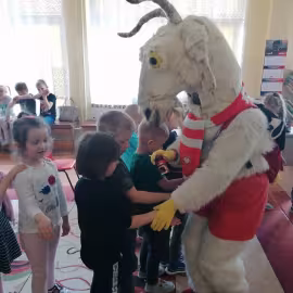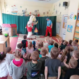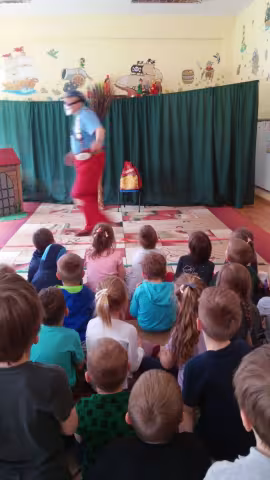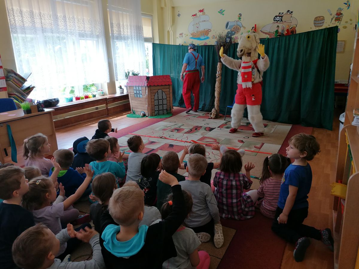 Dnia 27.05.2021r. odbyło się spotkanie z „Koziołkiem Matołkiem” – spektakl "KOZIOŁKOWANIE W PRZEDSZKOLNYM PLANIE" wystawili aktorzy z Agencji Artystycznej "Artconcept". Dzieci uczestniczyły w przedstawieniu na podstawie książki “120 Przygód Koziołka Matołka” oraz w zabawach i konkursach prowadzonych przez aktorów.