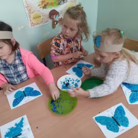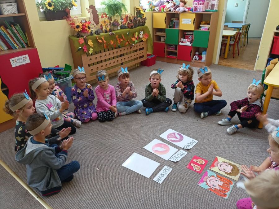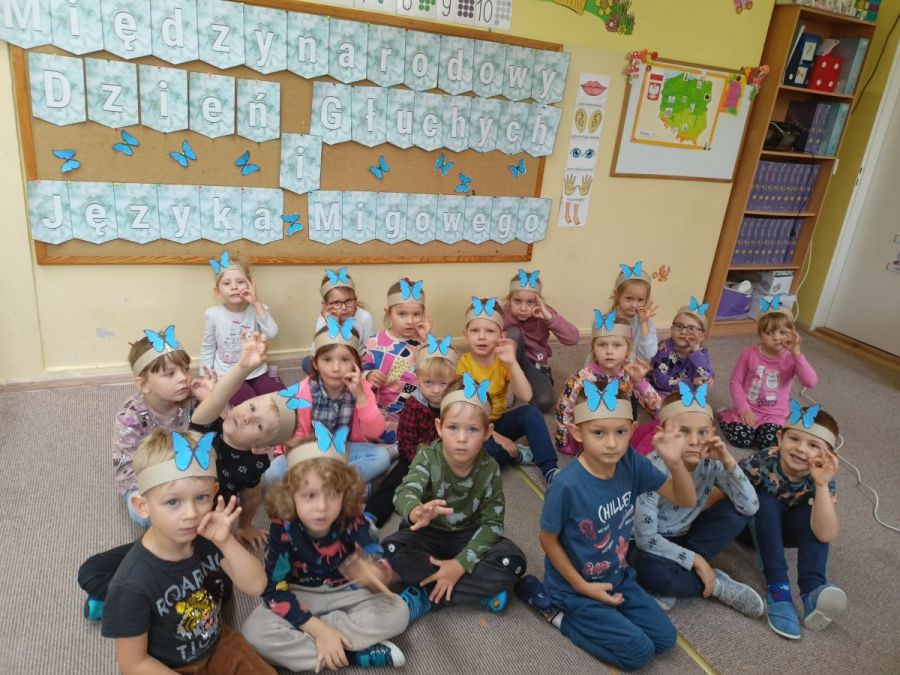 We wrześniu obchodzony jest Międzynarodowy Dzień Głuchych i Języka Migowego. Celem podejmowanych w naszym przedszkolu działań było uwrażliwienie na potrzeby dzieci z wadą słuchu, poznanie czym jest wada słuchu, jakie są jej przyczyny, nauka elementów języka migowego oraz poznanie jego znaczenia. Dzieci poznały również symbol osób niesłyszących- niebieski motyl, gdyż motyle są głuche nie posiadają zmysłu słuchu. Poprzez zabawę ze znakami języka migowego dzieci mogły rozwijać pamięć i koordynację ruchową.