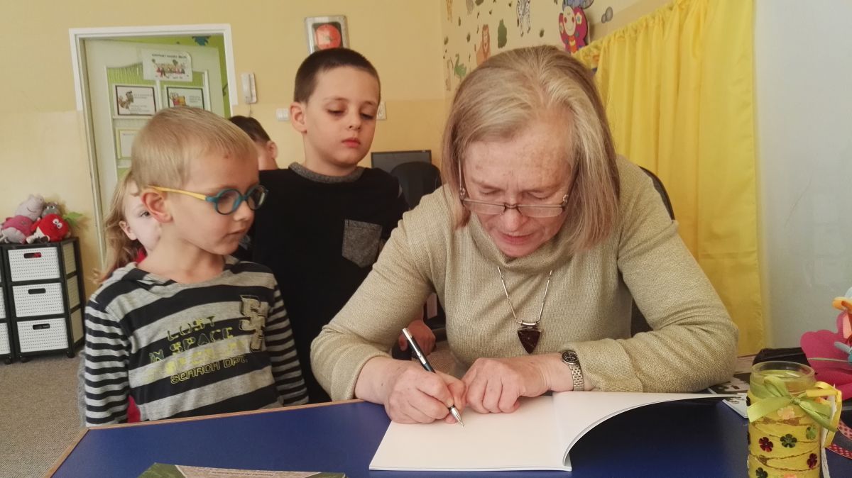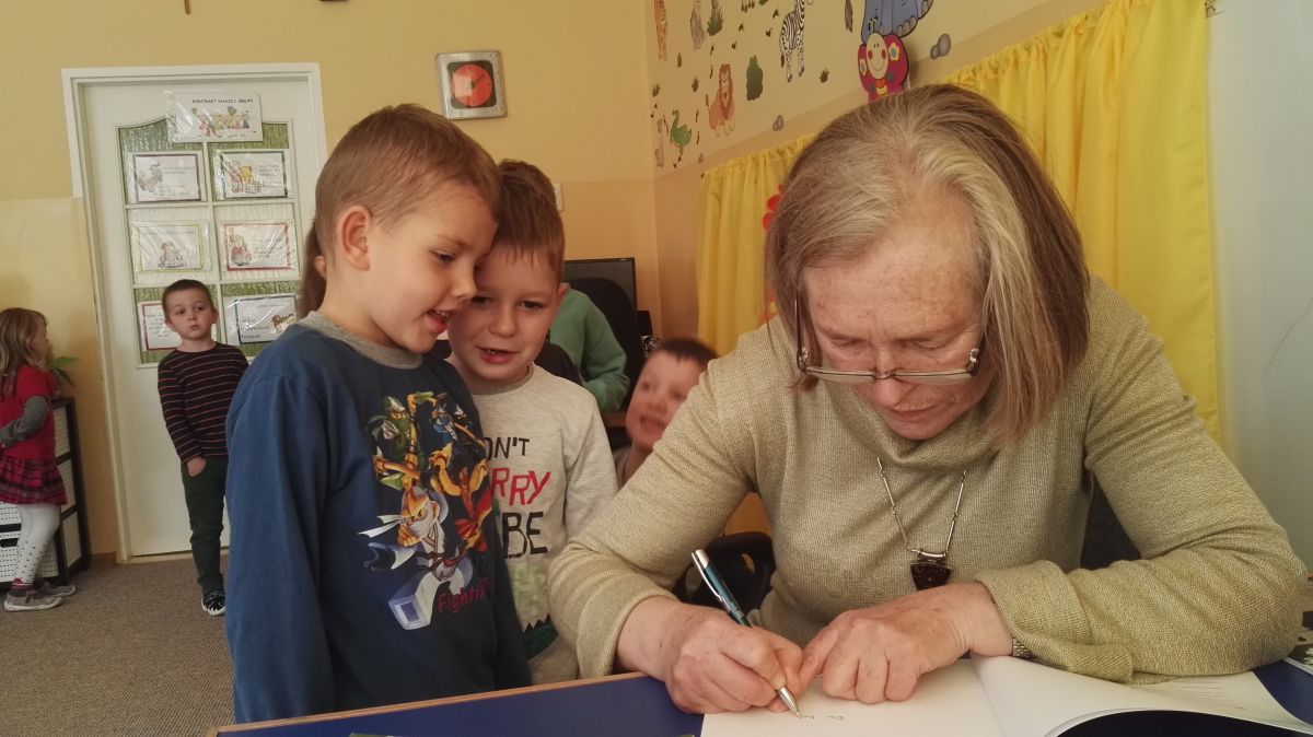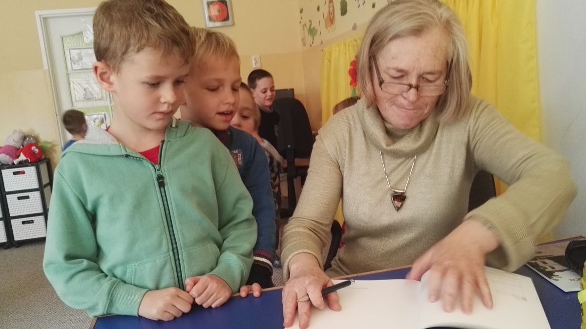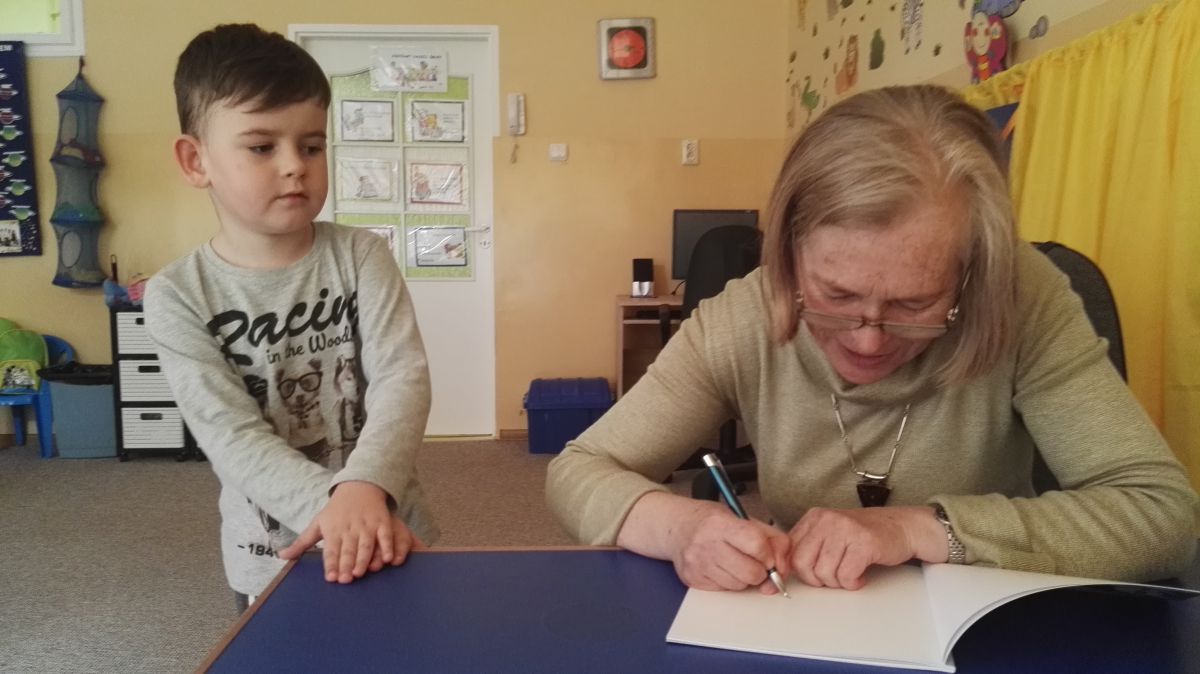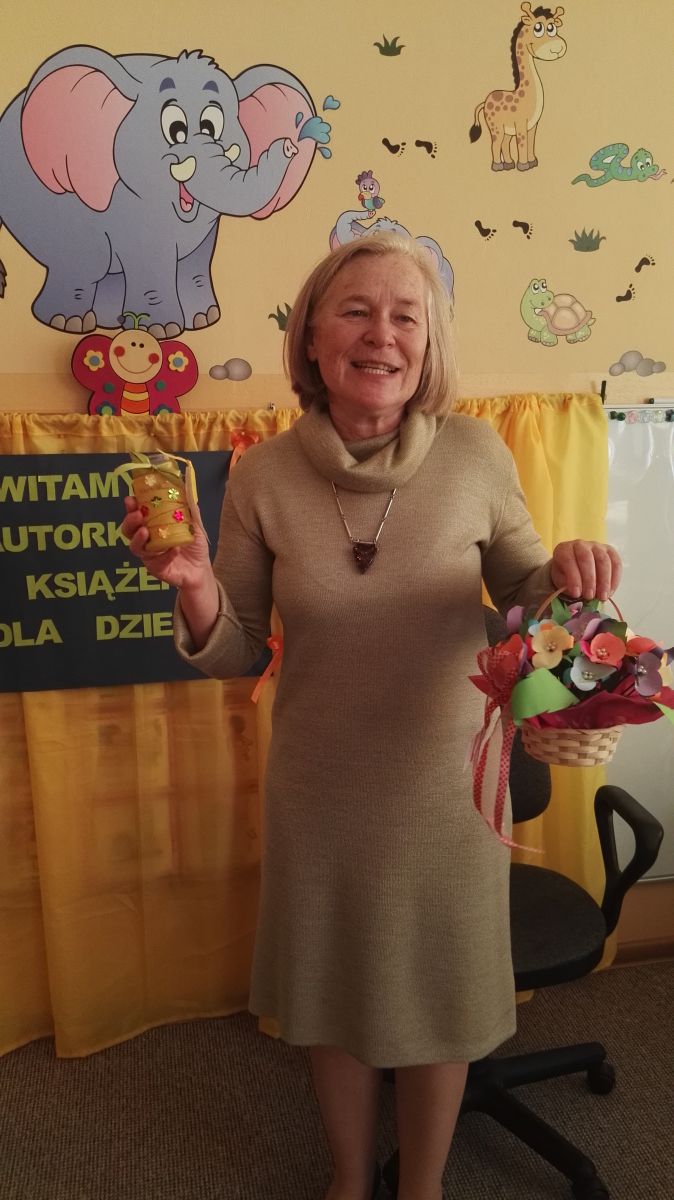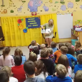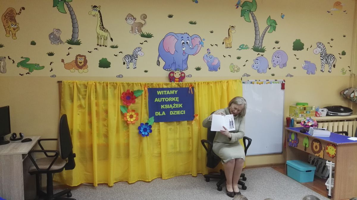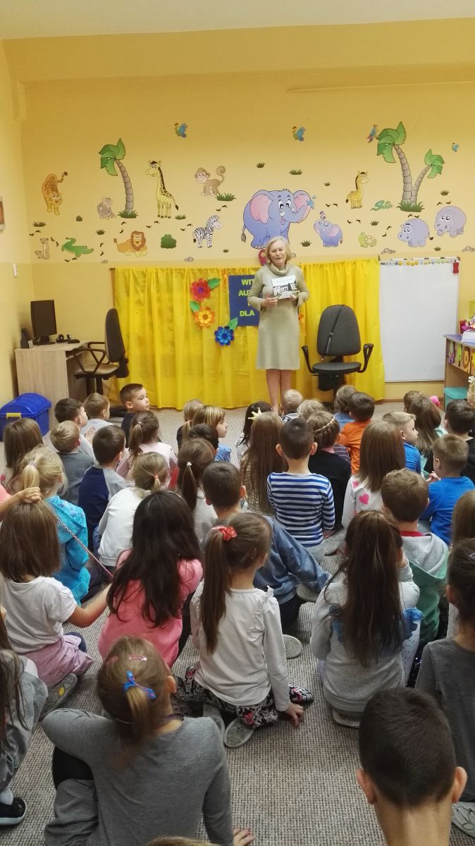 30.10.2017 mieliśmy przyjemność gościć w naszym przedszkolu znaną współczesną pisarkę- Renatę Głasek-Kęską. Pisarka zaprezentowała dzieciom swoją powieść ,,Wakacje w pałacu”, opowiedziała o swoim życiu, rodzinie, pracy w teatrze i pracy literackiej. Dzieci z zainteresowaniem słuchały miłego gościa, a potem zadawały pytania, na które Pani Renata starała się wyczerpująco odpowiedzieć. Pisarka jest również autorką sztuki teatralnej "Cyrograf"(2014 rok ) oraz piosenek do spektaklu "Mały Książę" z muzyką Seweryna Krajewskiego (2009 rok). Jej powieść: „Skrzaty domowe” zwyciężyła w „Scyzoryki Festiwal 2013” w kategorii Literatura/Proza.