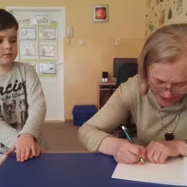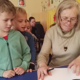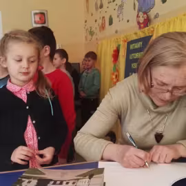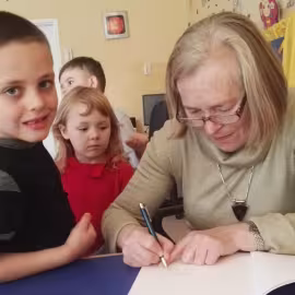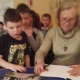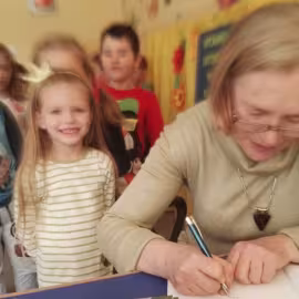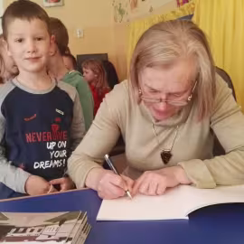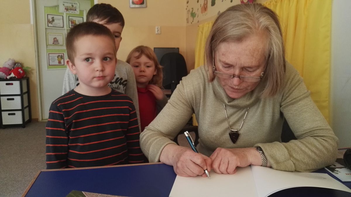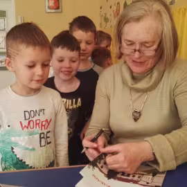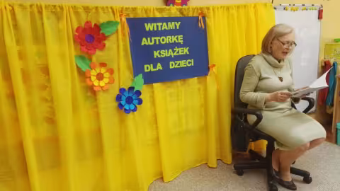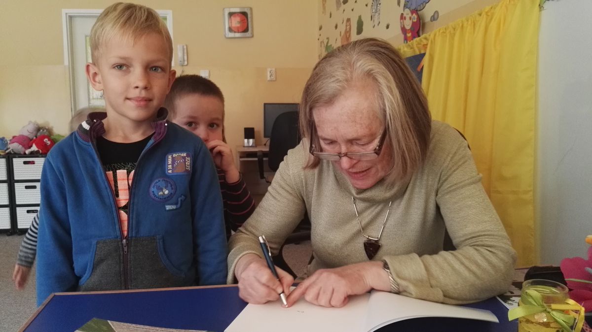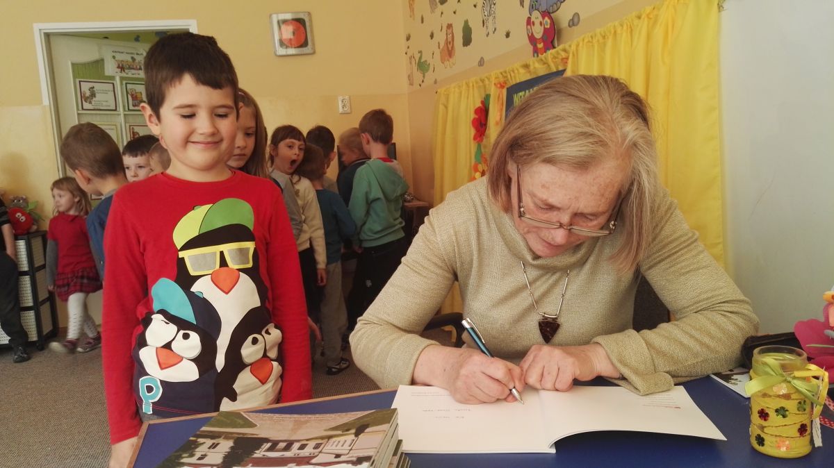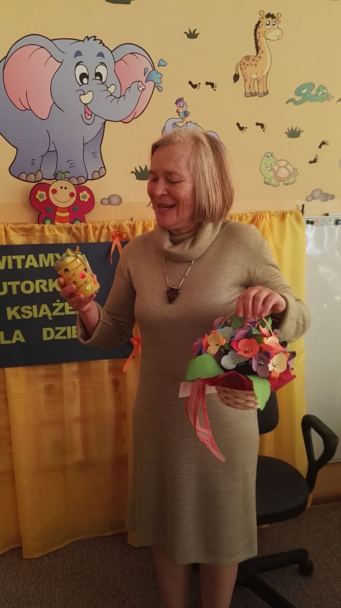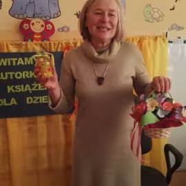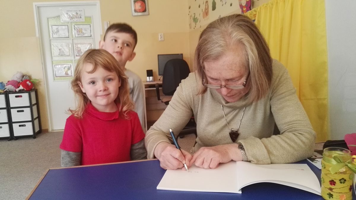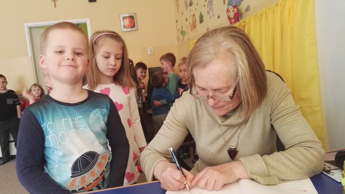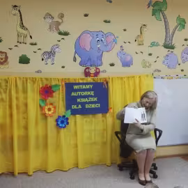 30.10.2017 mieliśmy przyjemność gościć w naszym przedszkolu znaną współczesną pisarkę- Renatę Głasek-Kęską. Pisarka zaprezentowała dzieciom swoją powieść ,,Wakacje w pałacu”, opowiedziała o swoim życiu, rodzinie, pracy w teatrze i pracy literackiej. Dzieci z zainteresowaniem słuchały miłego gościa, a potem zadawały pytania, na które Pani Renata starała się wyczerpująco odpowiedzieć. Pisarka jest również autorką sztuki teatralnej "Cyrograf"(2014 rok ) oraz piosenek do spektaklu "Mały Książę" z muzyką Seweryna Krajewskiego (2009 rok). Jej powieść: „Skrzaty domowe” zwyciężyła w „Scyzoryki Festiwal 2013” w kategorii Literatura/Proza.