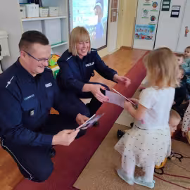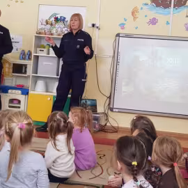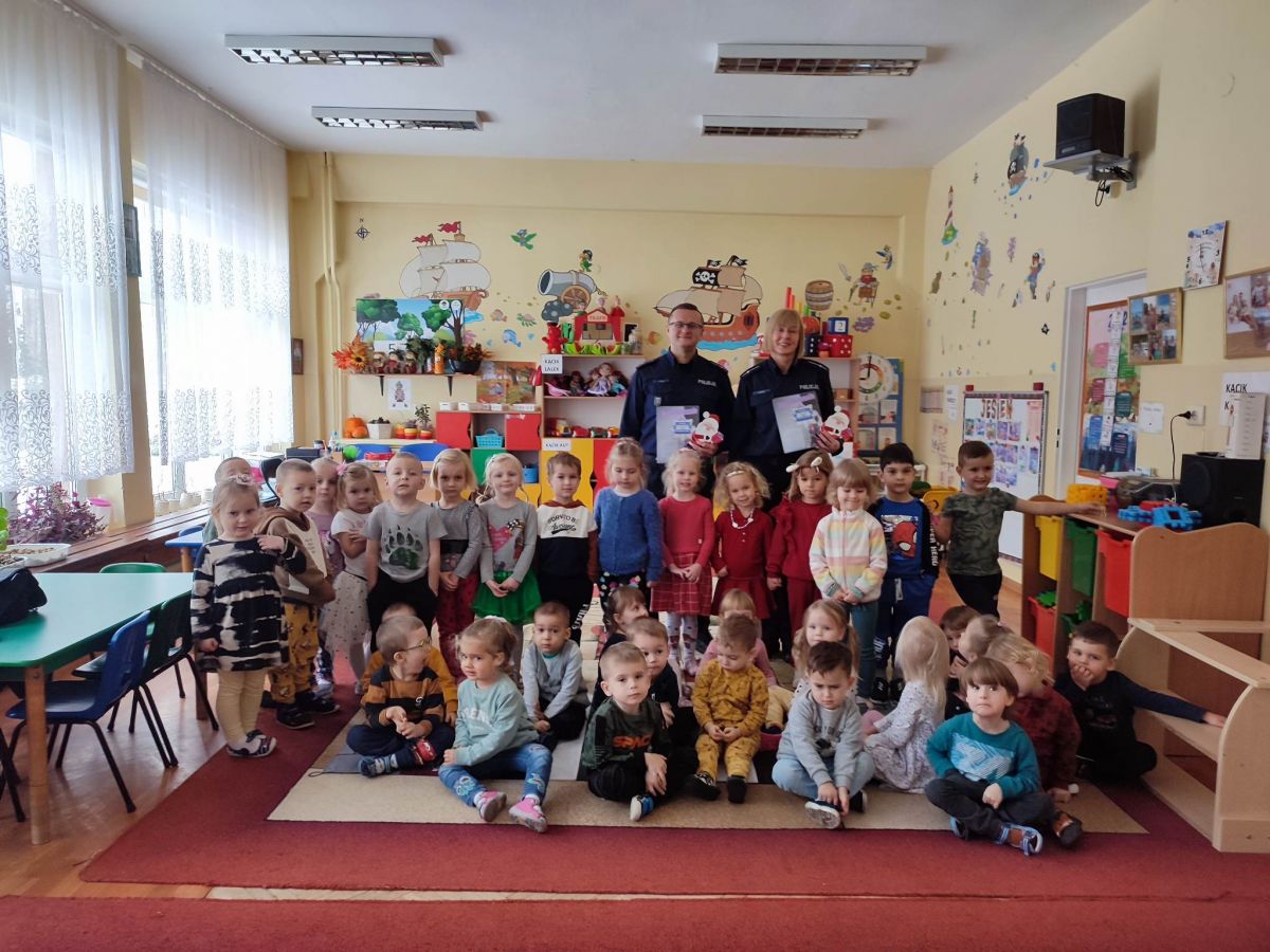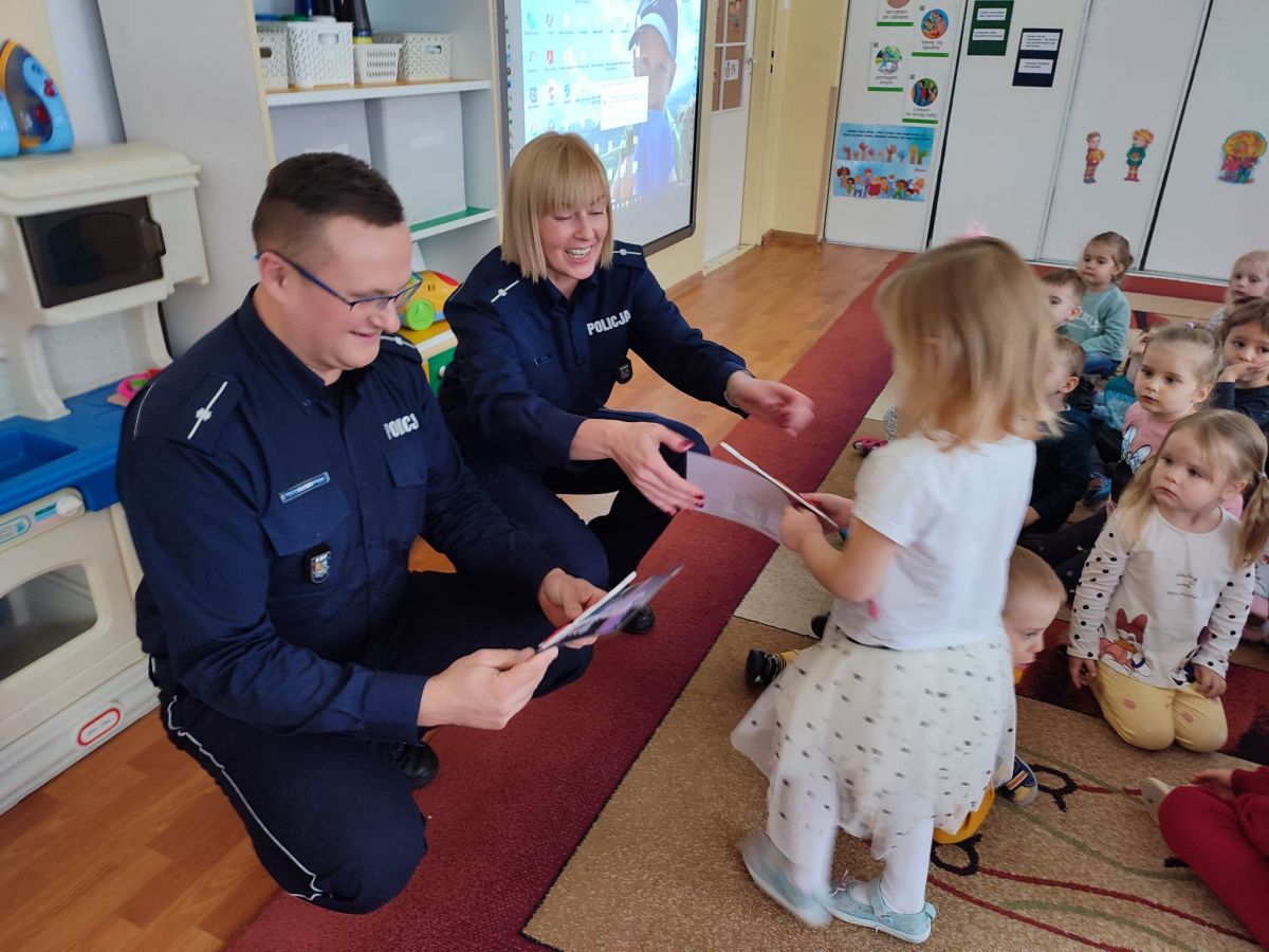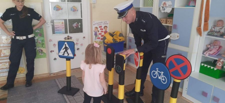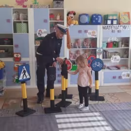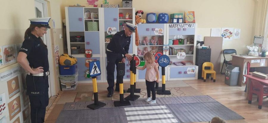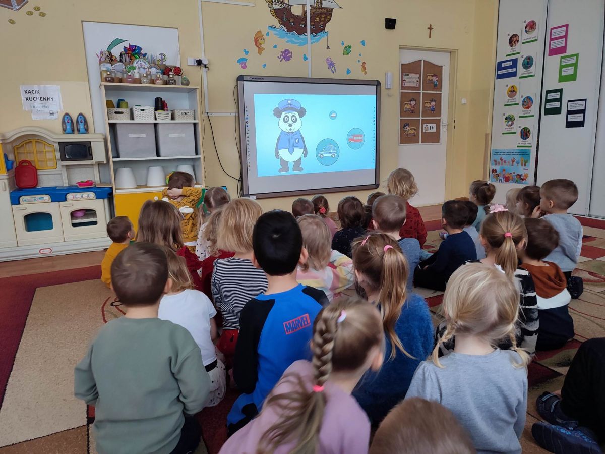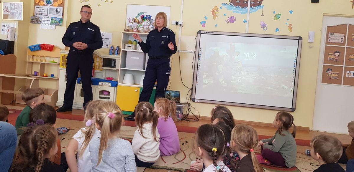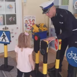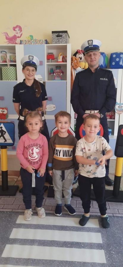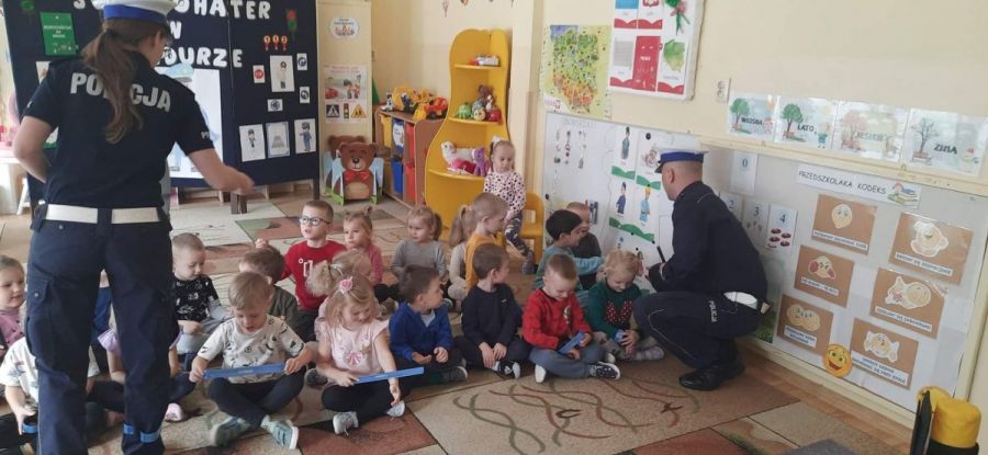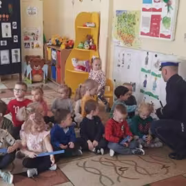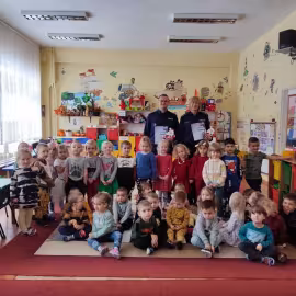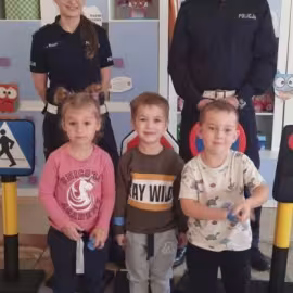 Niedawno gościliśmy w przedszkolu bardzo ważnych gości z Wydziału Ruchu Drogowego Komendy Wojewódzkiej Policji w Kielcach. Policjanci starali się przekazać najmłodszym jak najwięcej informacji na temat bezpieczeństwa.