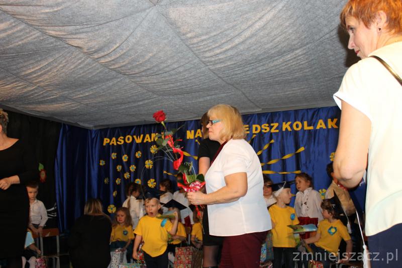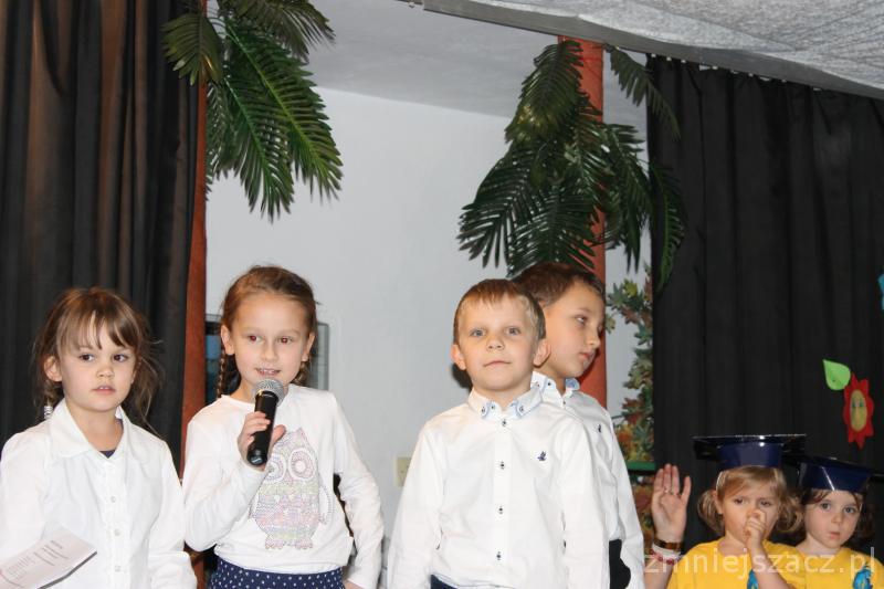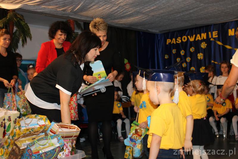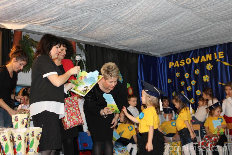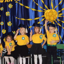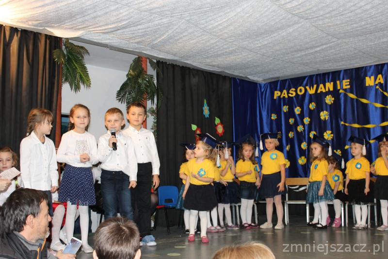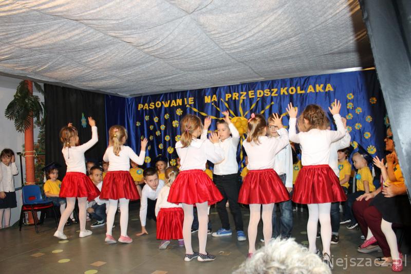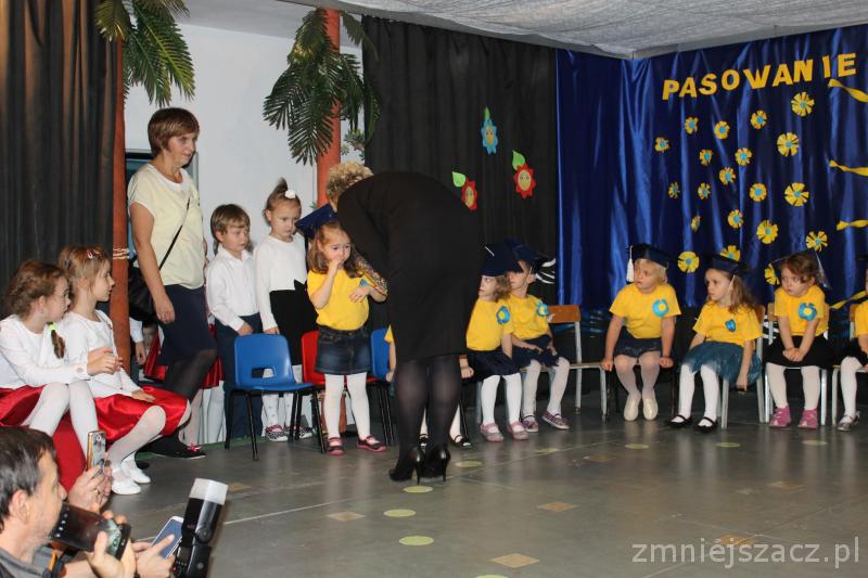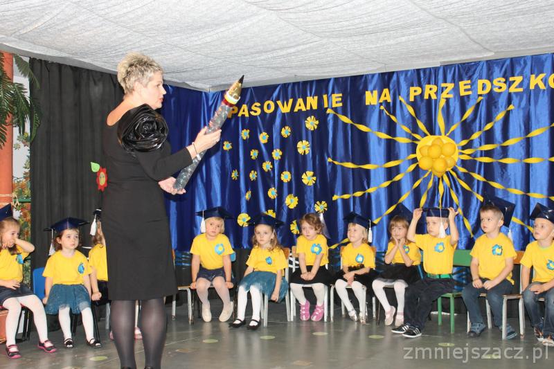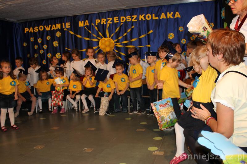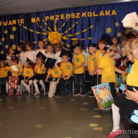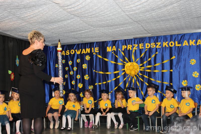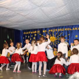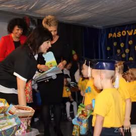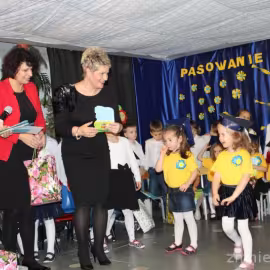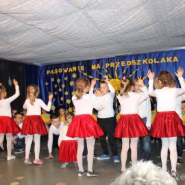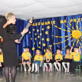 Dnia 22.11.2016 r. o godzinie 13:30 odbyła się w naszym przedszkolu ważna uroczystość – PASOWANIE NA PRZEDSZKOLAKA, w której brała udział grupa III – POSZUKIWACZE SKARBÓW. Do tego najważniejszego w życiu każdego przedszkolaka dnia, dzieci przygotowywały się długo, ucząc się wierszyków, piosenek i tańców, uczestnicząc w wielu próbach na scenie teatralnej naszej placówki. Podczas uroczystości maluszki zostały powitane przez starszaków z grupy VI, którzy z dużym zaangażowaniem wzięli udział w Pasowaniu na Przedszkolaka, wypowiadając słowa : … Dzień dziś waży niesłychanie, przedszkolaków pasowanie… Złożenie przyrzeczenia przez dzieci z grupy III przed starszakami, rodzicami, Dyrekcją Przedszkola oraz swoimi paniami, to duże i emocjonujące wydarzenie. Również Pasowanie dużym, kolorowym ołówkiem przez Panią Dyrektor było ważnym dla maluszków przeżyciem. Podczas uroczystości wychowankowie zaprezentowali także krótki program artystyczny dla wszystkich zaproszonych gości. Myślimy, że się spodobał .Na uwagę zasługiwał występ starszaków z grupy VI , przygotowany dla maluszków. Dziękujemy paniom wychowawczyniom z tej grupy za przygotowanie wychowanków i zaangażowanie w naszą uroczystość. Na zakończenie spotkania Pani Dyrektor i Pani Wicedyrektor wręczyły najmłodszym przedszkolakom pamiątkowe dyplomy oraz prezenty, z których dzieci bardzo się ucieszyły. Uroczystość PASOWANIA NA PRZEDSZKOLAKA zakończył słodki poczęstunek dla milusińskich. Ten dzień – chyba na długo zapadnie w pamięci przedszkolaków.