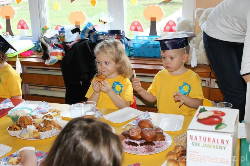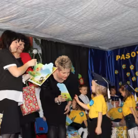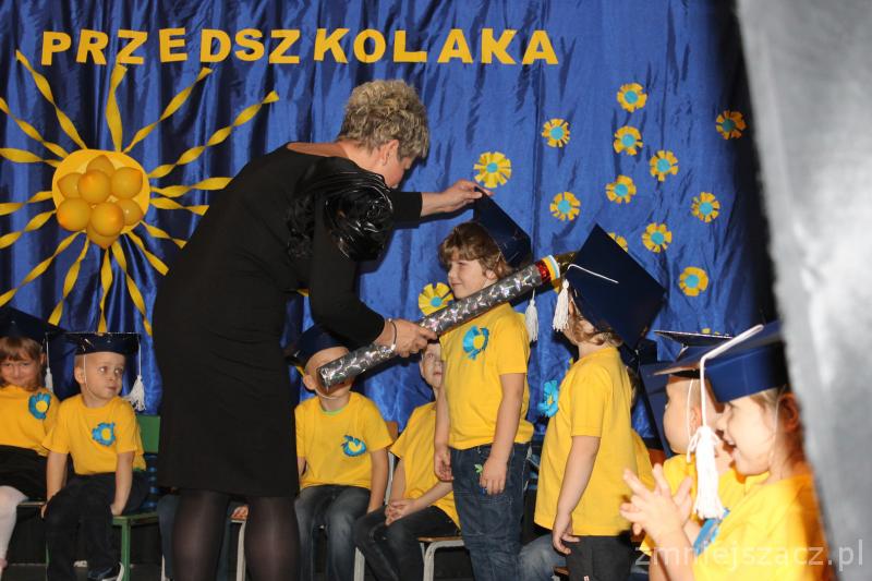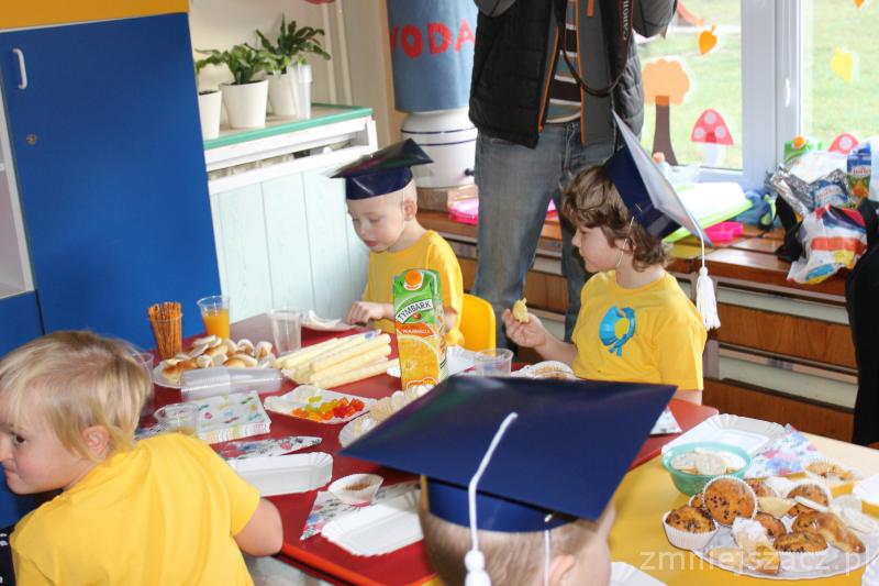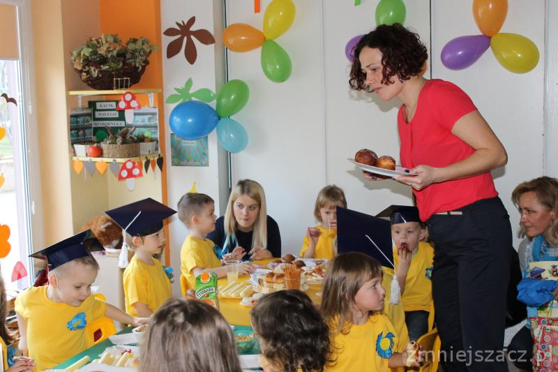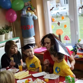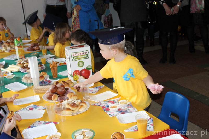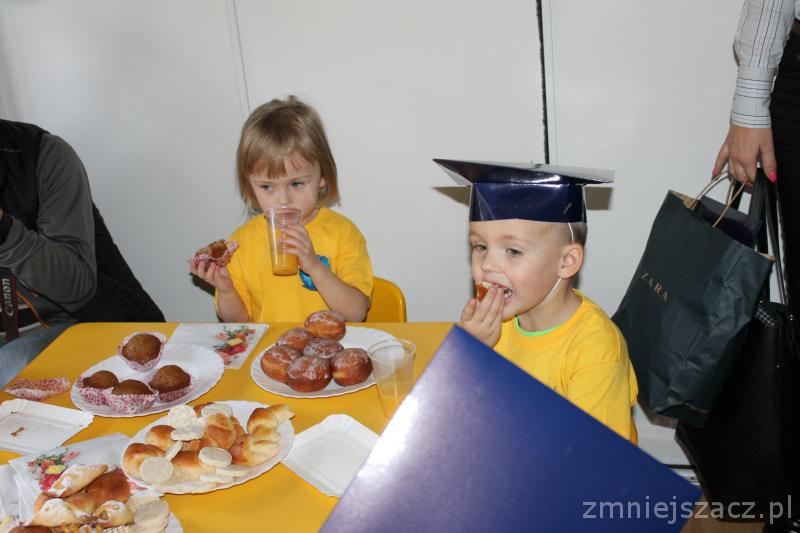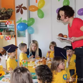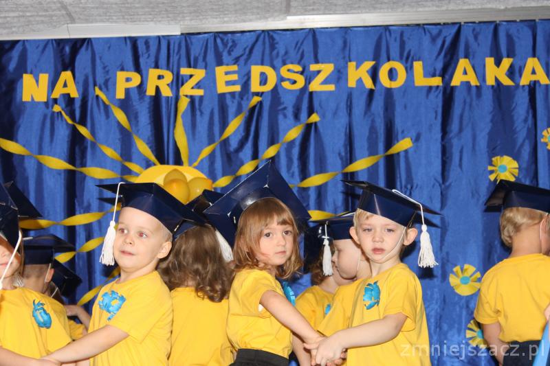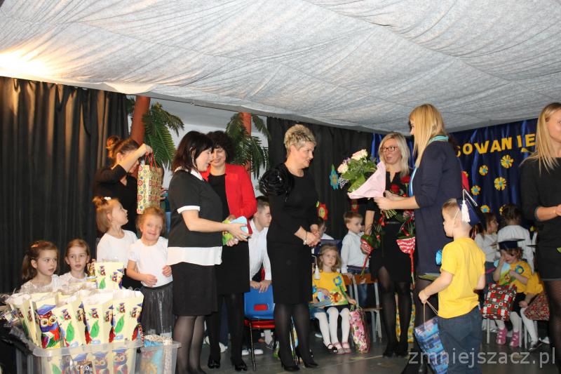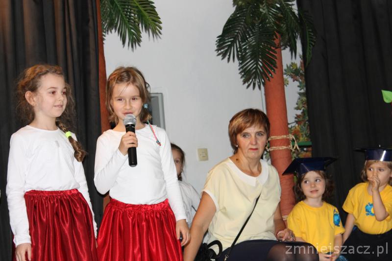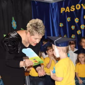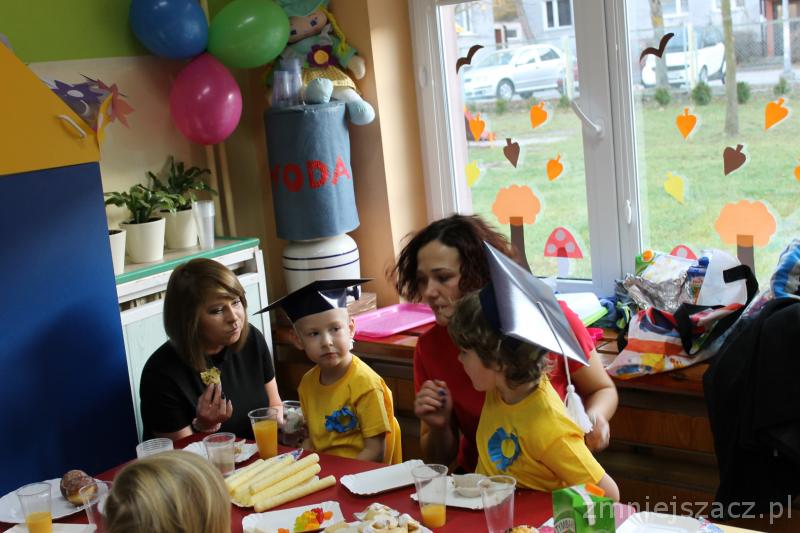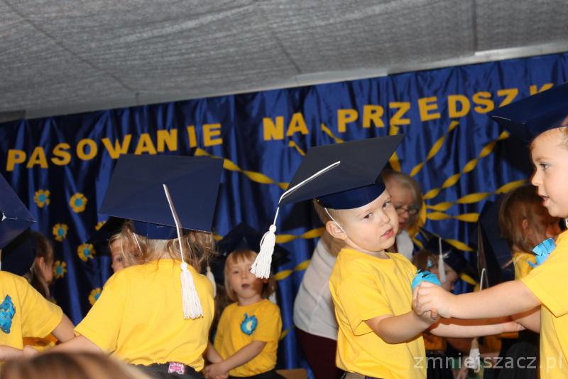Dnia 22.11.2016 r. o godzinie 13:30 odbyła się w naszym przedszkolu ważna uroczystość – PASOWANIE NA PRZEDSZKOLAKA, w której brała udział grupa III – POSZUKIWACZE SKARBÓW. Do tego najważniejszego w życiu każdego przedszkolaka dnia, dzieci przygotowywały się długo, ucząc się wierszyków, piosenek i tańców, uczestnicząc w wielu próbach na scenie teatralnej naszej placówki. Podczas uroczystości maluszki zostały powitane przez starszaków z grupy VI, którzy z dużym zaangażowaniem wzięli udział w Pasowaniu na Przedszkolaka, wypowiadając słowa : … Dzień dziś waży niesłychanie, przedszkolaków pasowanie… Złożenie przyrzeczenia przez dzieci z grupy III przed starszakami, rodzicami, Dyrekcją Przedszkola oraz swoimi paniami, to duże i emocjonujące wydarzenie. Również Pasowanie dużym, kolorowym ołówkiem przez Panią Dyrektor było ważnym dla maluszków przeżyciem. Podczas uroczystości wychowankowie zaprezentowali także krótki program artystyczny dla wszystkich zaproszonych gości. Myślimy, że się spodobał .Na uwagę zasługiwał występ starszaków z grupy VI , przygotowany dla maluszków. Dziękujemy paniom wychowawczyniom z tej grupy za przygotowanie wychowanków i zaangażowanie w naszą uroczystość. Na zakończenie spotkania Pani Dyrektor i Pani Wicedyrektor wręczyły najmłodszym przedszkolakom pamiątkowe dyplomy oraz prezenty, z których dzieci bardzo się ucieszyły. Uroczystość PASOWANIA NA PRZEDSZKOLAKA zakończył słodki poczęstunek dla milusińskich. Ten dzień – chyba na długo zapadnie w pamięci przedszkolaków.