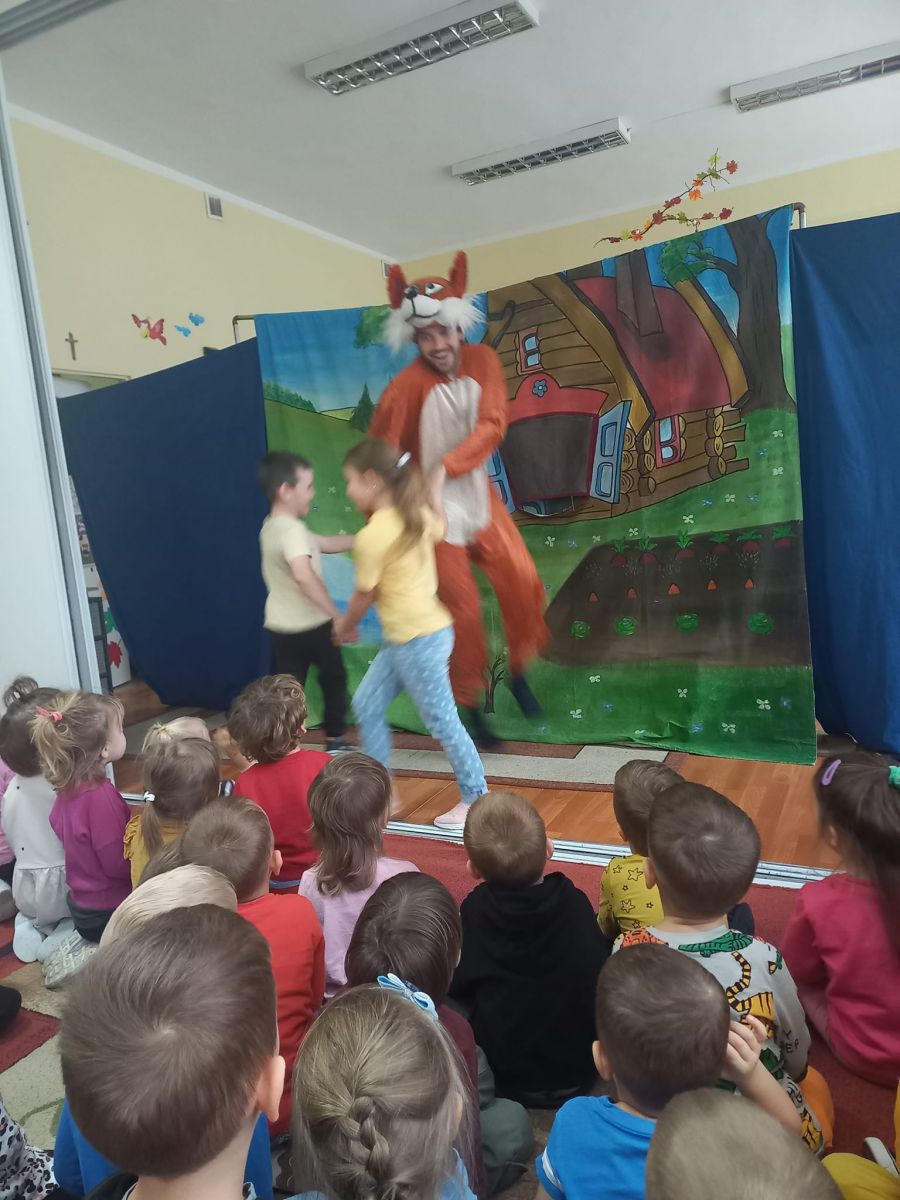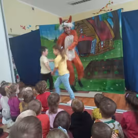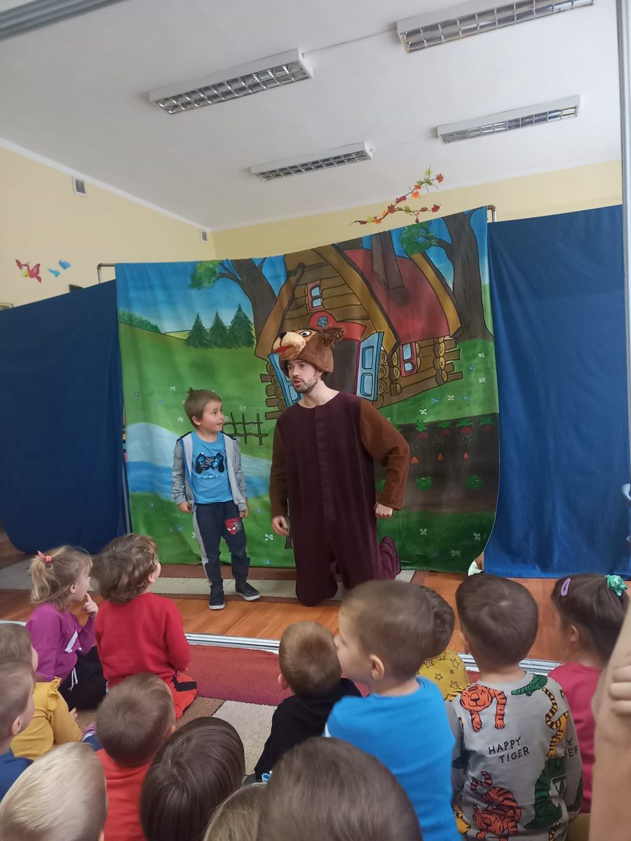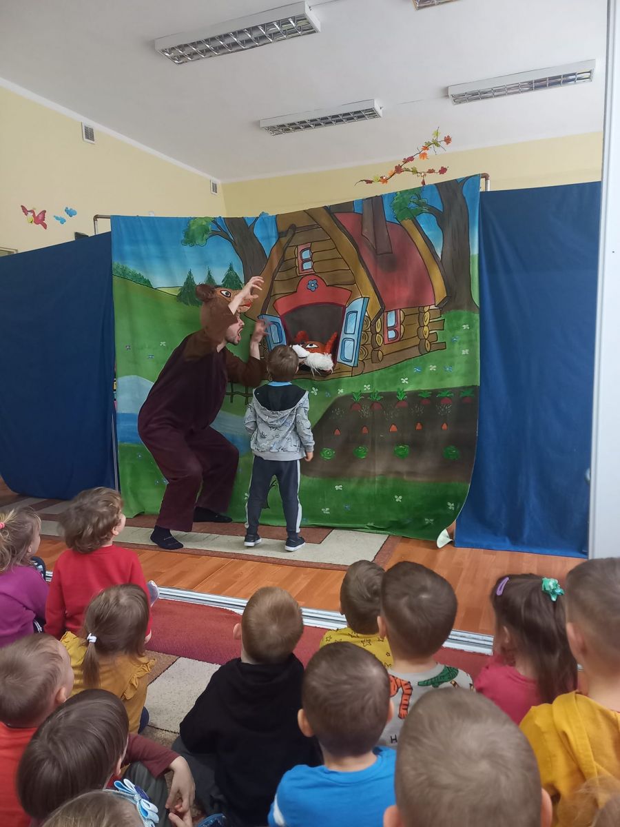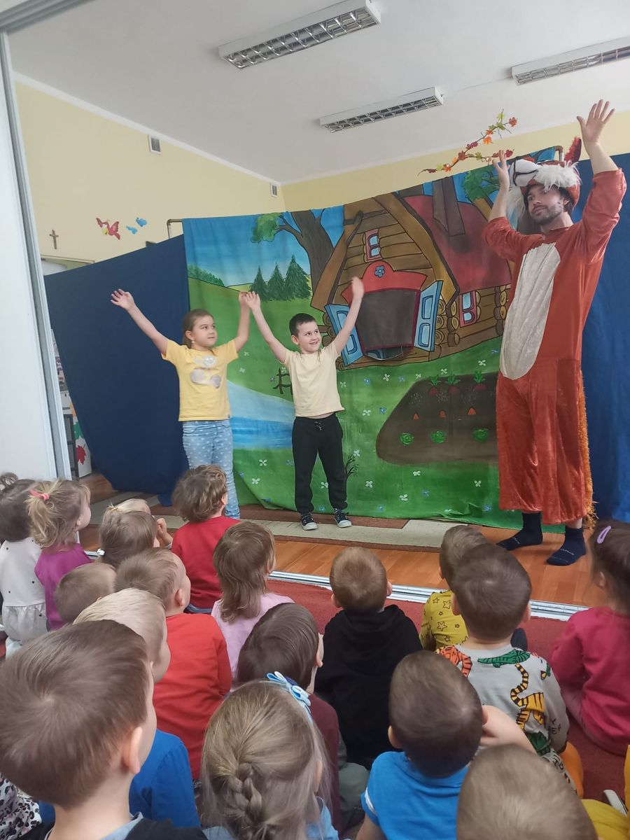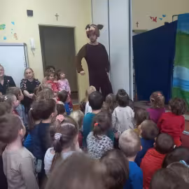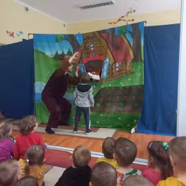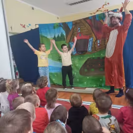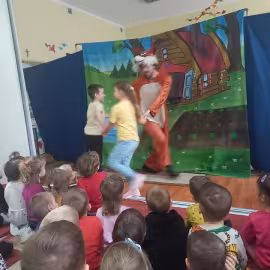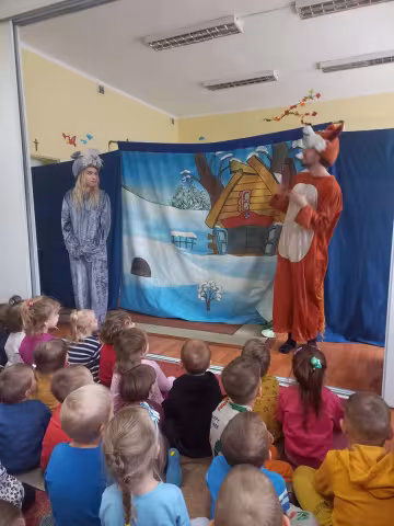 Opublikowano: 30.11.2023 22. listopada nasze przedszkolaki brały udział w interaktywnym spektaklu "Chatka Zajączka". Dzieci mogły aktywnie uczestniczyć w przedstawieniu, co było dla nich niezapomnianym przeżyciem.