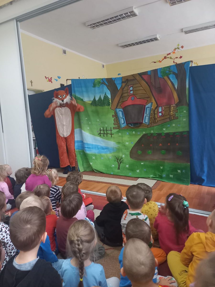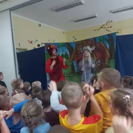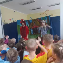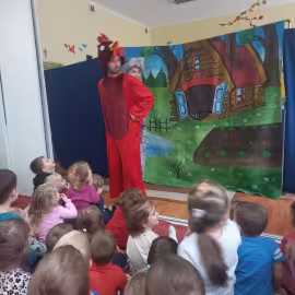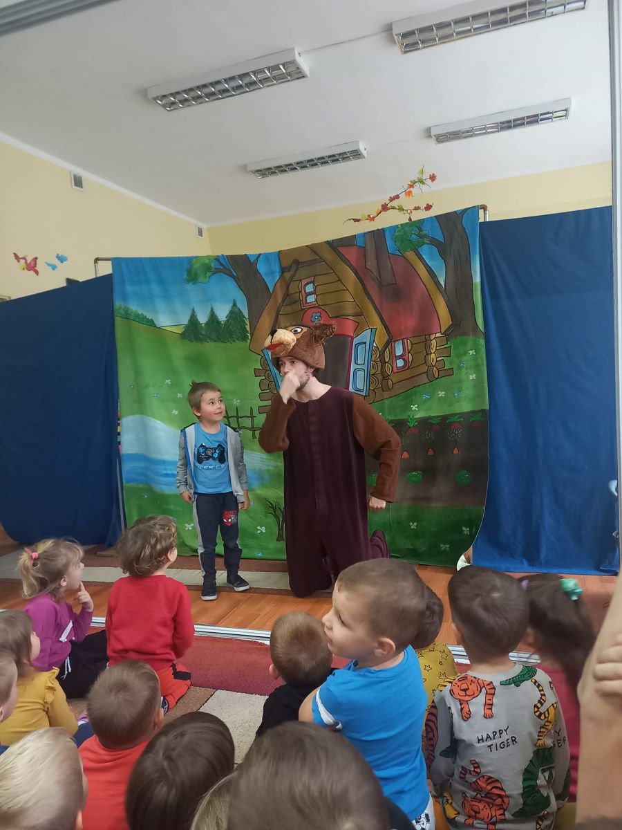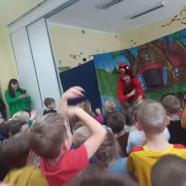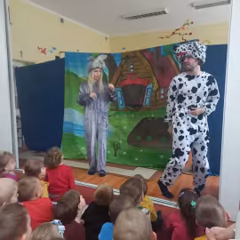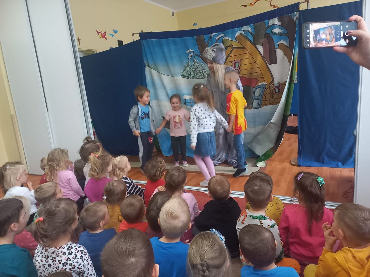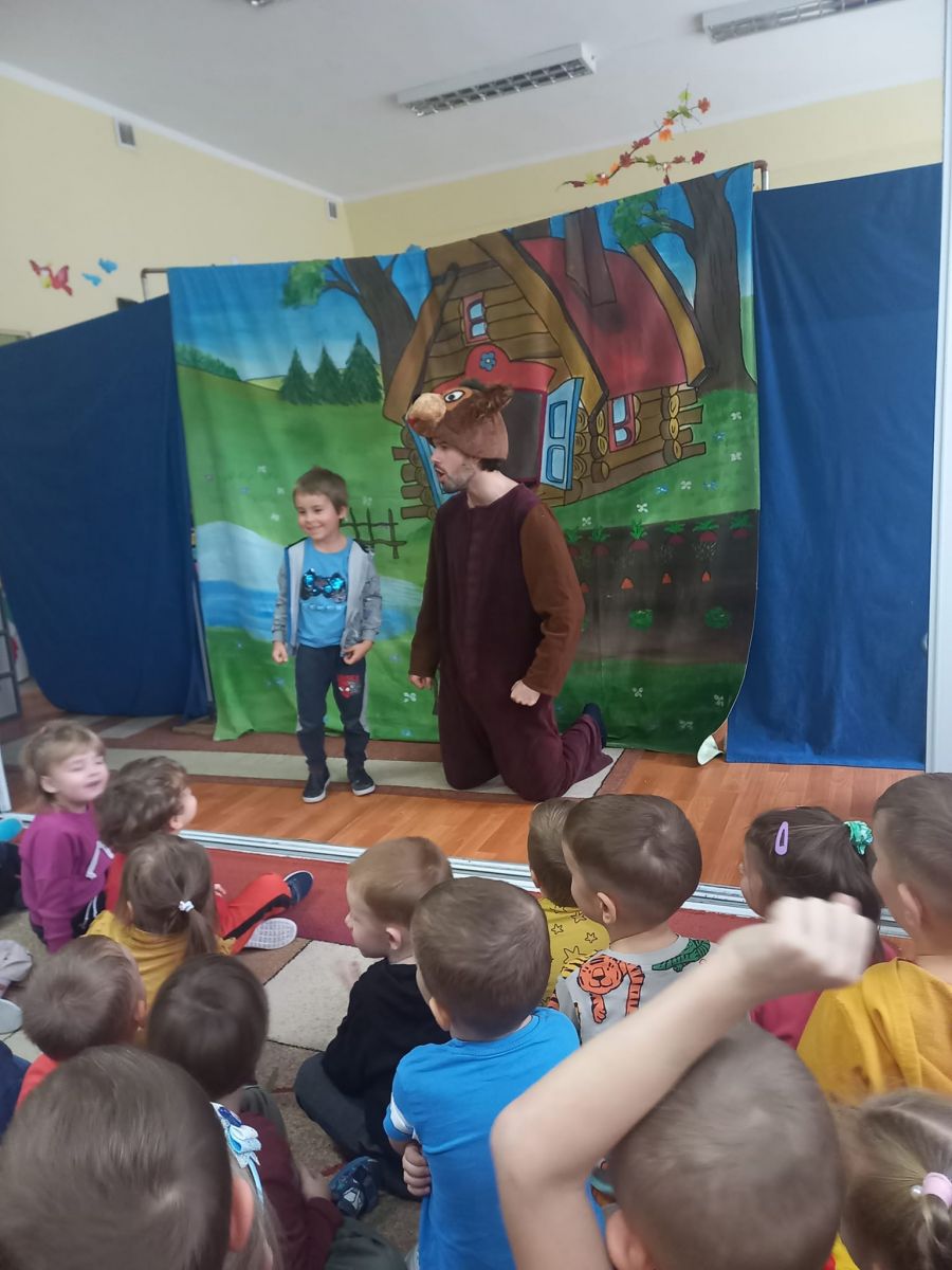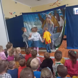 Opublikowano: 30.11.2023 22. listopada nasze przedszkolaki brały udział w interaktywnym spektaklu "Chatka Zajączka". Dzieci mogły aktywnie uczestniczyć w przedstawieniu, co było dla nich niezapomnianym przeżyciem.
